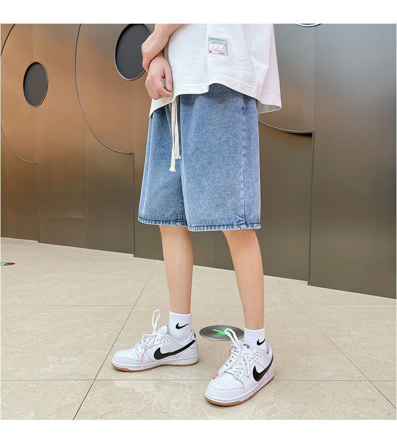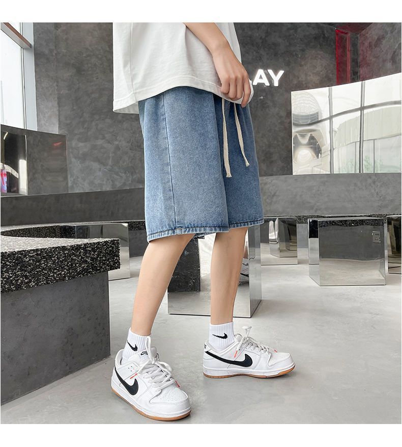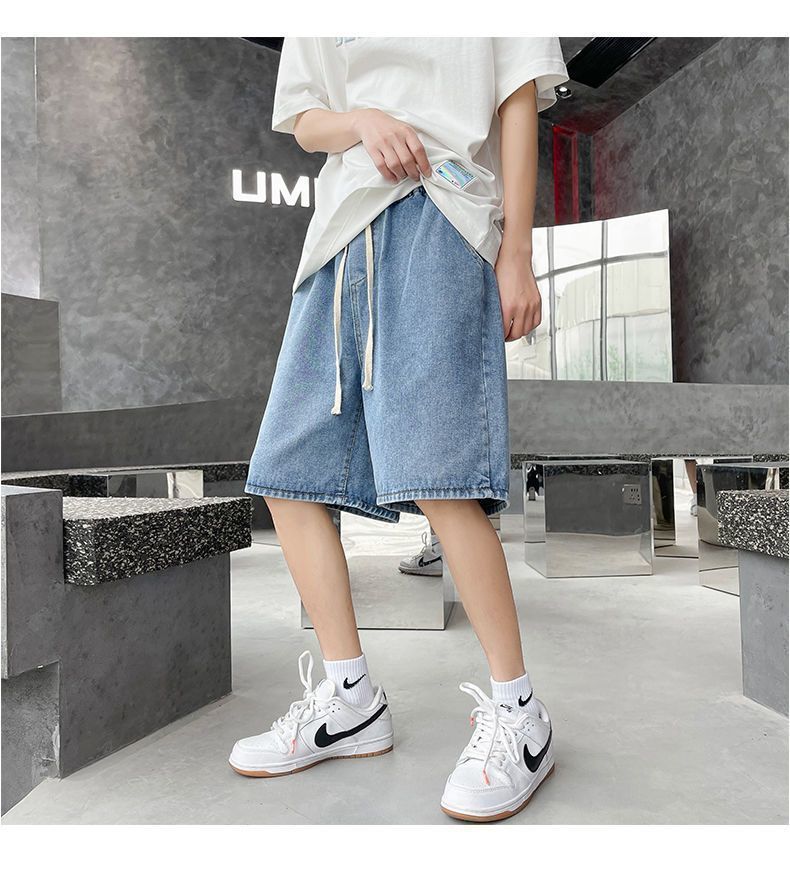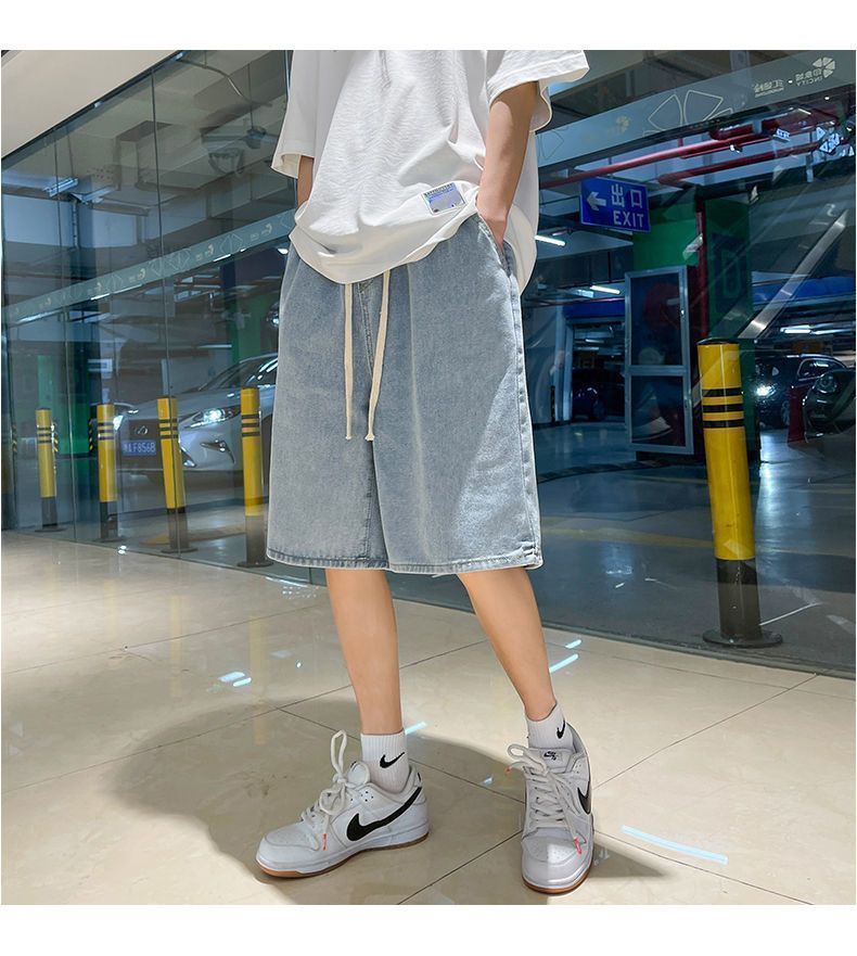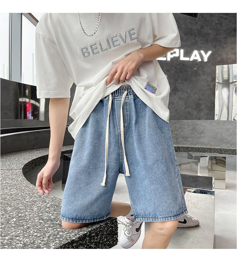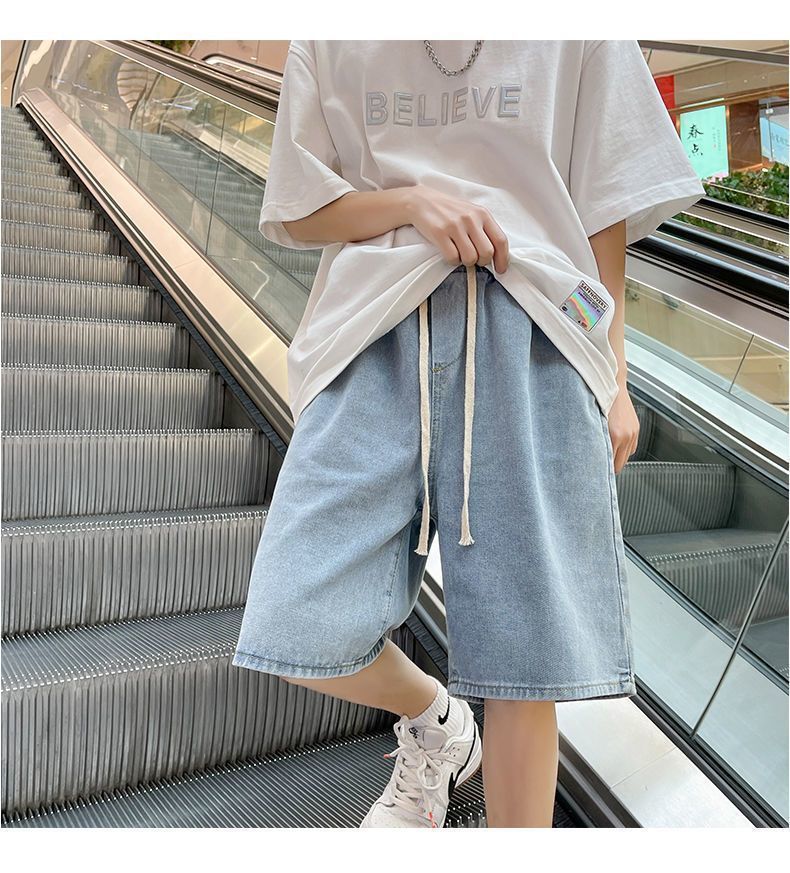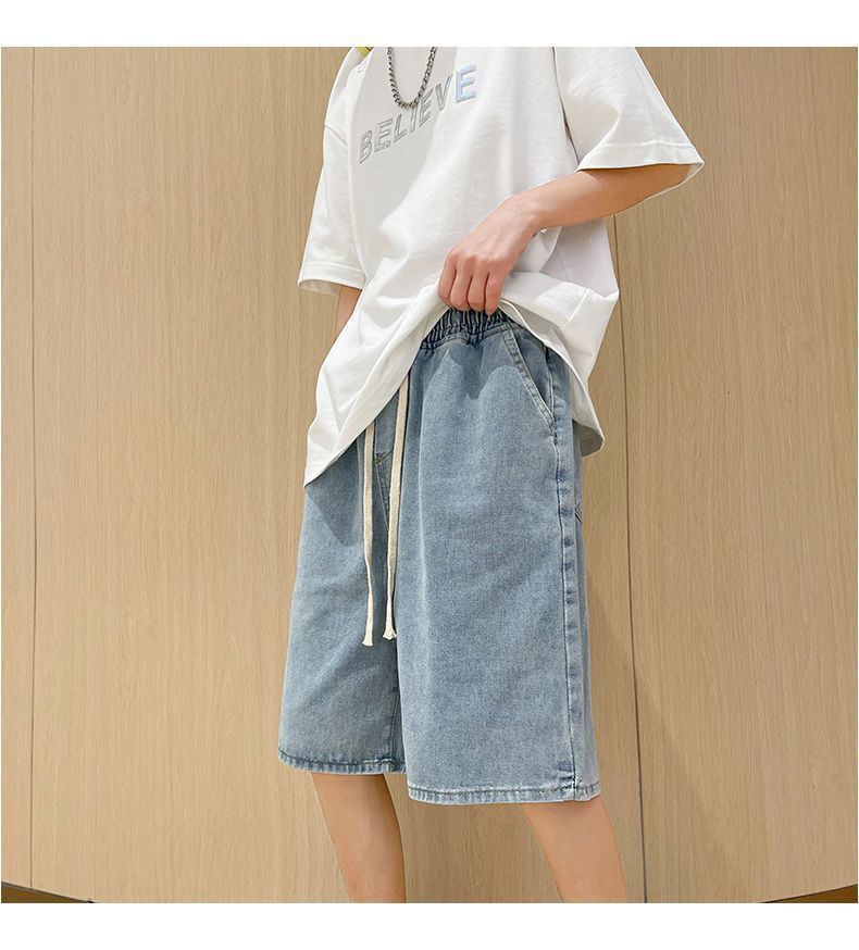 여름 얇은 캐주얼 데님 반바지 남성 트렌디한 신축성 있는 허리 5부 바지 루즈 스트레이트 스포츠 바지 크로스보더스토어 가기