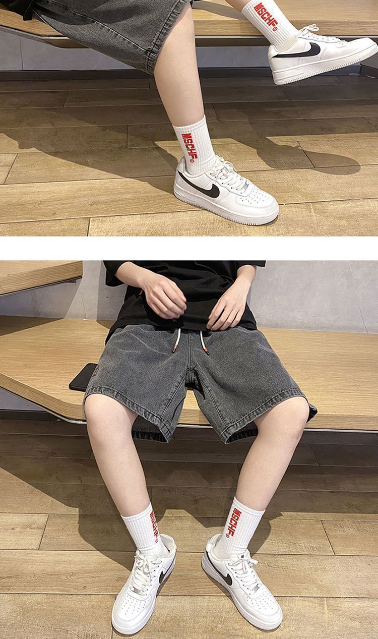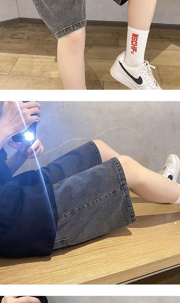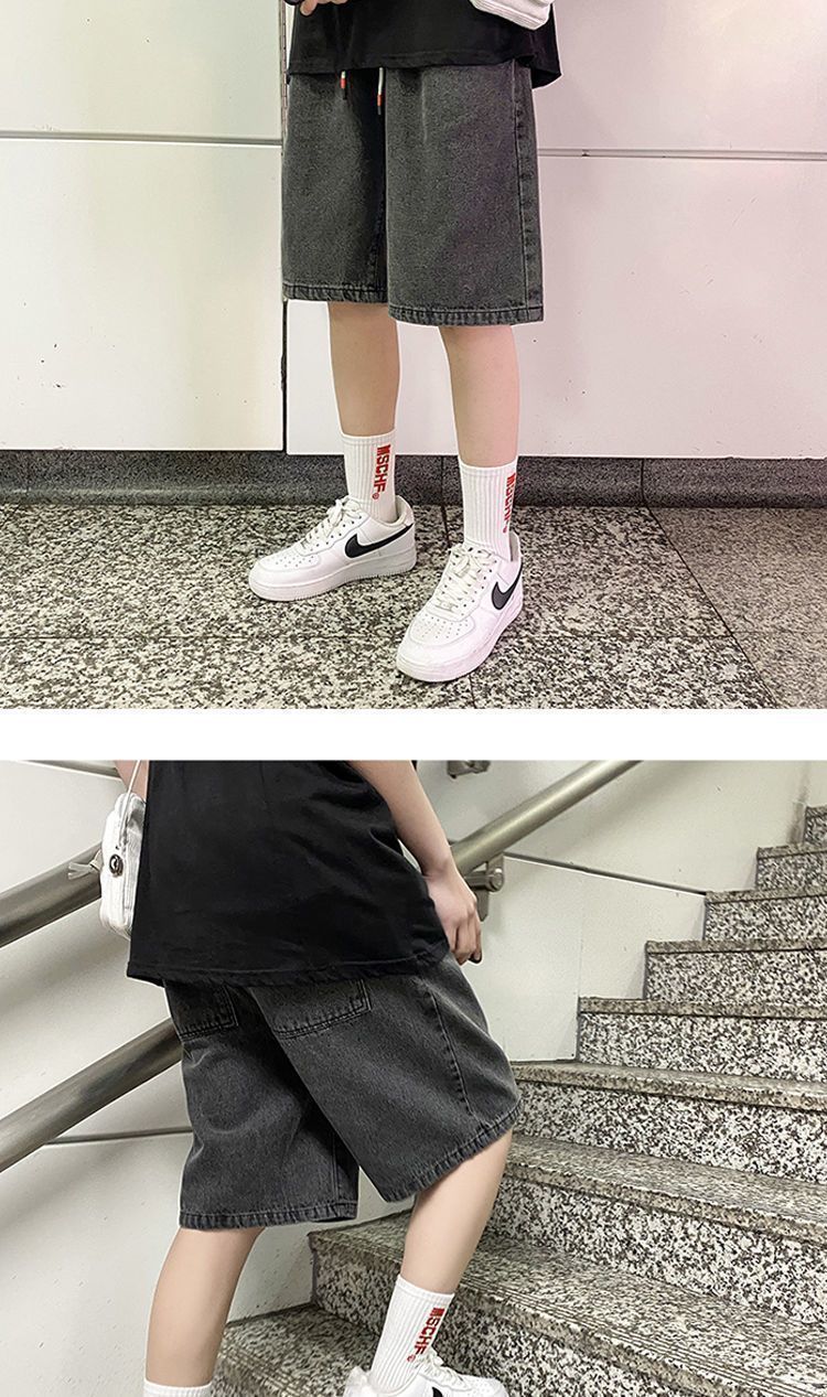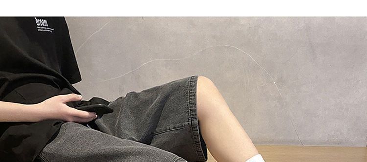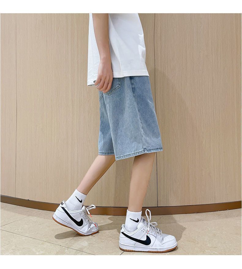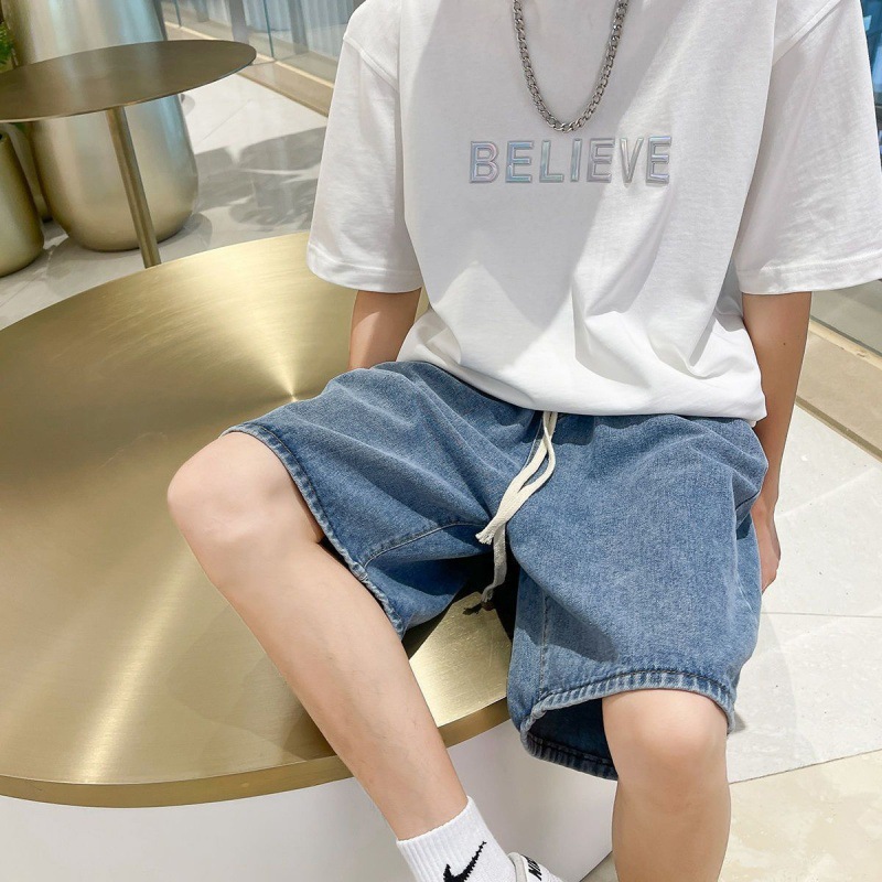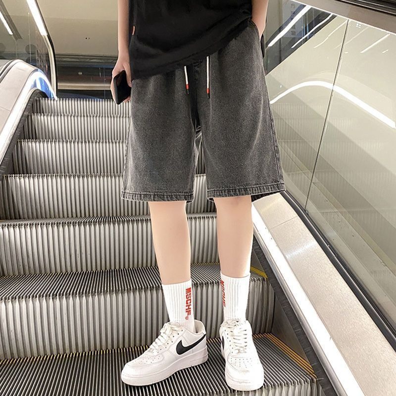 여름 얇은 캐주얼 데님 반바지 남성 트렌디한 신축성 있는 허리 5부 바지 루즈 스트레이트 스포츠 바지 크로스보더스토어 가기