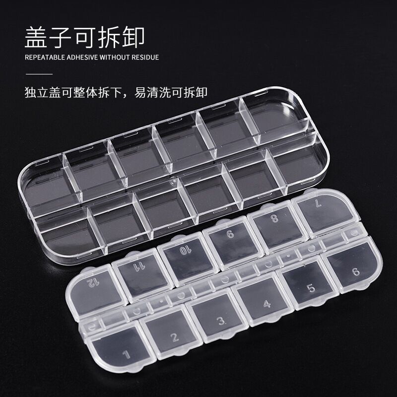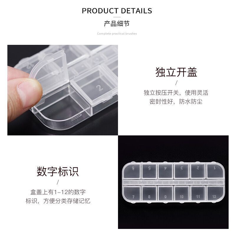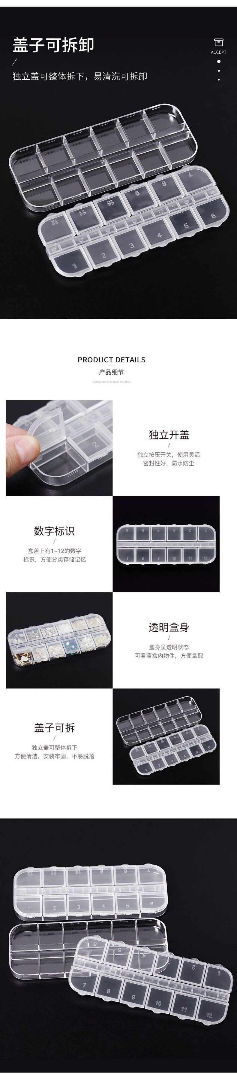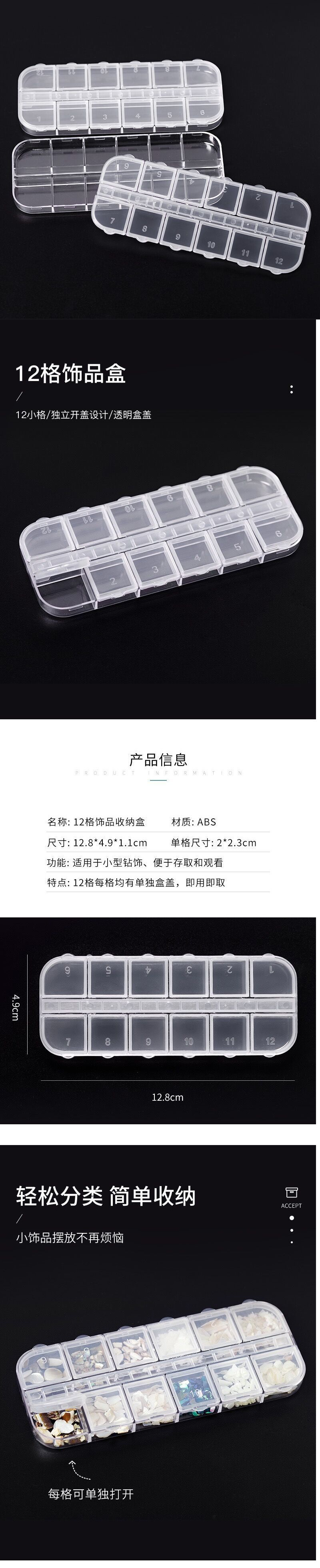 인터넷 연예인 네일 아트 액세서리 보관 상자 12 개의 독립 격자 무늬 투명 다이아몬드 상자 네일 살롱 다이아몬드 보석 보관 상자