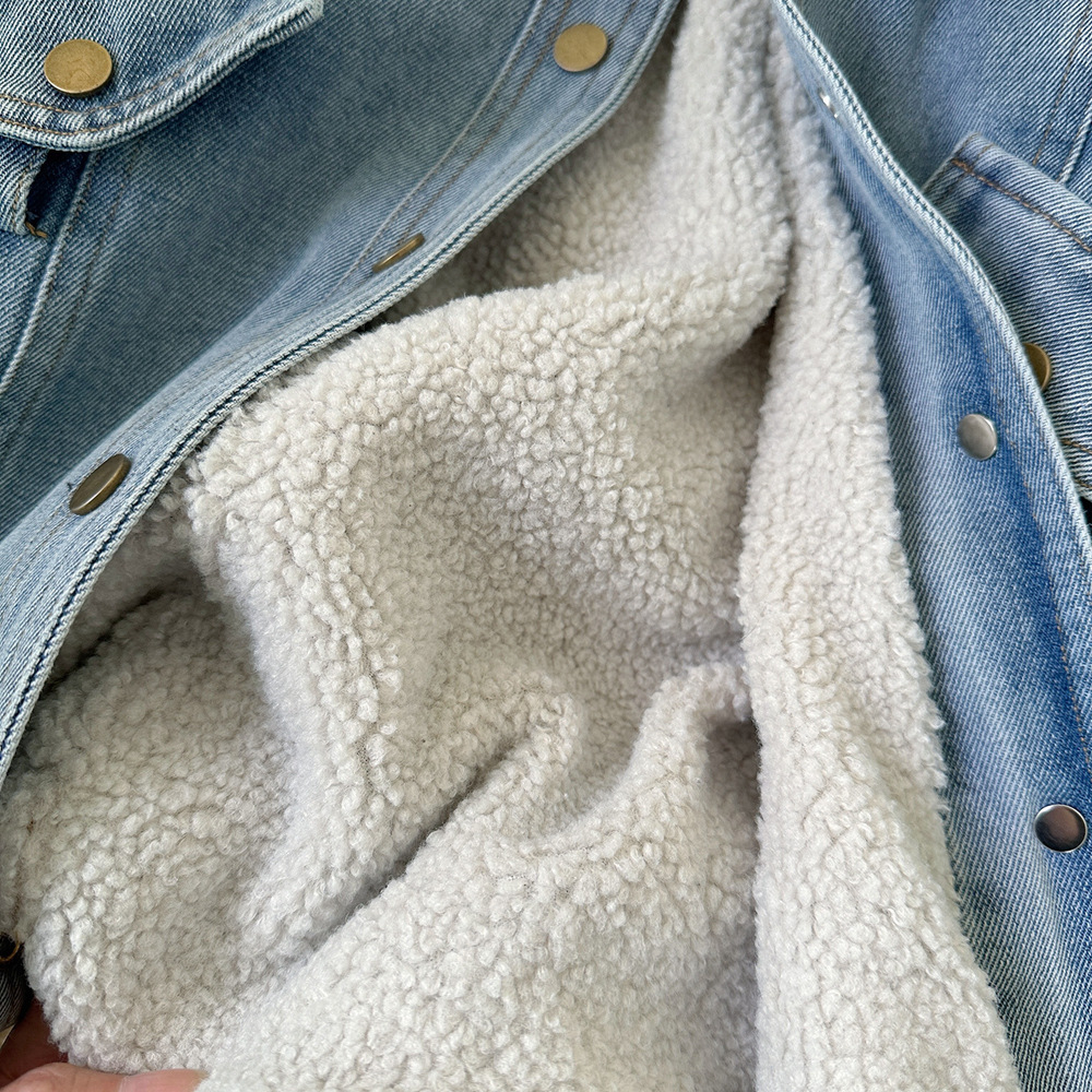 여아 벨벳 따뜻하고 부드러운 데님 재킷 2025 새로운 한국어 버전 아동용 중간 길이 가을, 겨울 두꺼운 탑 유행