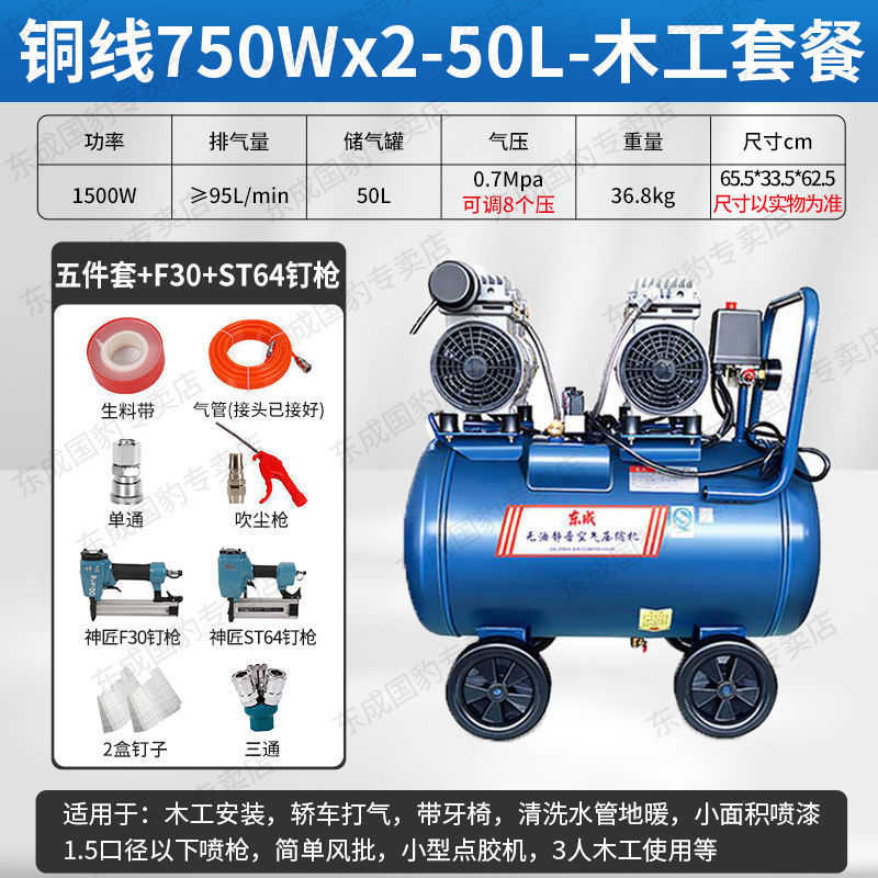 • [순수 구리] 2X750W-50L 이중 공기 흡입구 + F30 직선 네일 건 패키지