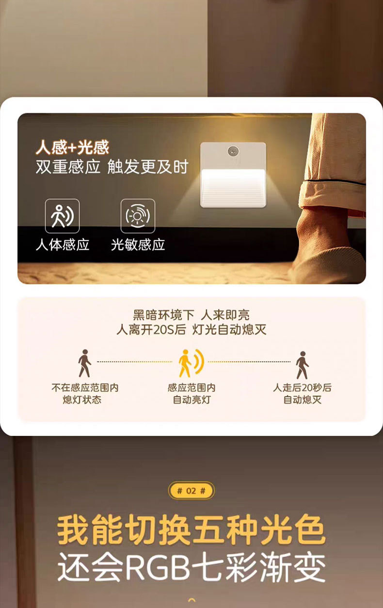 새로운 RGB 컬러 센서 계단 조명 지능형 충전식 컬러 USB 자기 인체 LED 야간 조명스토어 가기