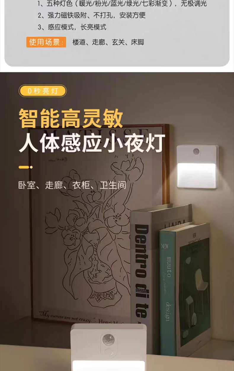 새로운 RGB 컬러 센서 계단 조명 지능형 충전식 컬러 USB 자기 인체 LED 야간 조명