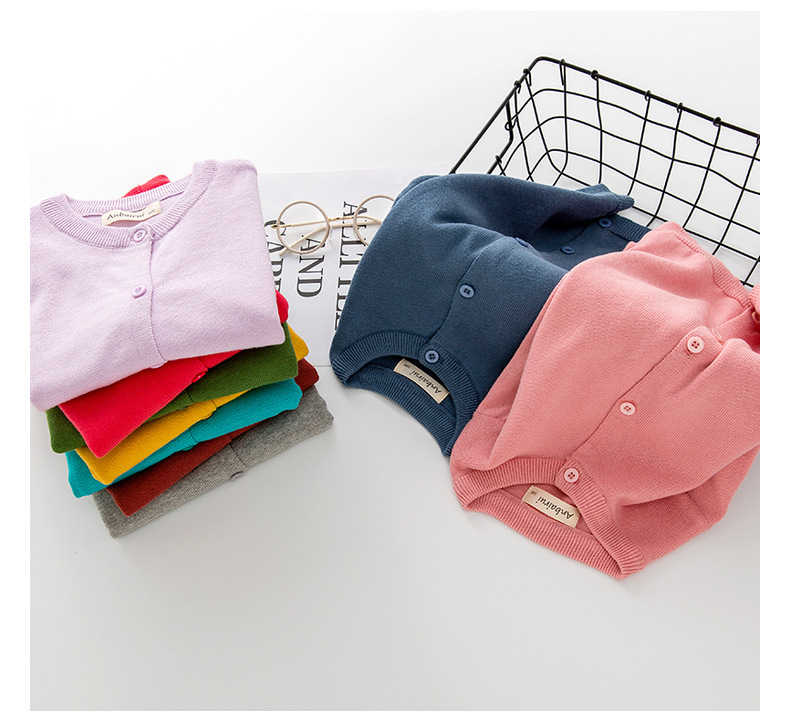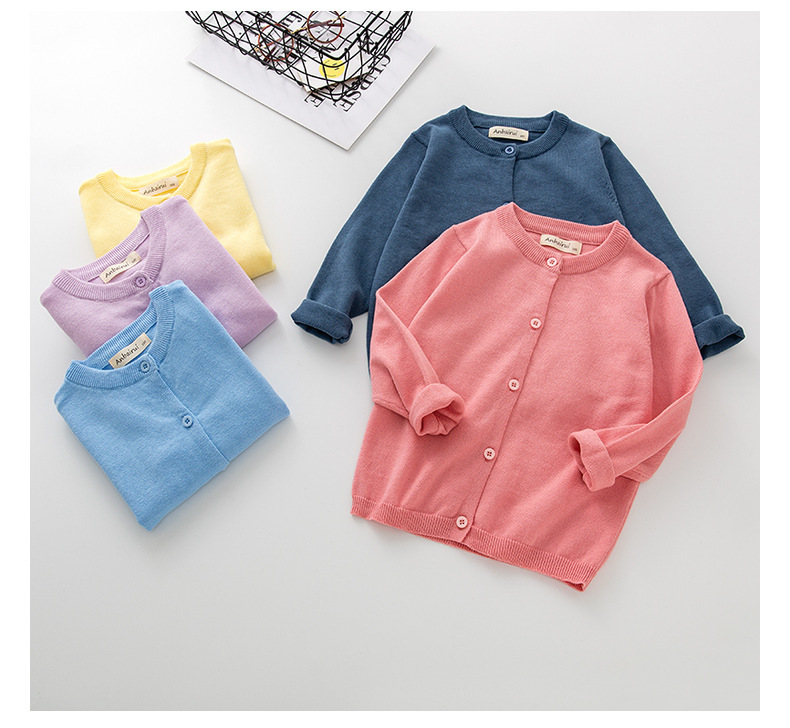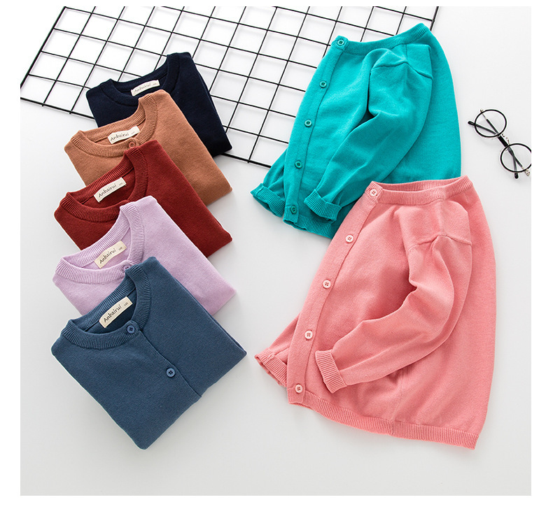 Spot 제조업체의 새로운 인기 봄, 가을 스웨터 캔디 컬러 가디건 솔리드 컬러 작은 가디건 아동 스웨터 주문스토어 가기