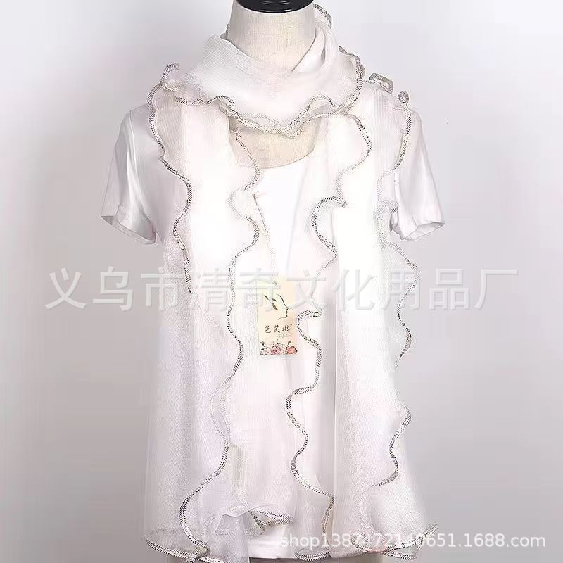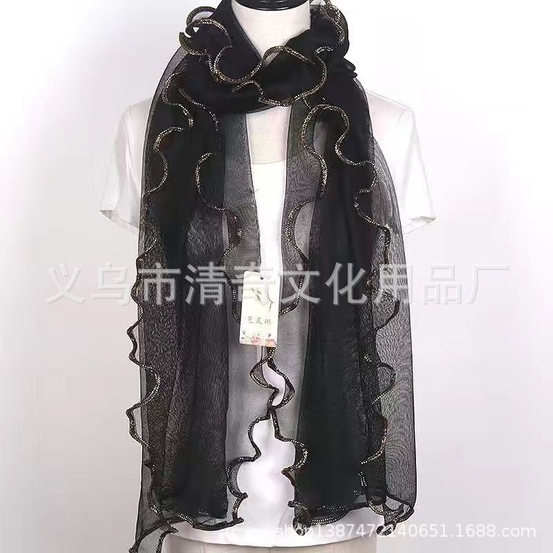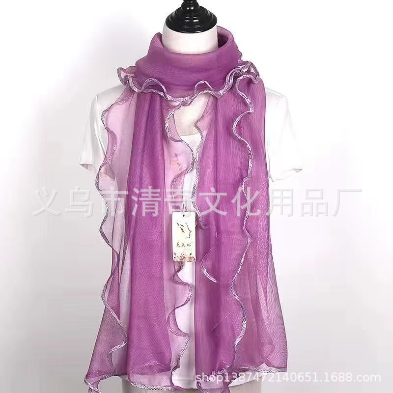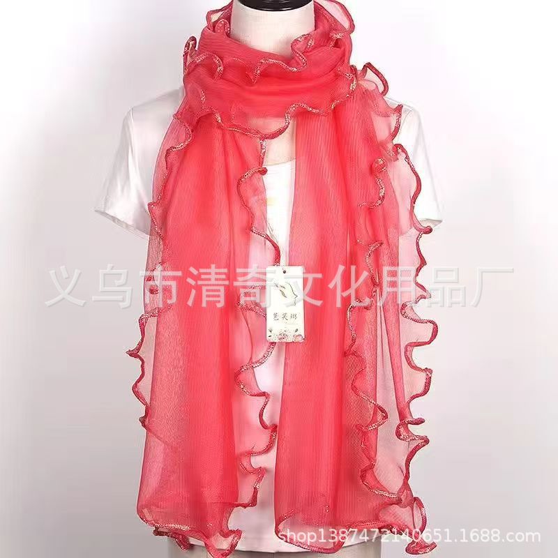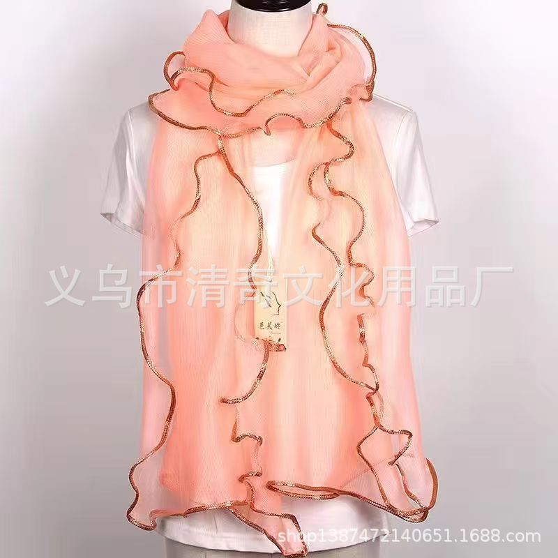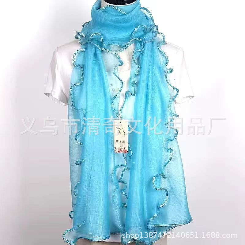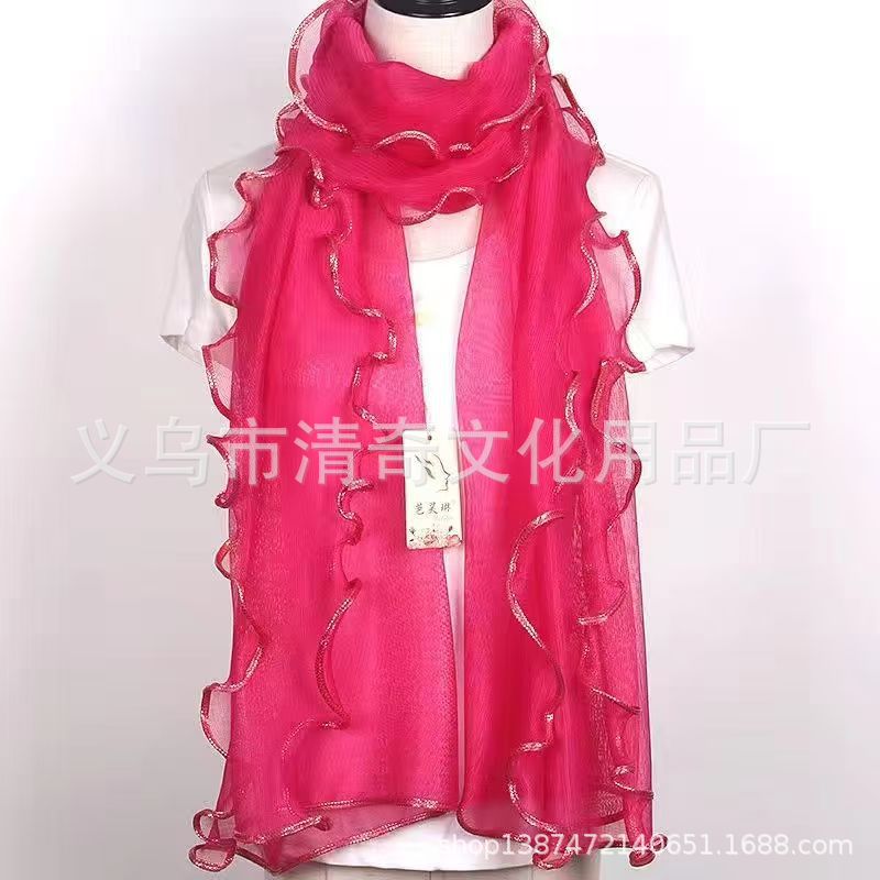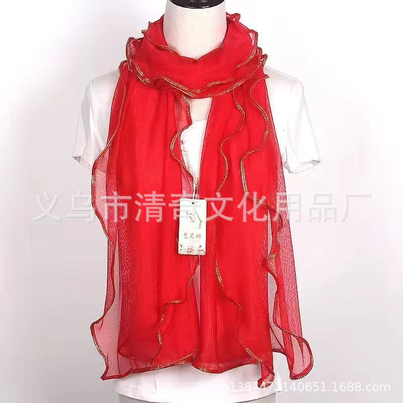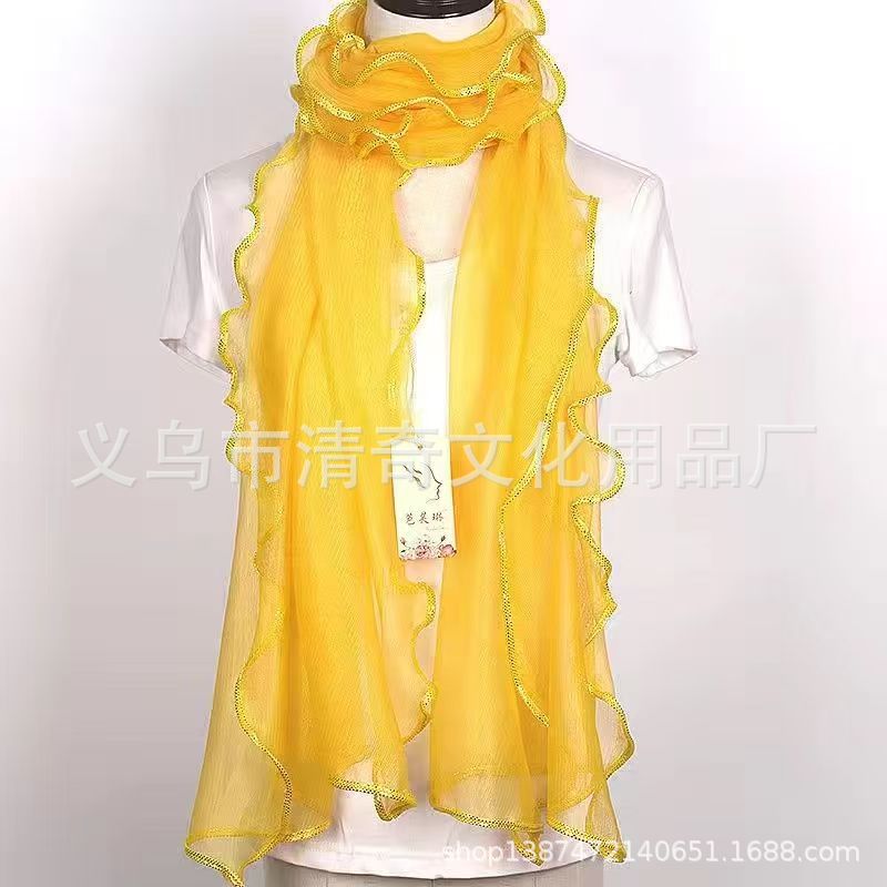 솔리드 컬러 밝은 골드 실크 컬 스카프, 러플 나무 껍질 스카프, 신축성 있는 숄, 따뜻한 스카프, 댄스 스카프, 헤드 스카프스토어 가기