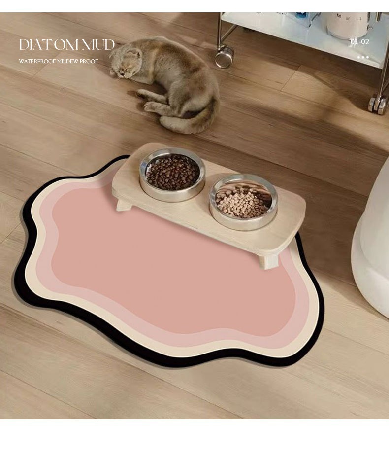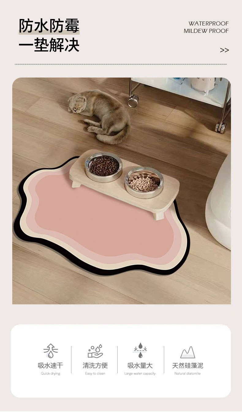 간단한 규조토 진흙 애완동물 먹이 매트, 흡수성 및 속건성 애완동물 식탁 매트, 세탁이 필요 없고 관리가 쉬운 바닥 매트, 애완동물 스플래시 매트