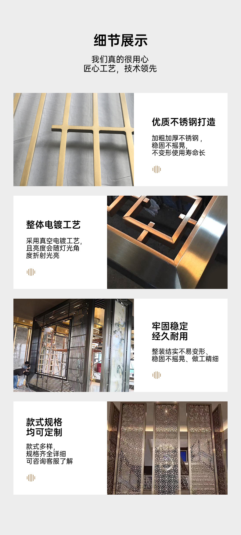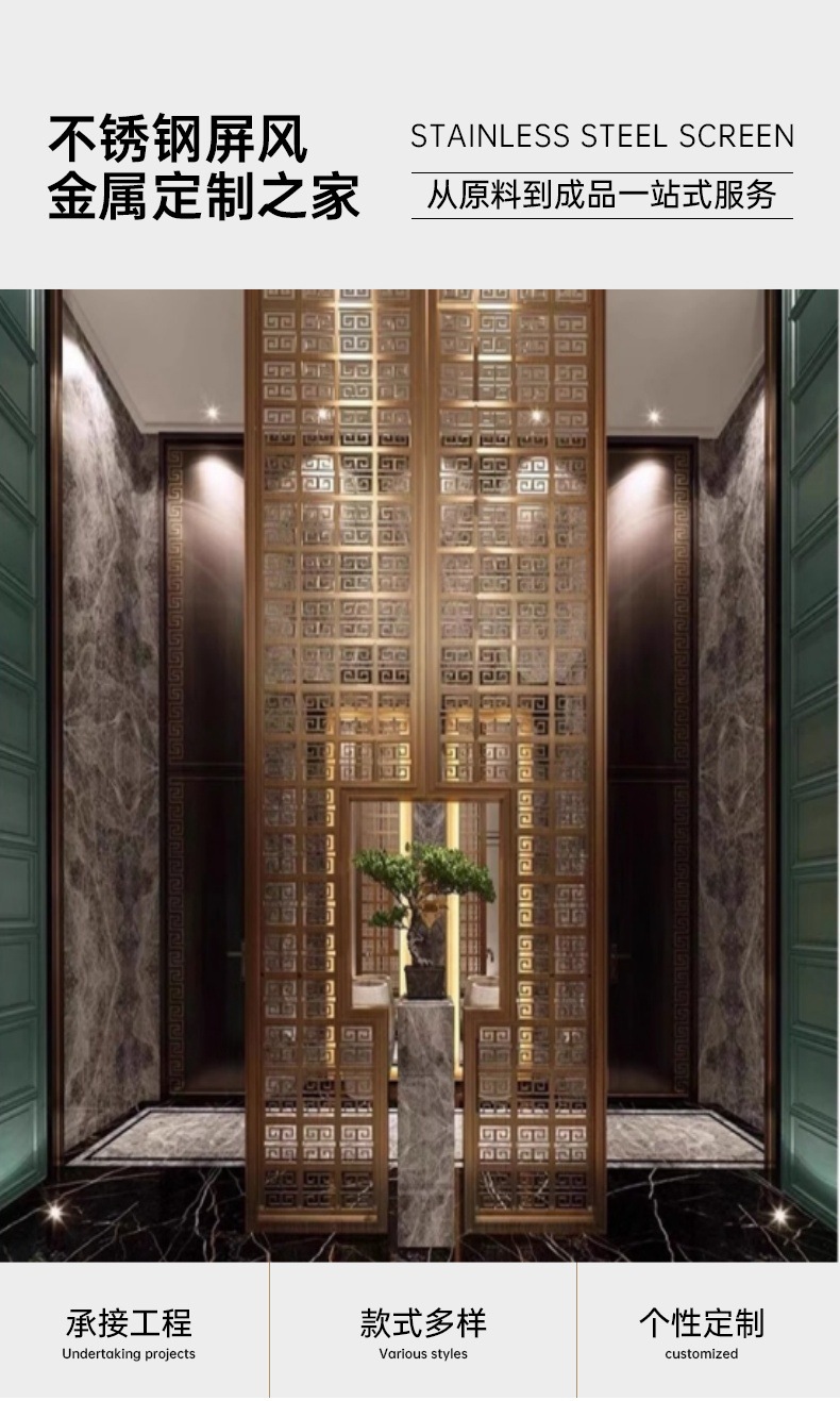 판매부대 로비 장식 철제 칸막이 스크린 거실 입구 문 차단 격자 현관 스테인레스 스틸 스크린