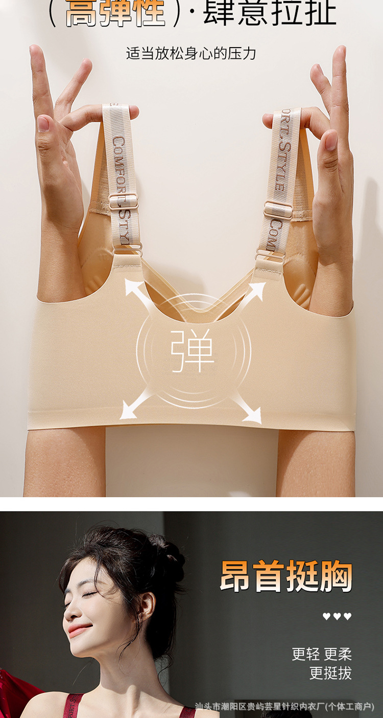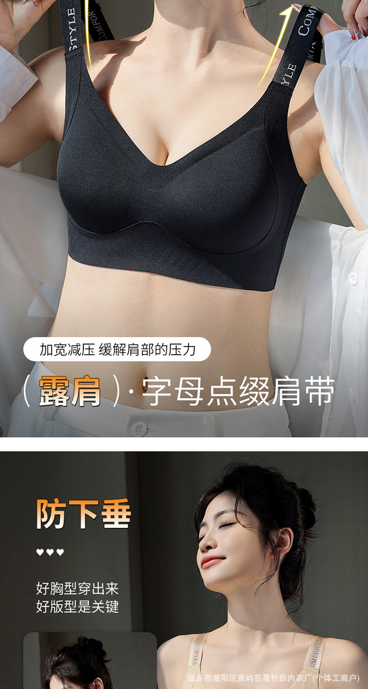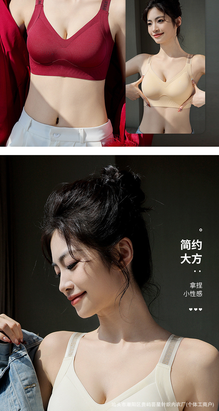 여성용 고정 컵 레터링 뷰티 백 속옷, 무봉제, 와이어 프리, 리프팅 및 푸시업 스포츠 브라, 여름용 얇은 스타일스토어 가기