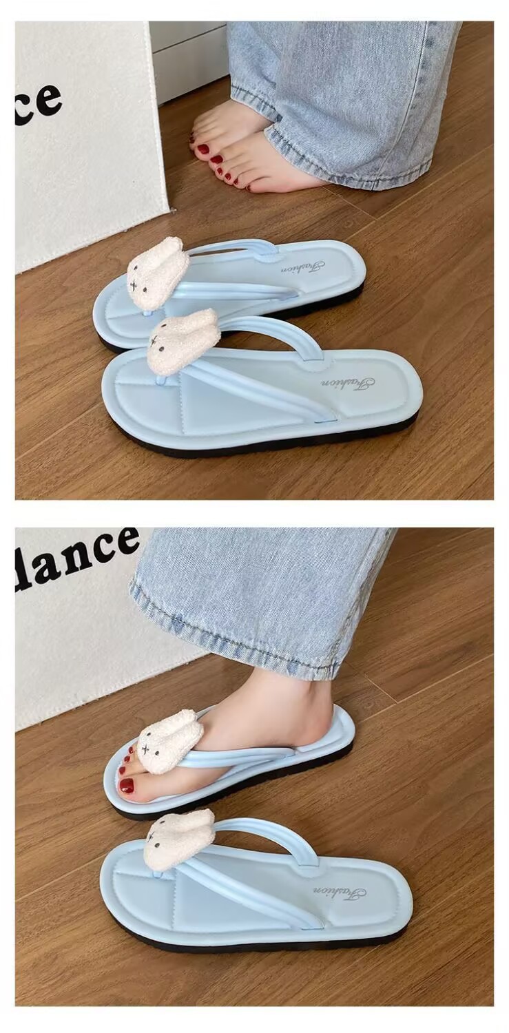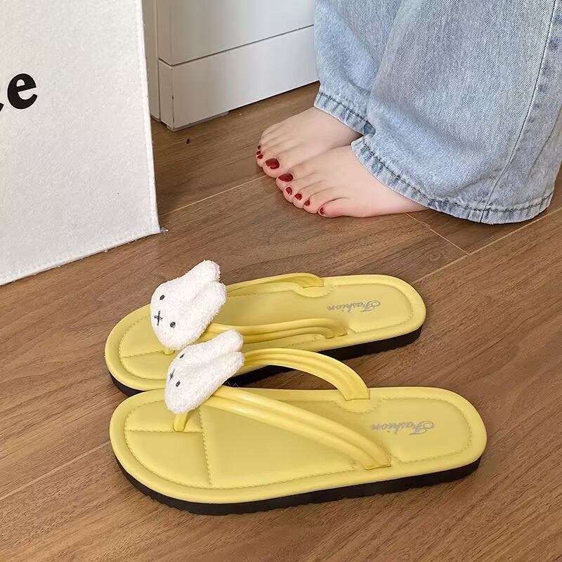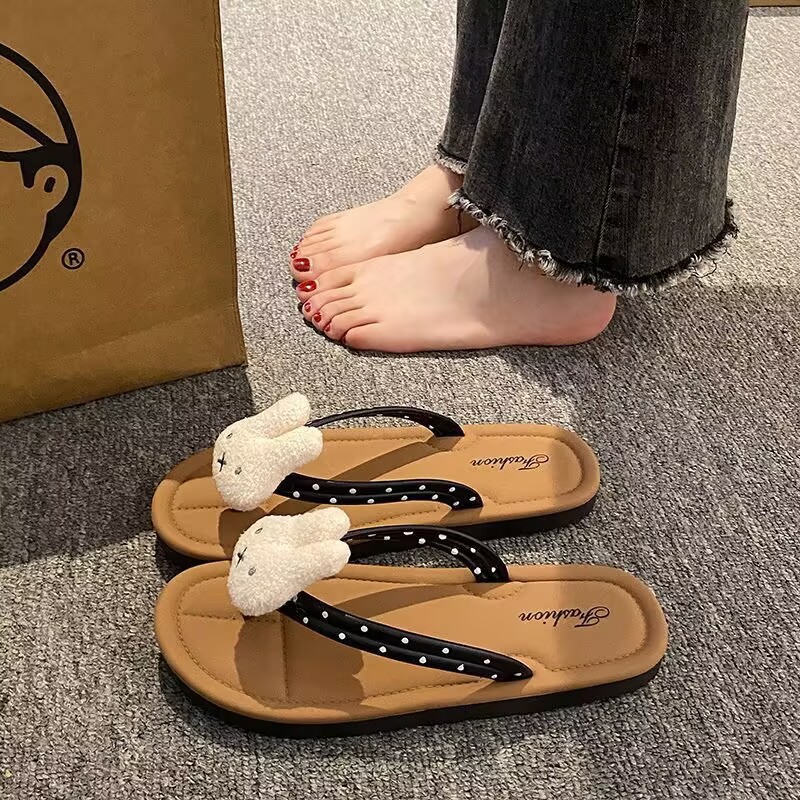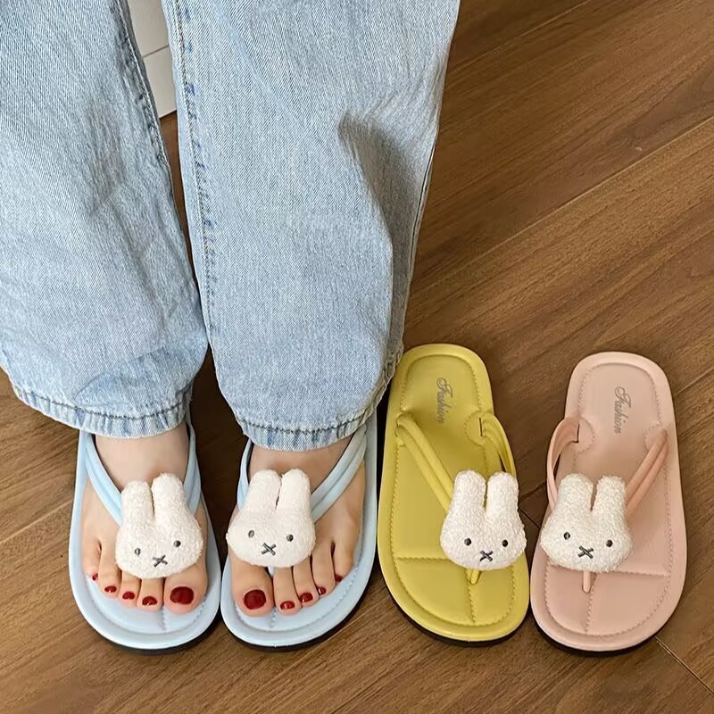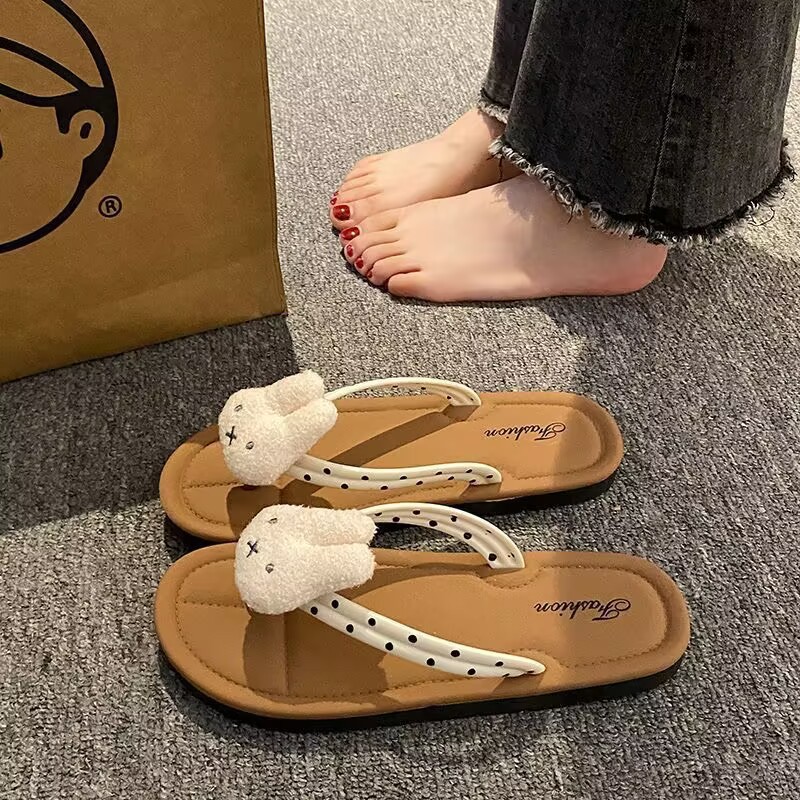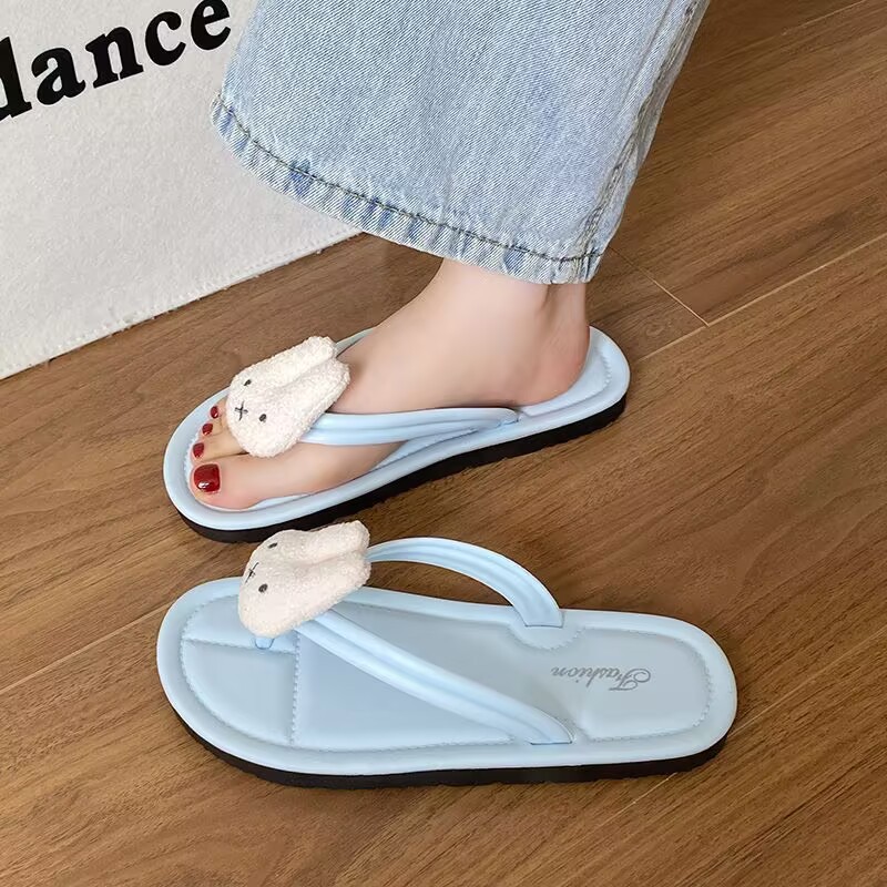 2025 새로운 여성스러운 인터넷 연예인 토끼 플립 플롭 여름 만화 귀여운 겉옷 미끄럼 방지 해변 신발 도매