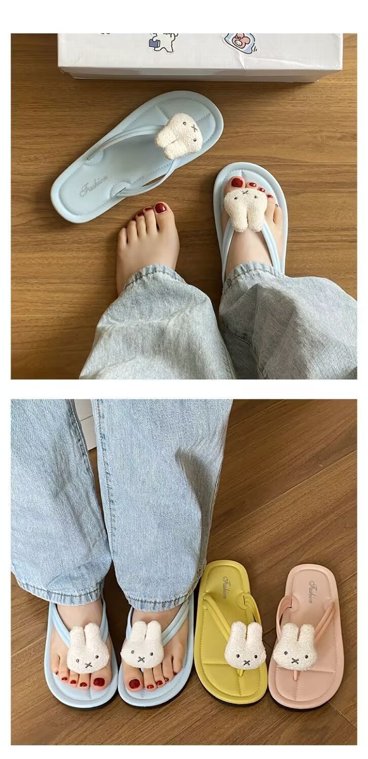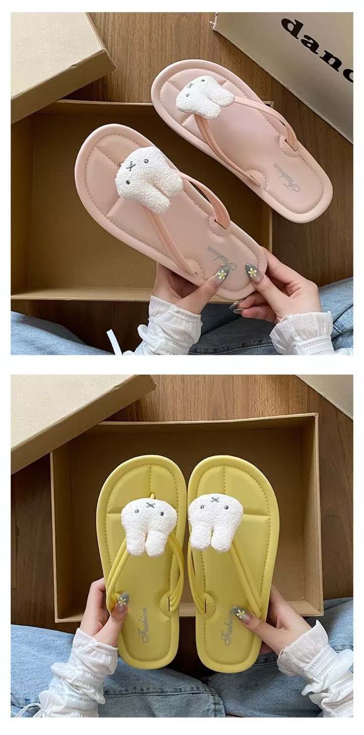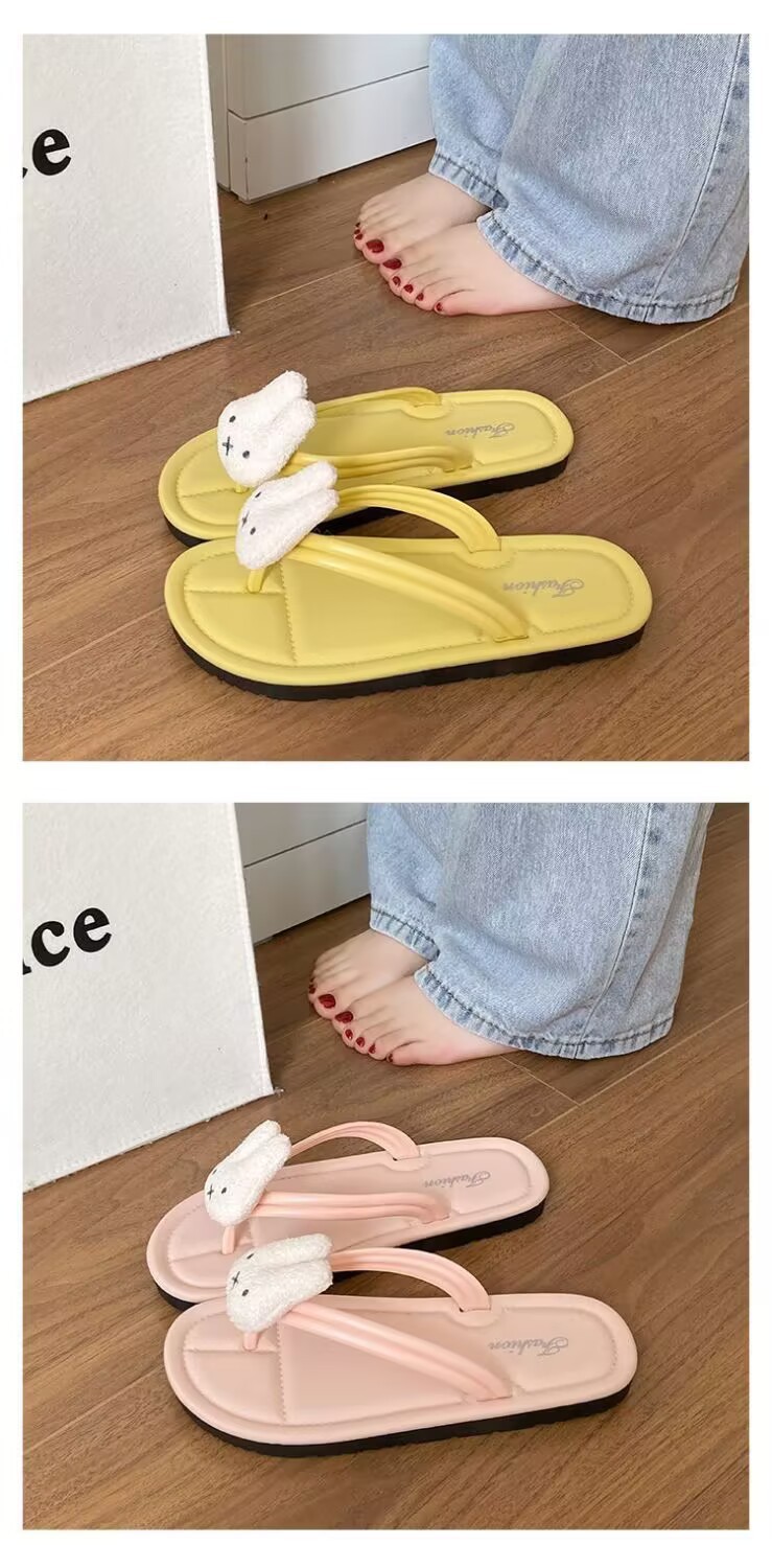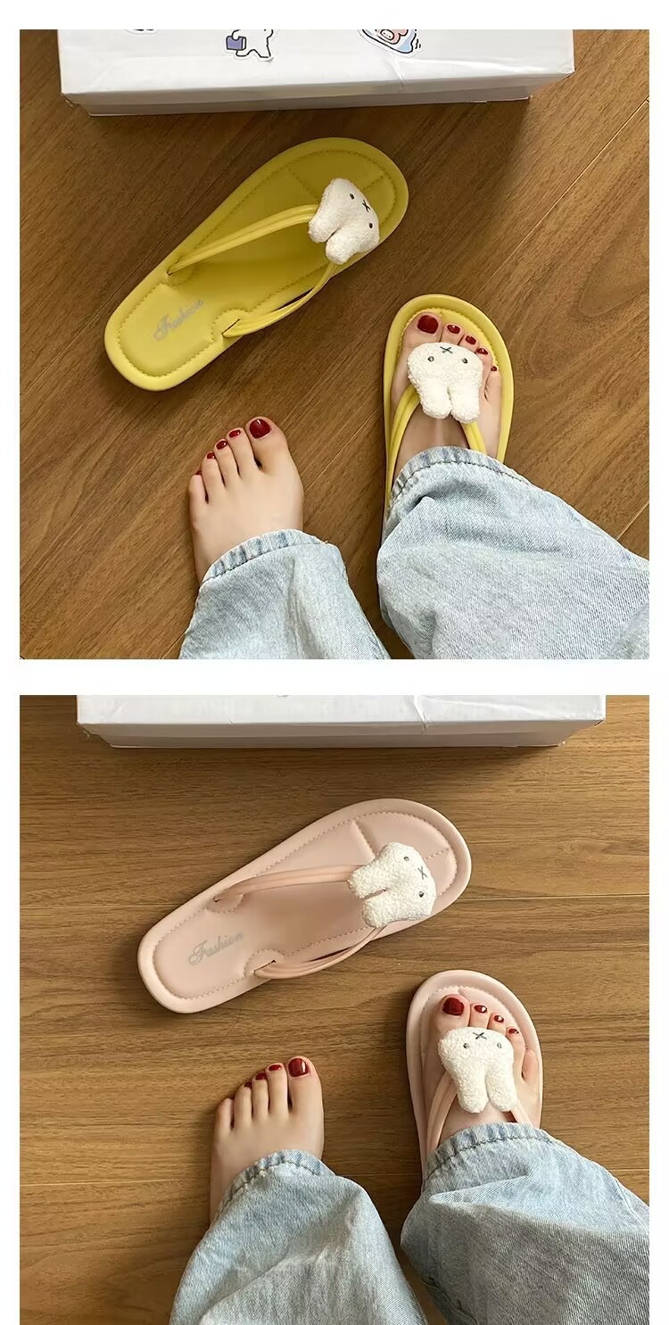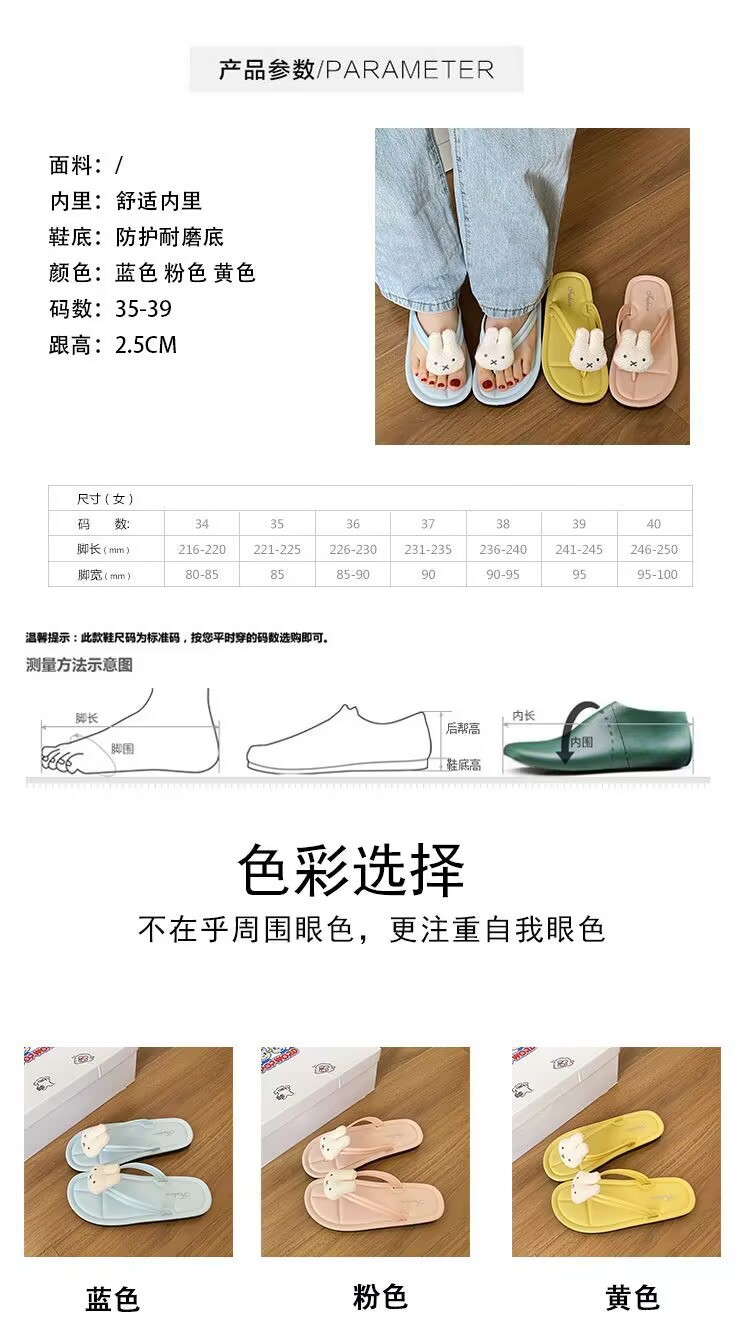 2025 새로운 여성스러운 인터넷 연예인 토끼 플립 플롭 여름 만화 귀여운 겉옷 미끄럼 방지 해변 신발 도매