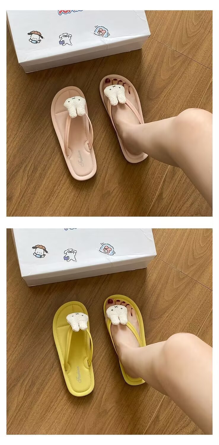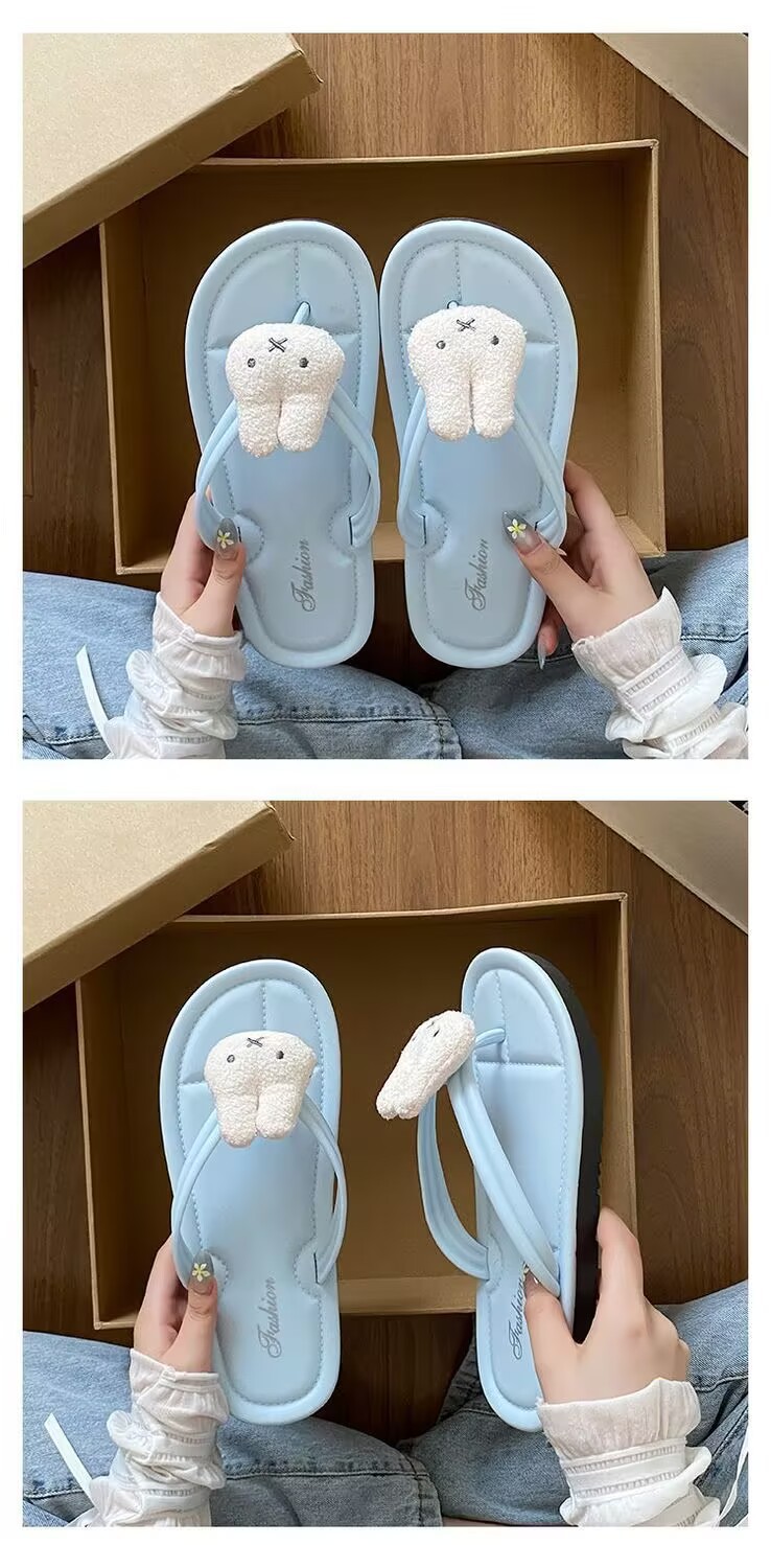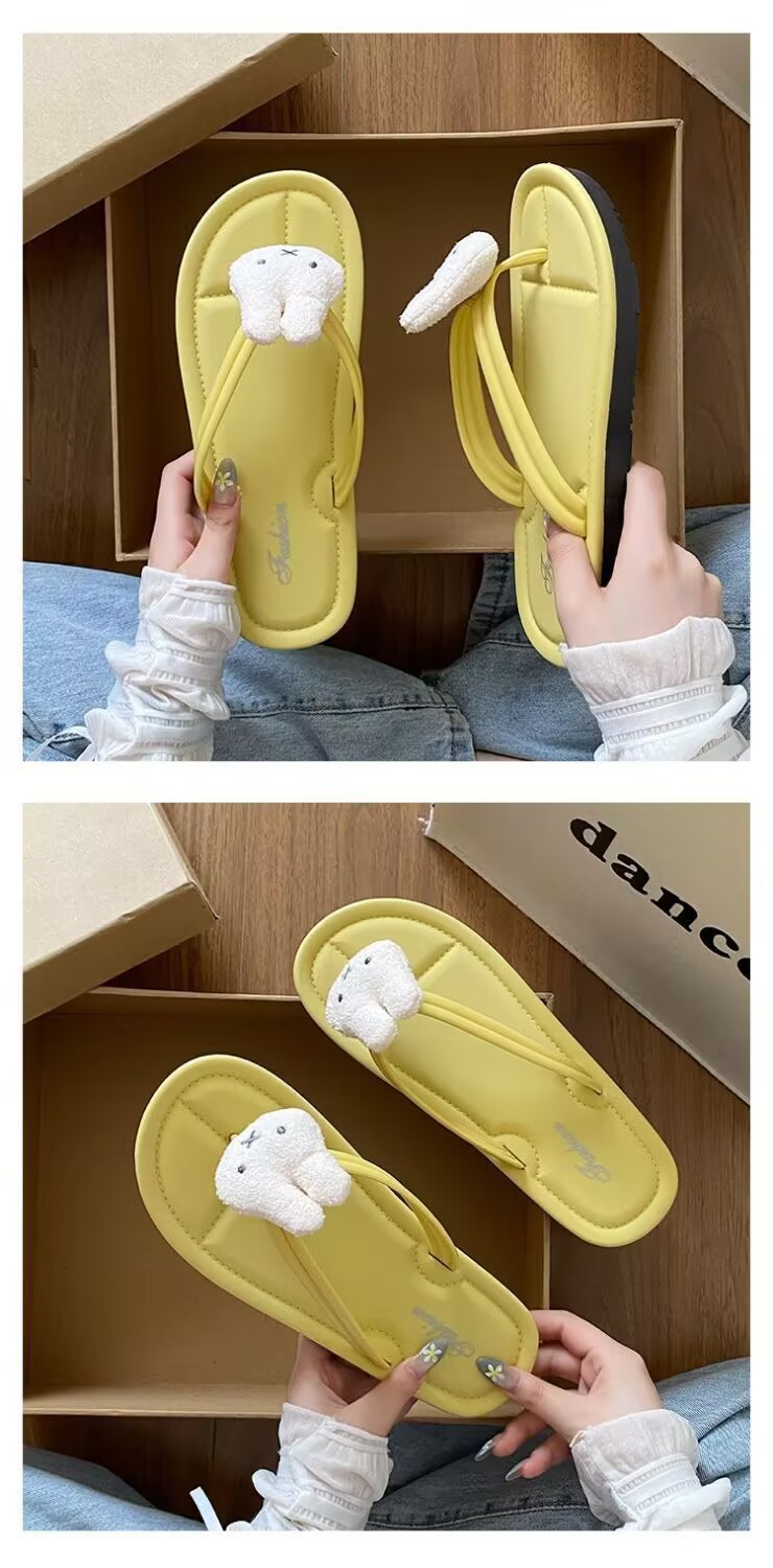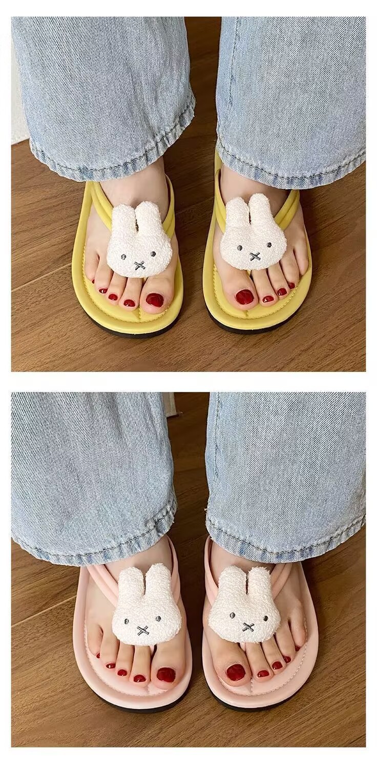 2025 새로운 여성스러운 인터넷 연예인 토끼 플립 플롭 여름 만화 귀여운 겉옷 미끄럼 방지 해변 신발 도매