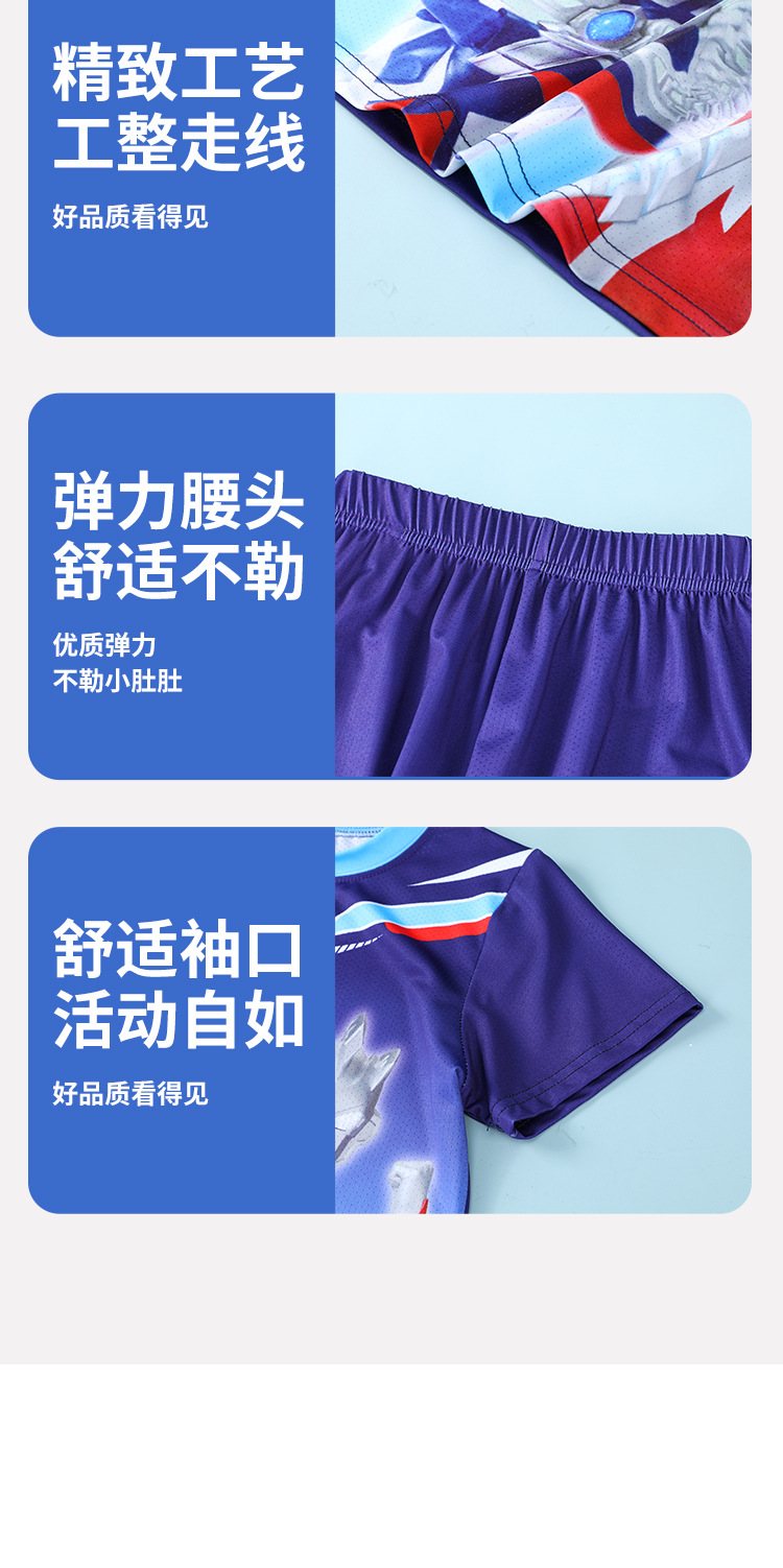 Sero 소년 스포츠 반팔 반바지 정장 울트라 맨 반팔 소년 농구 유니폼 얇은 속건성 통기성 여름스토어 가기