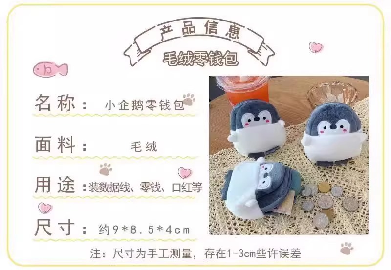 만화 펭귄 동전 지갑 플러시 학교 가방 펜던트 귀여운 카드 가방 휴대용 립스틱 가방 일본식 키 보관 가방스토어 가기