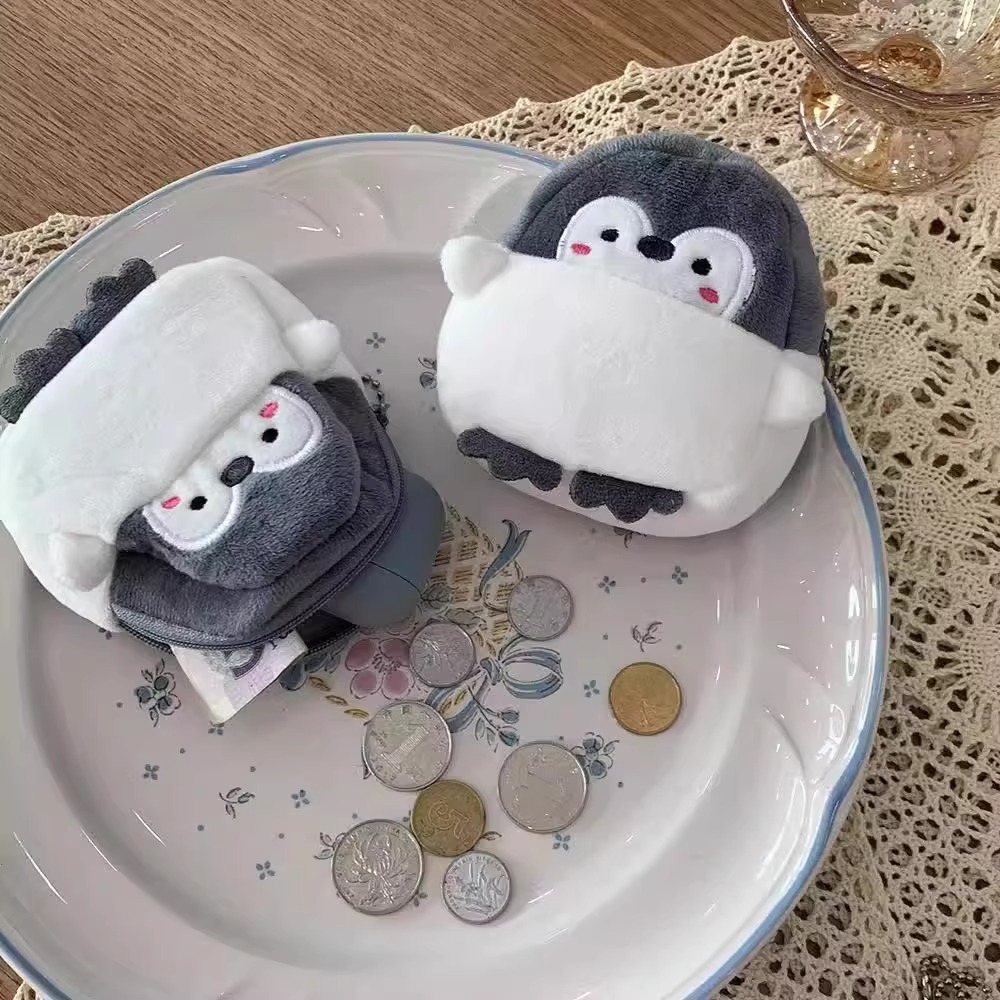 만화 펭귄 동전 지갑 플러시 학교 가방 펜던트 귀여운 카드 가방 휴대용 립스틱 가방 일본식 키 보관 가방