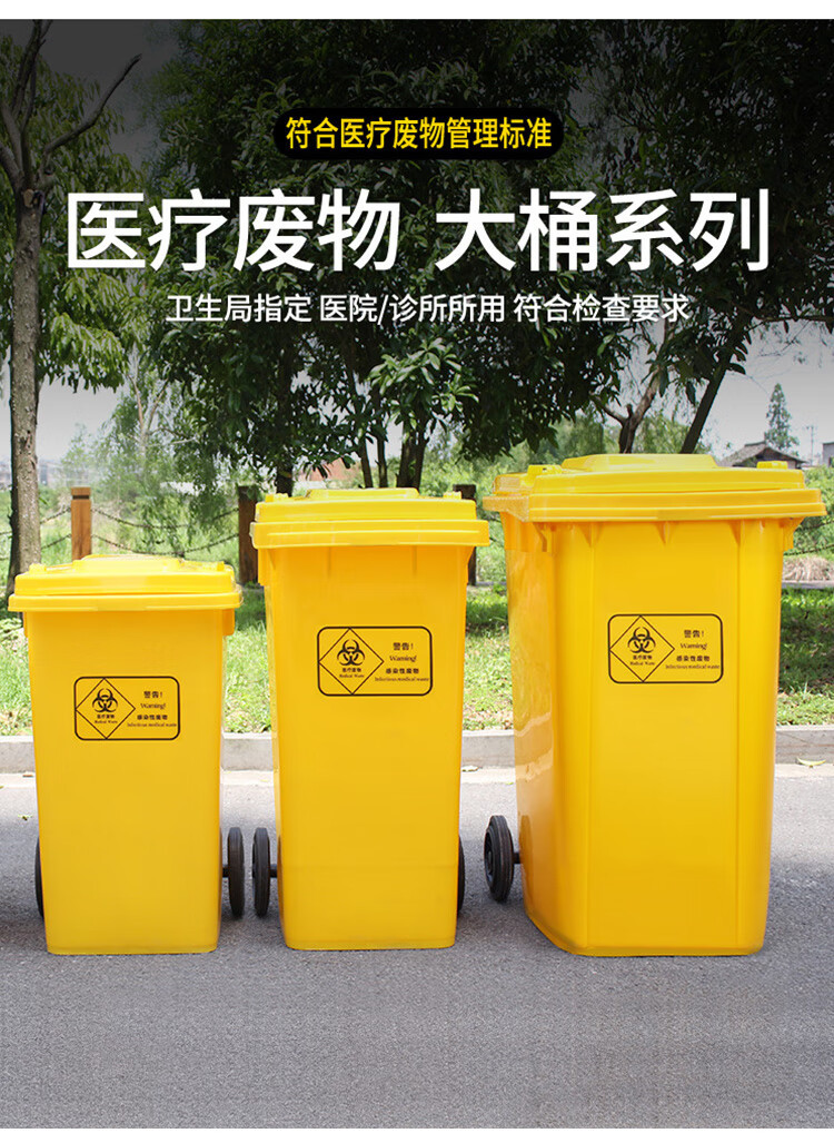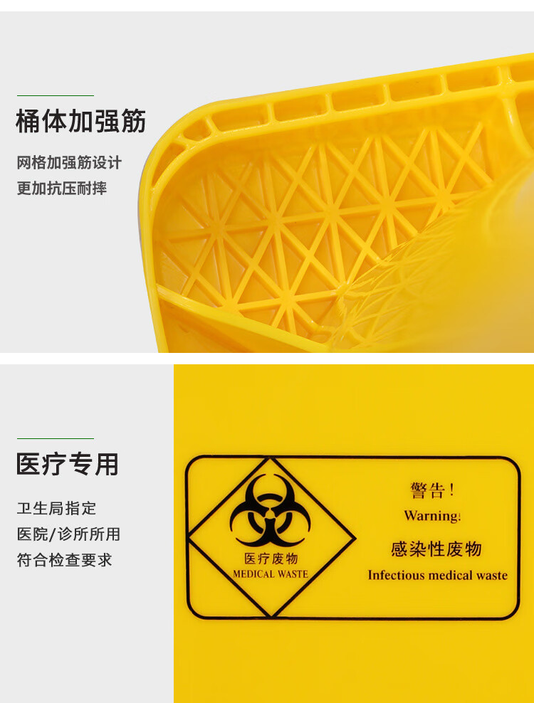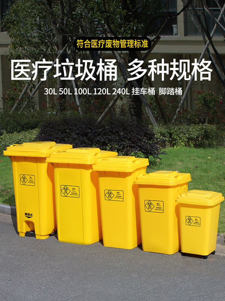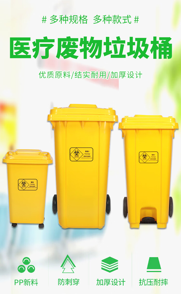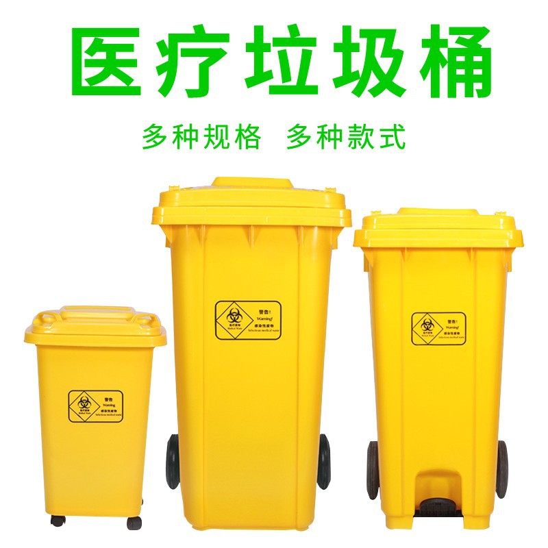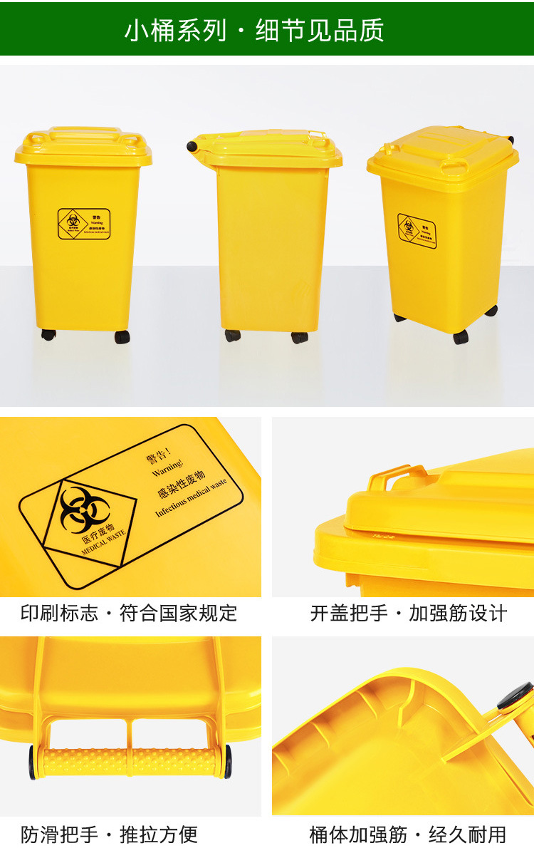 VLEN 의료 쓰레기통 병원 클리닉 마스크 재활용 플라스틱 폐기물통 노란색 50L 범용 휠스토어 가기