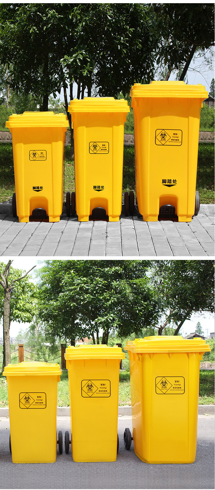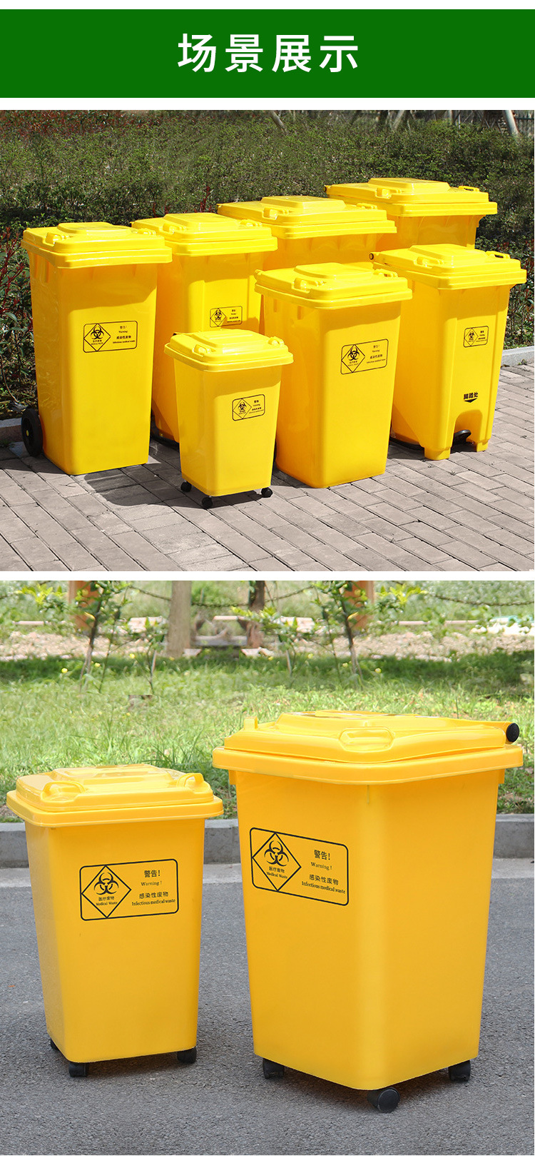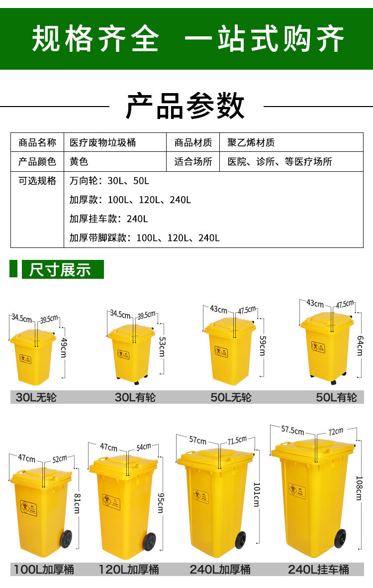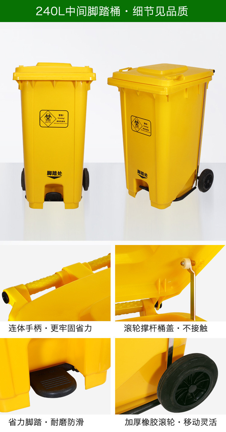 VLEN 의료 쓰레기통 병원 클리닉 마스크 재활용 플라스틱 폐기물통 노란색 50L 범용 휠스토어 가기