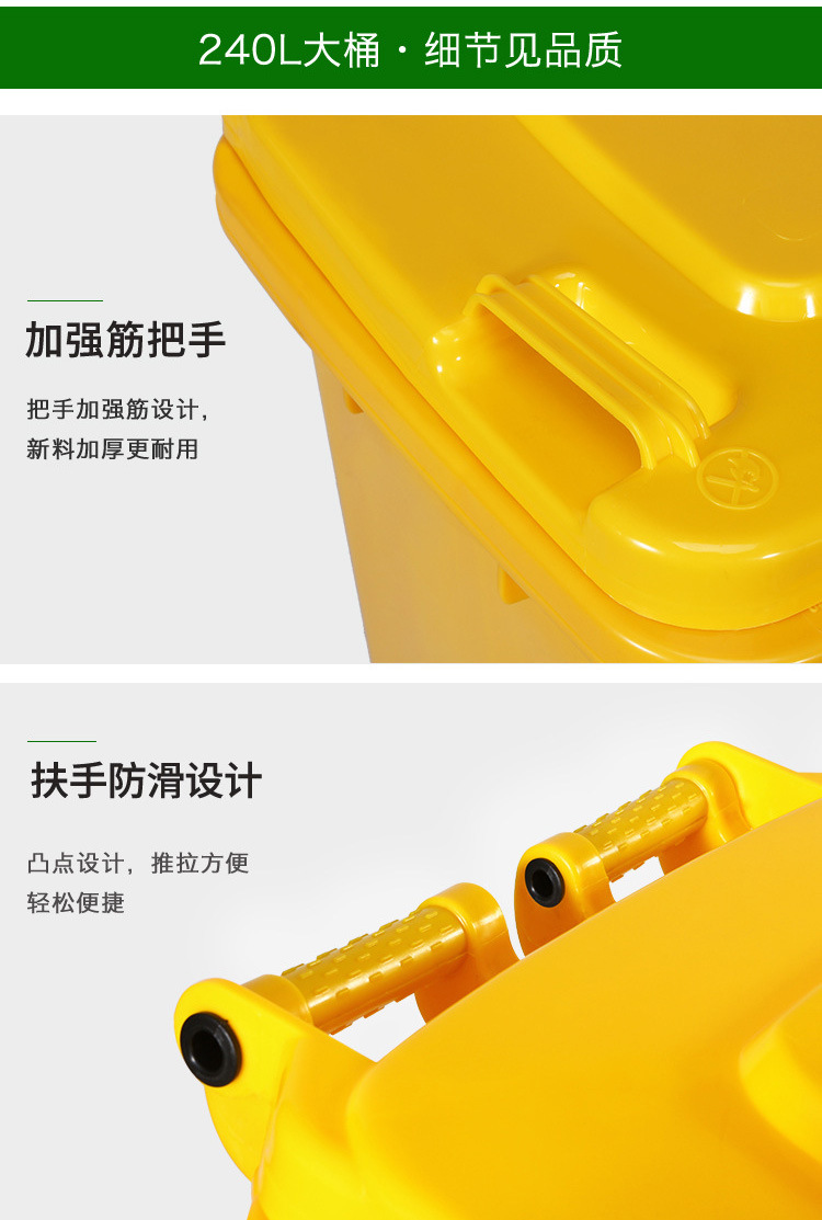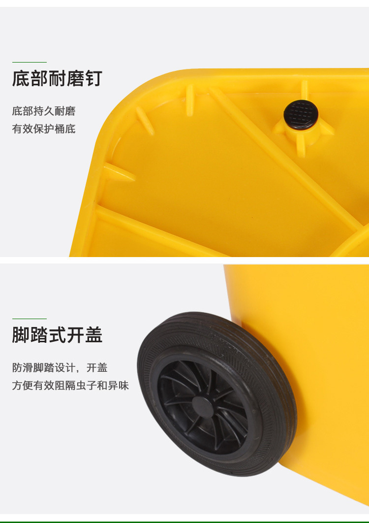 VLEN 의료 쓰레기통 병원 클리닉 마스크 재활용 플라스틱 폐기물통 노란색 50L 범용 휠