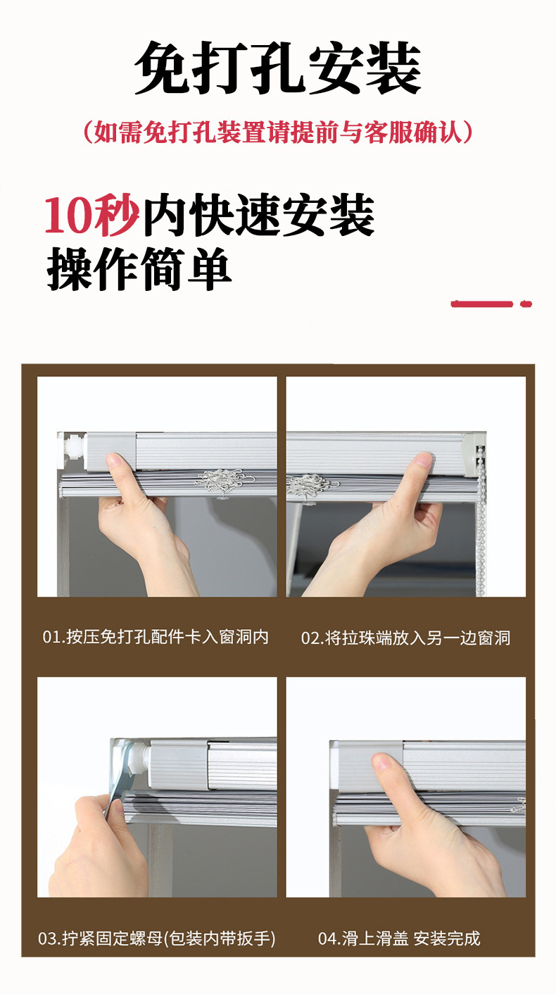 침실, 서재, 주방, 사무실 롤러 블라인드 커튼을 위한 펀치 프리 블라인드, 차양 및 차광 알루미늄 합금 블라인드