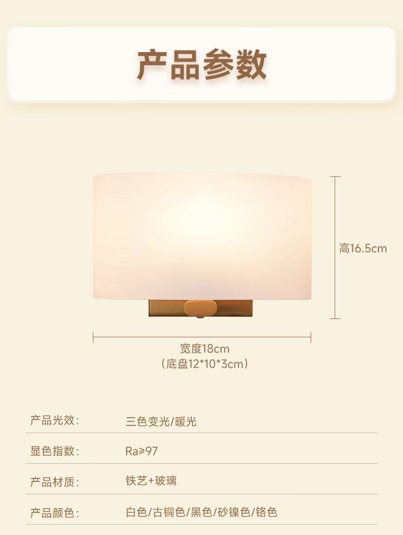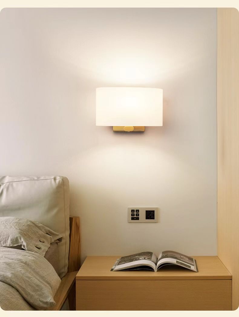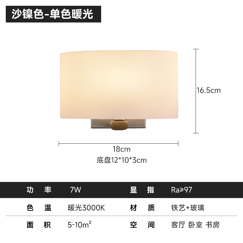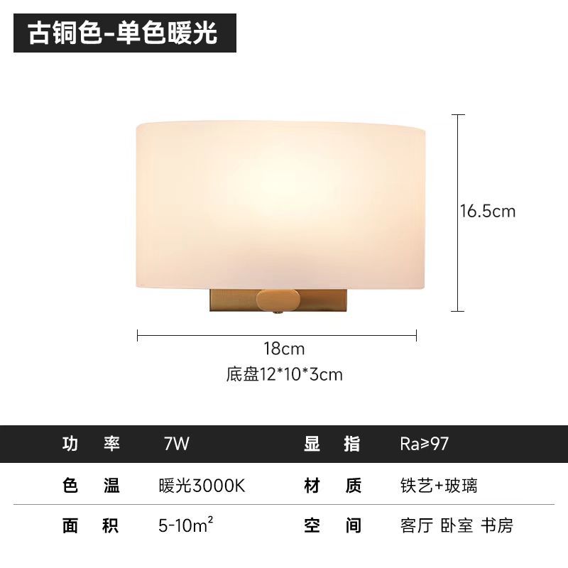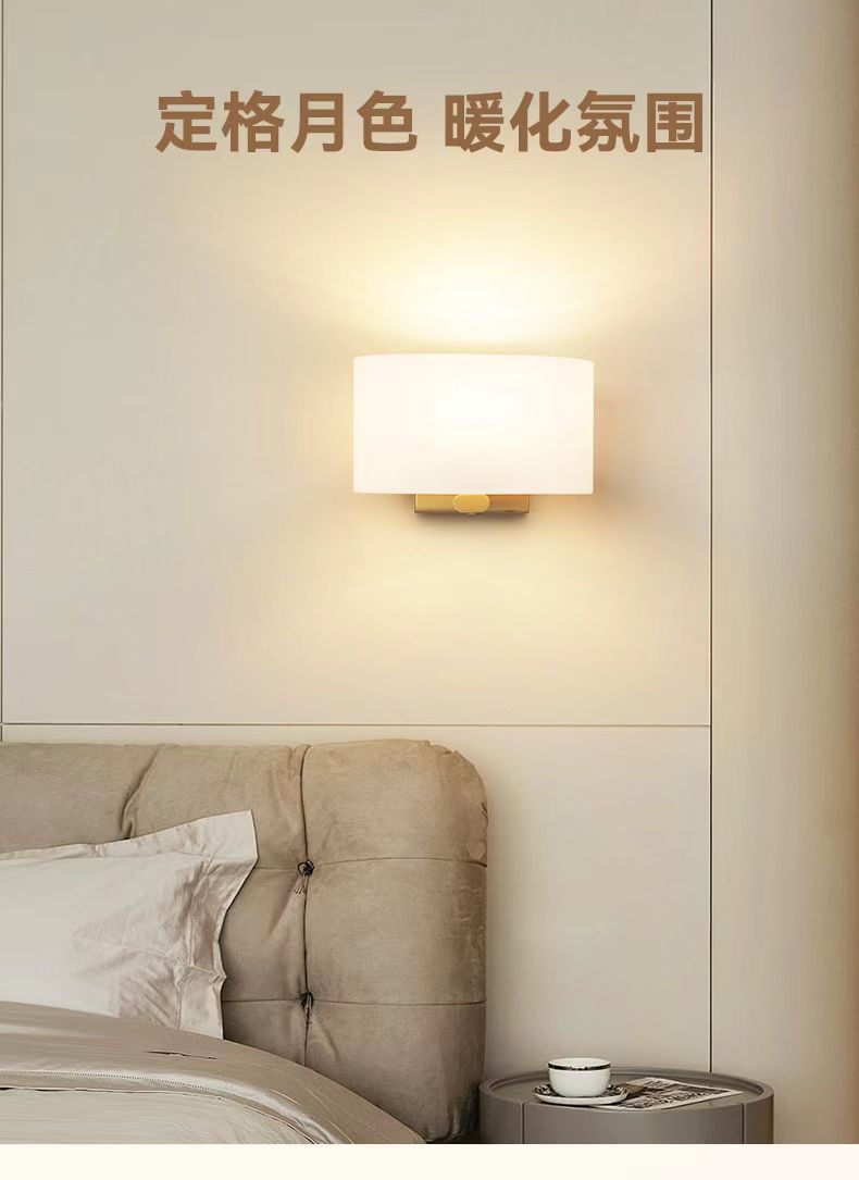 현대 미니멀리스트 벽 램프 머리맡 램프 침실 벽 램프 마스터 침실 램프 전체 스펙트럼 눈 보호 유리 벽 램프 E27 전구