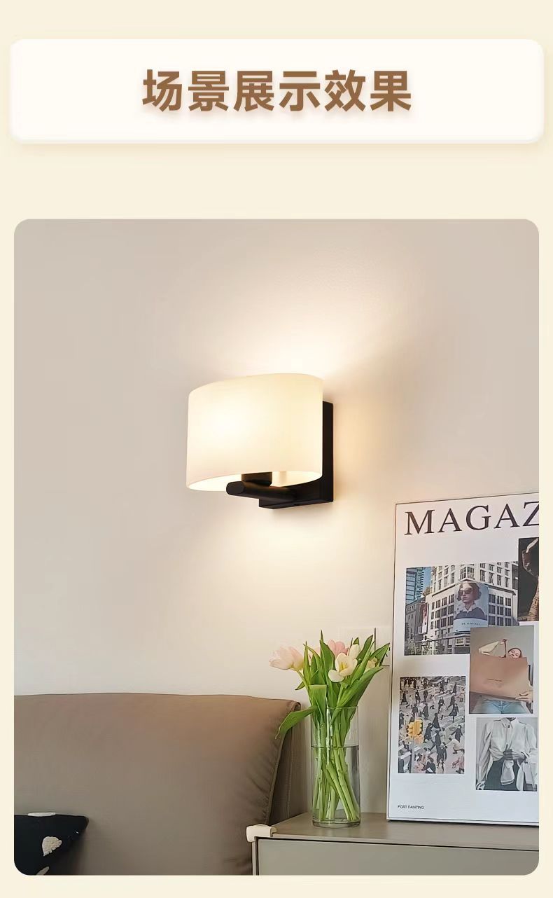 현대 미니멀리스트 벽 램프 머리맡 램프 침실 벽 램프 마스터 침실 램프 전체 스펙트럼 눈 보호 유리 벽 램프 E27 전구스토어 가기