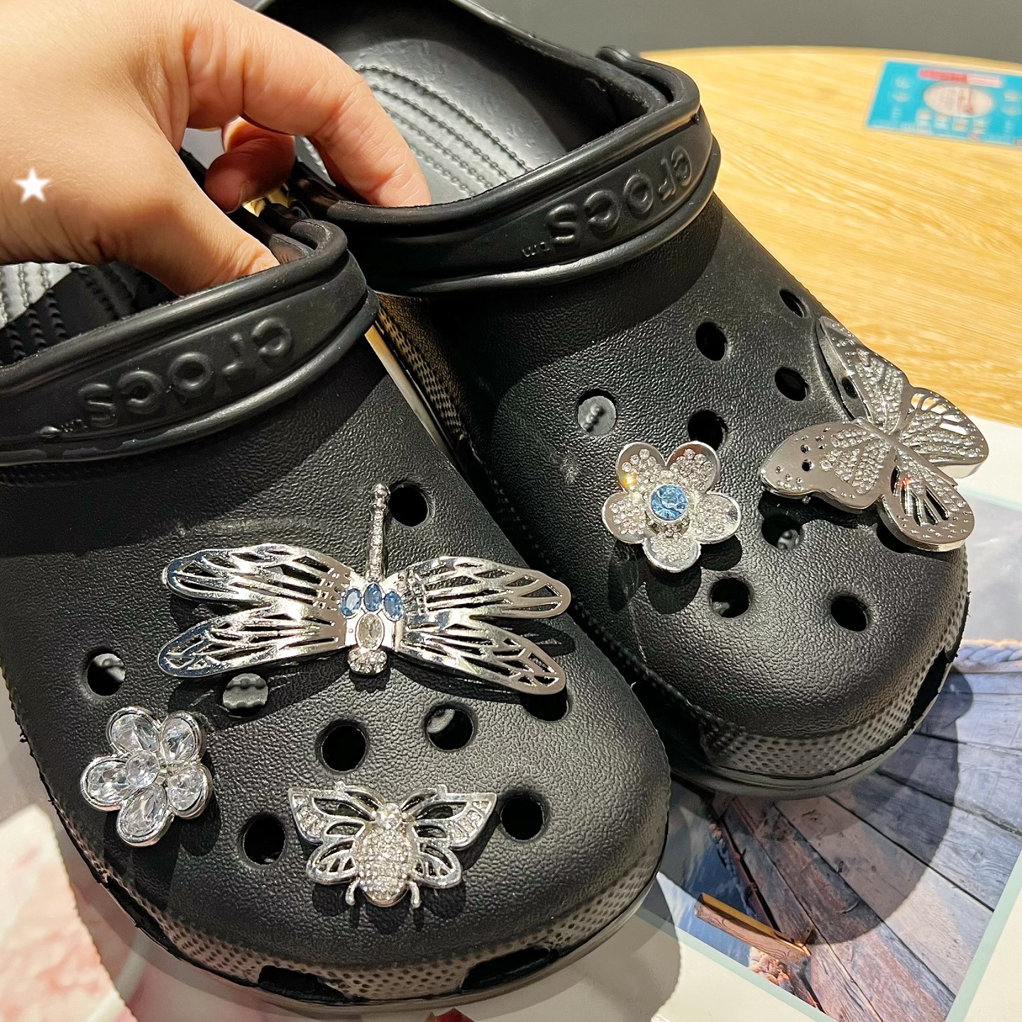 Bailu 같은 스타일의 나막신 액세서리 신발 꽃 장식 버클 범용 액세서리 DIY 다이아몬드 꽃 금속 실버 가든스토어 가기