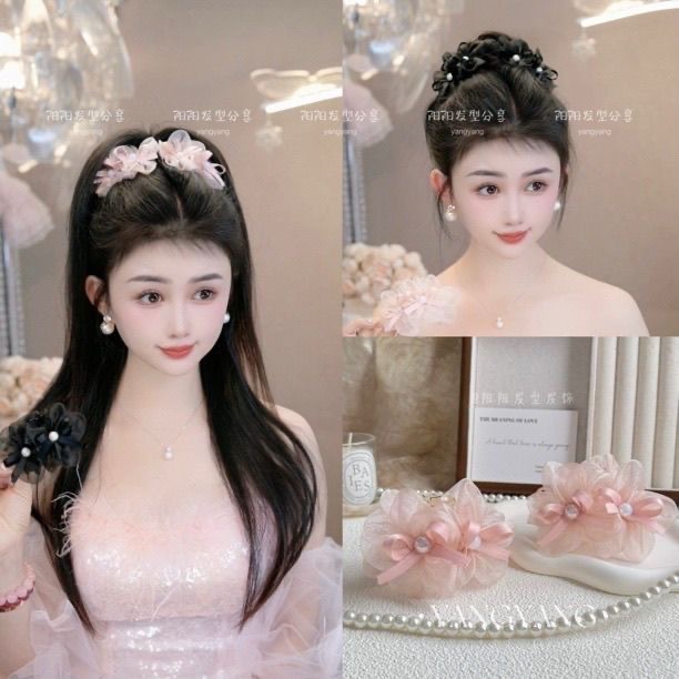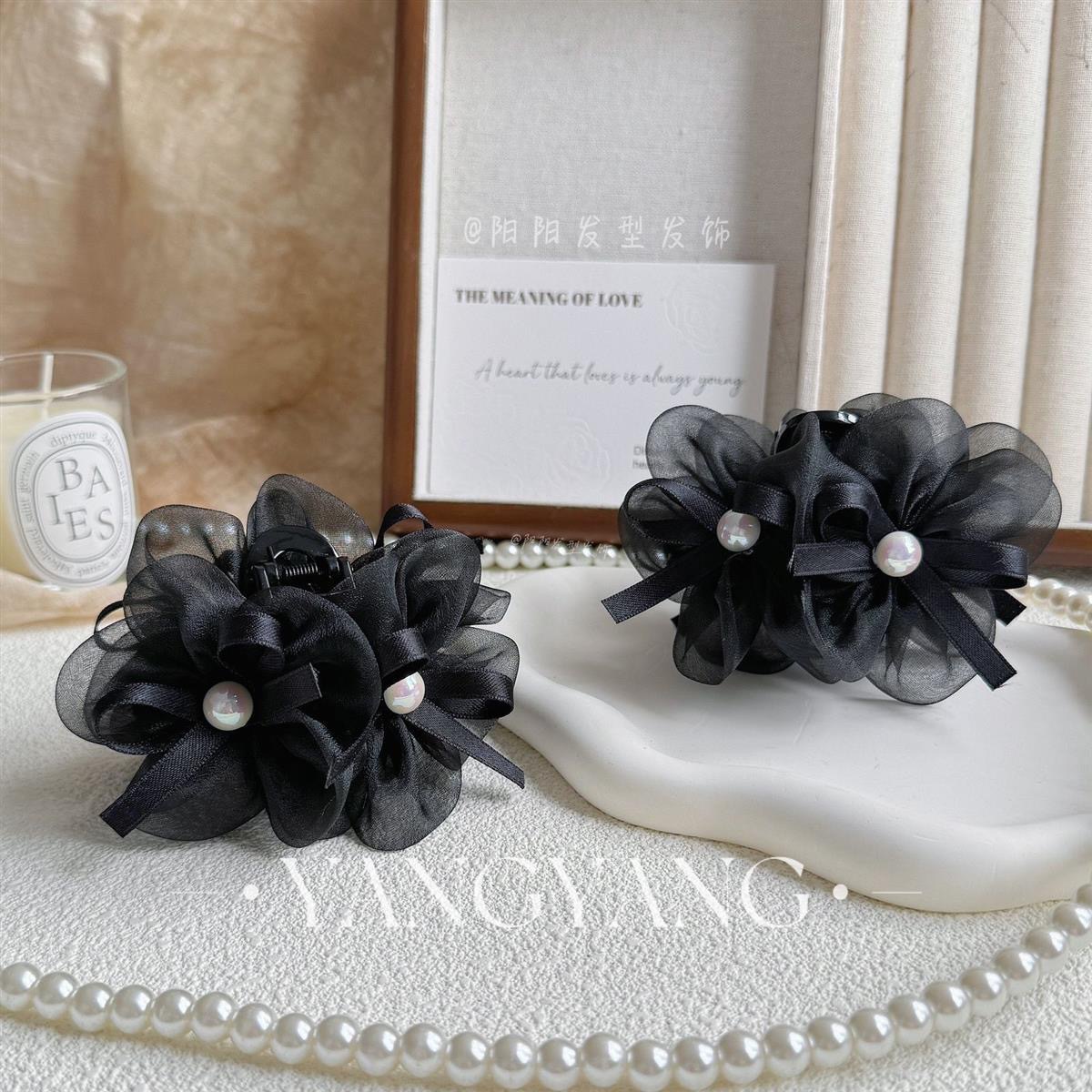 인기 헤어 클립, 앞머리 클립, 고급 기질 클립, 검은색 안개꽃 시어서커 7cm 헤어 클립 헤어 액세서리스토어 가기