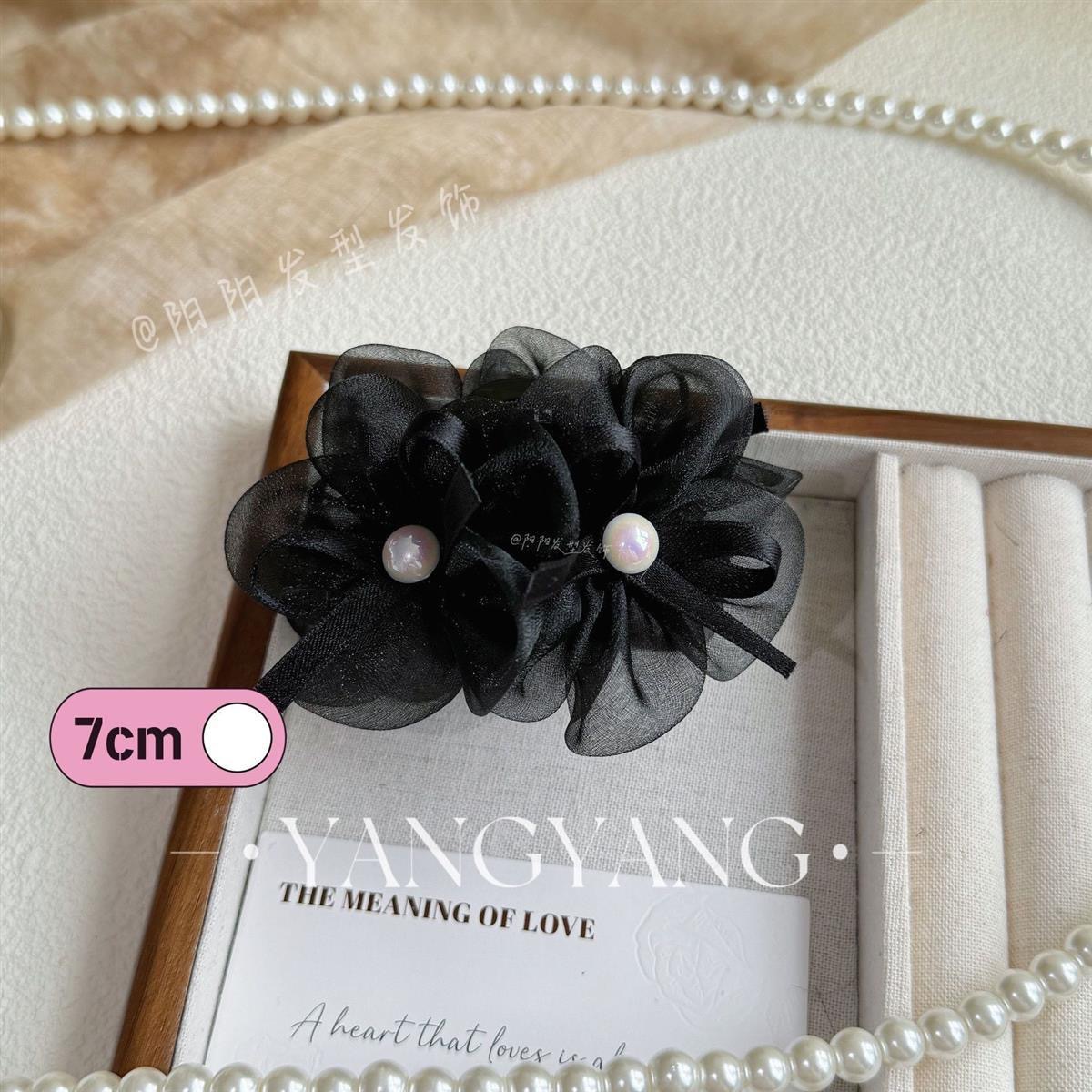 인기 헤어 클립, 앞머리 클립, 고급 기질 클립, 검은색 안개꽃 시어서커 7cm 헤어 클립 헤어 액세서리