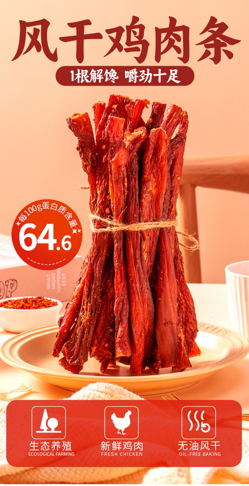 공기 건조 치킨 육포, 닭 가슴살 육포, 지방을 제거하고 쫄깃한 스낵, 스낵 식품 제조업체 도매스토어 가기