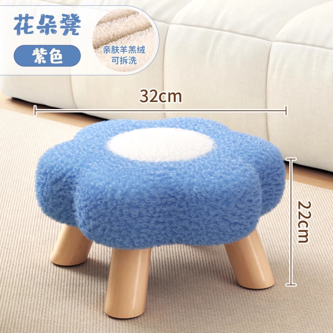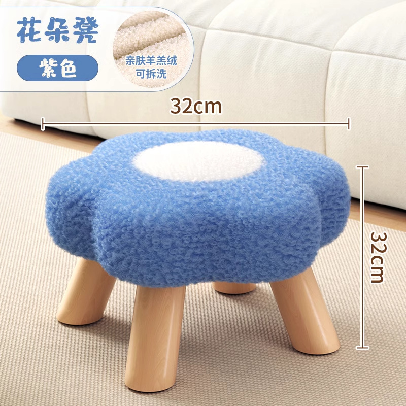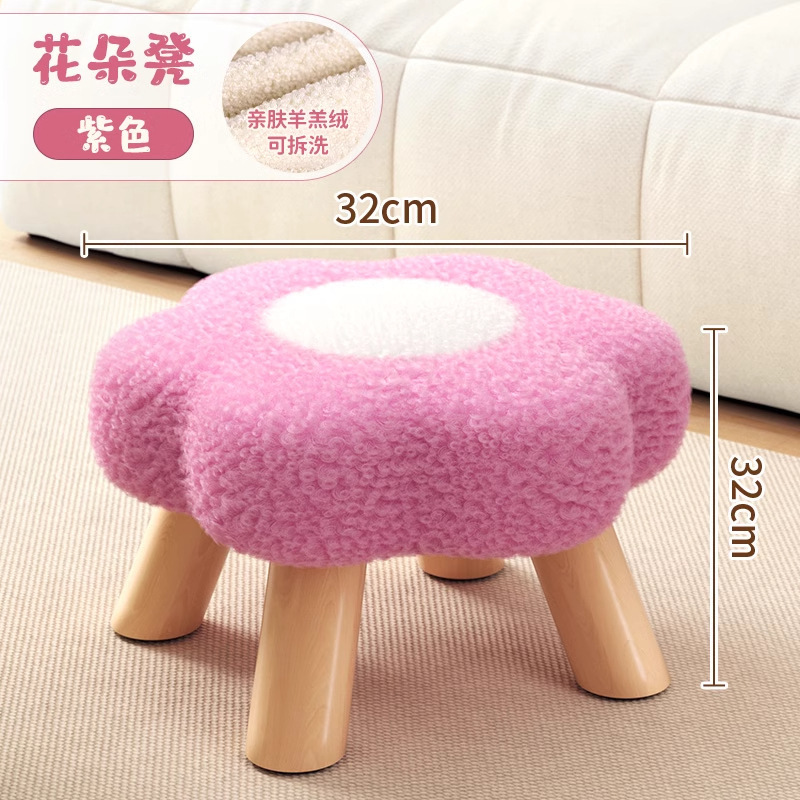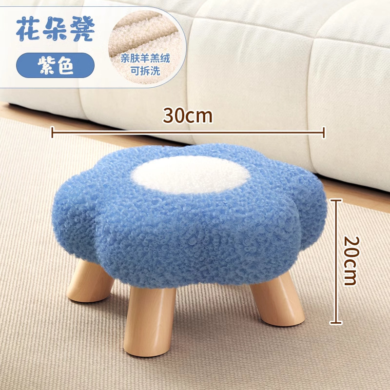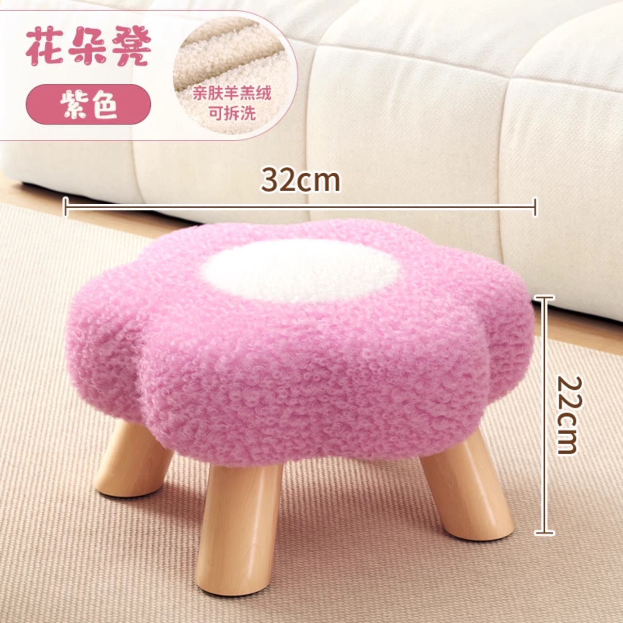 • 보라색 꽃 스툴 - 피부 친화적인 램스울(탈부착 및 세탁 가능) - 높이 20cm