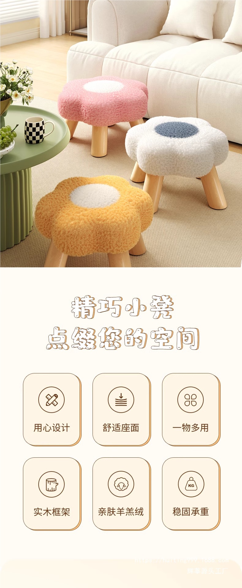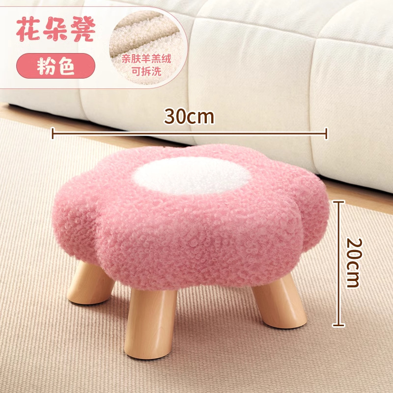 • 핑크플라워 스툴 - 피부친화적인 램스울(탈부착 및 세탁 가능) - 높이 20cm