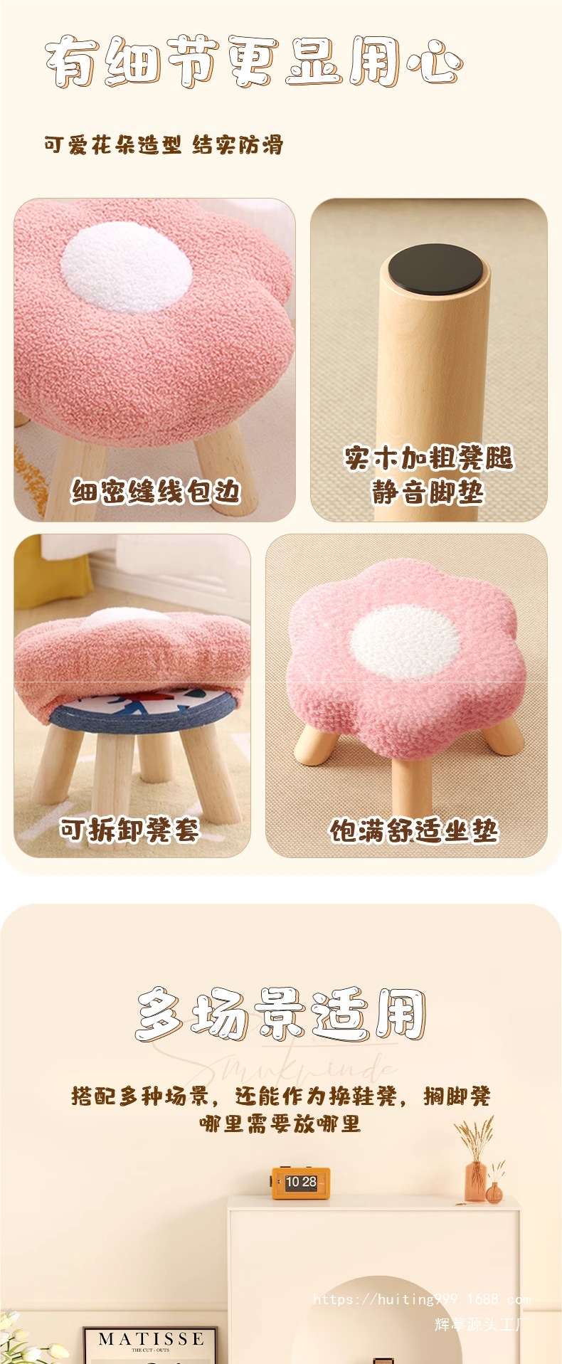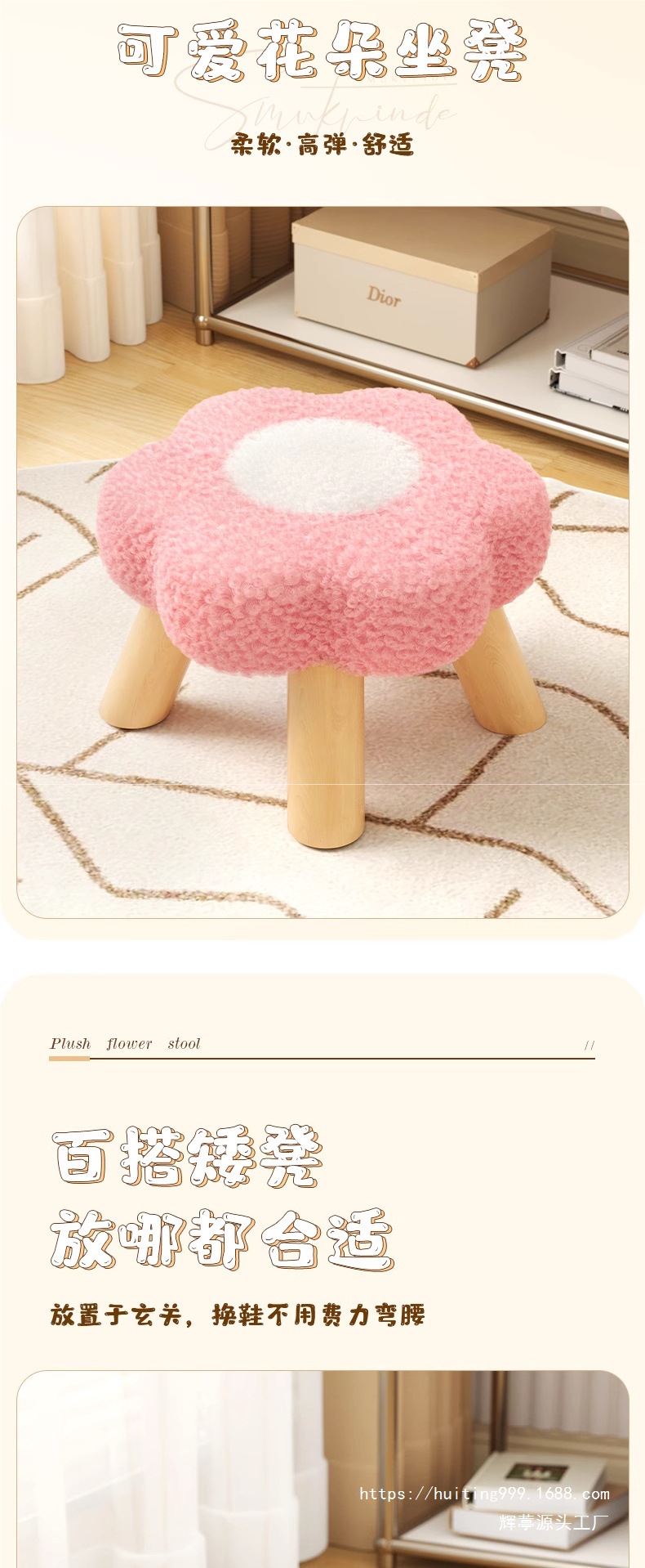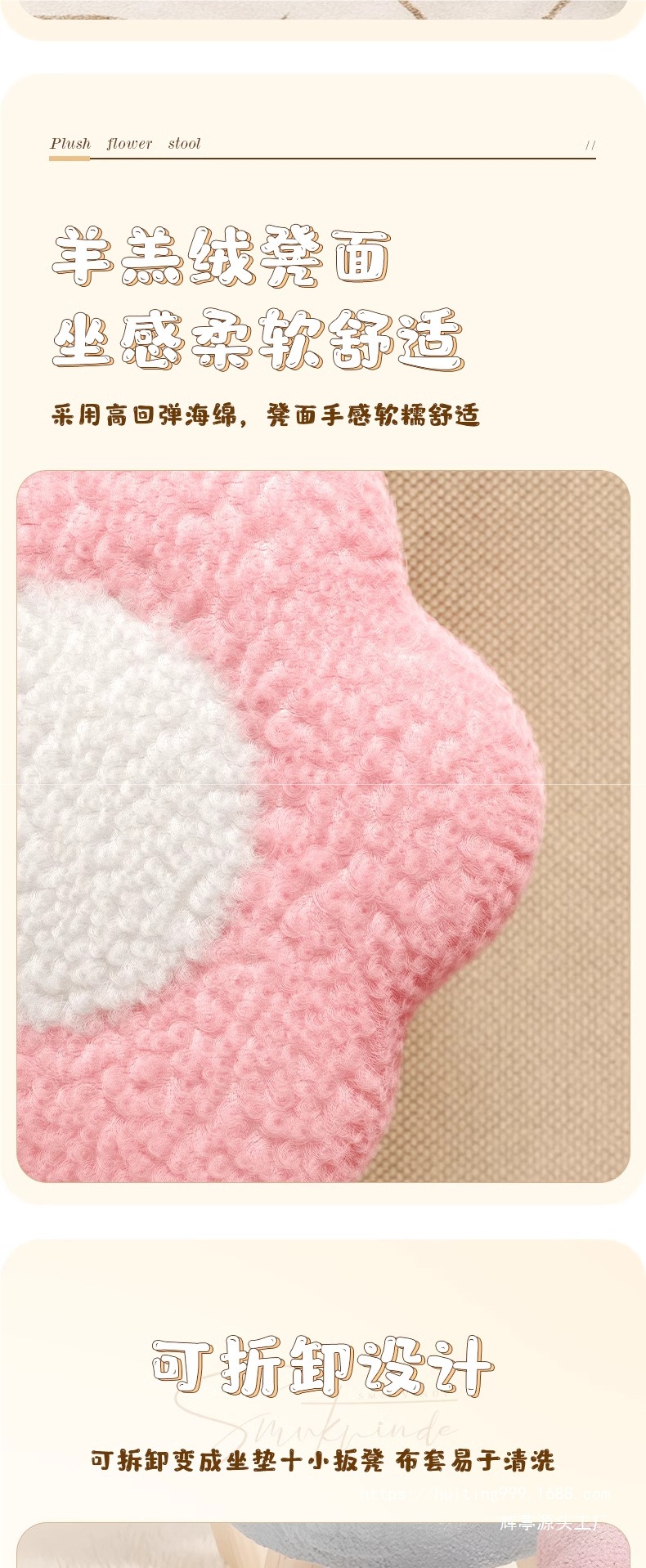 • 핑크 플라워 스툴 - 피부 친화적인 램스울(탈부착 및 세탁 가능) - 높이 32cm