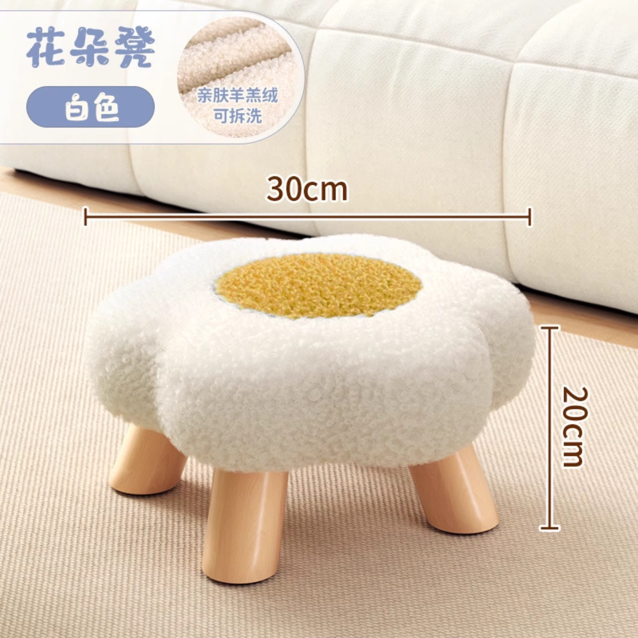 • 흰꽃 스툴 - 피부친화적인 램스울(탈부착 및 세탁 가능) - 높이 20cm