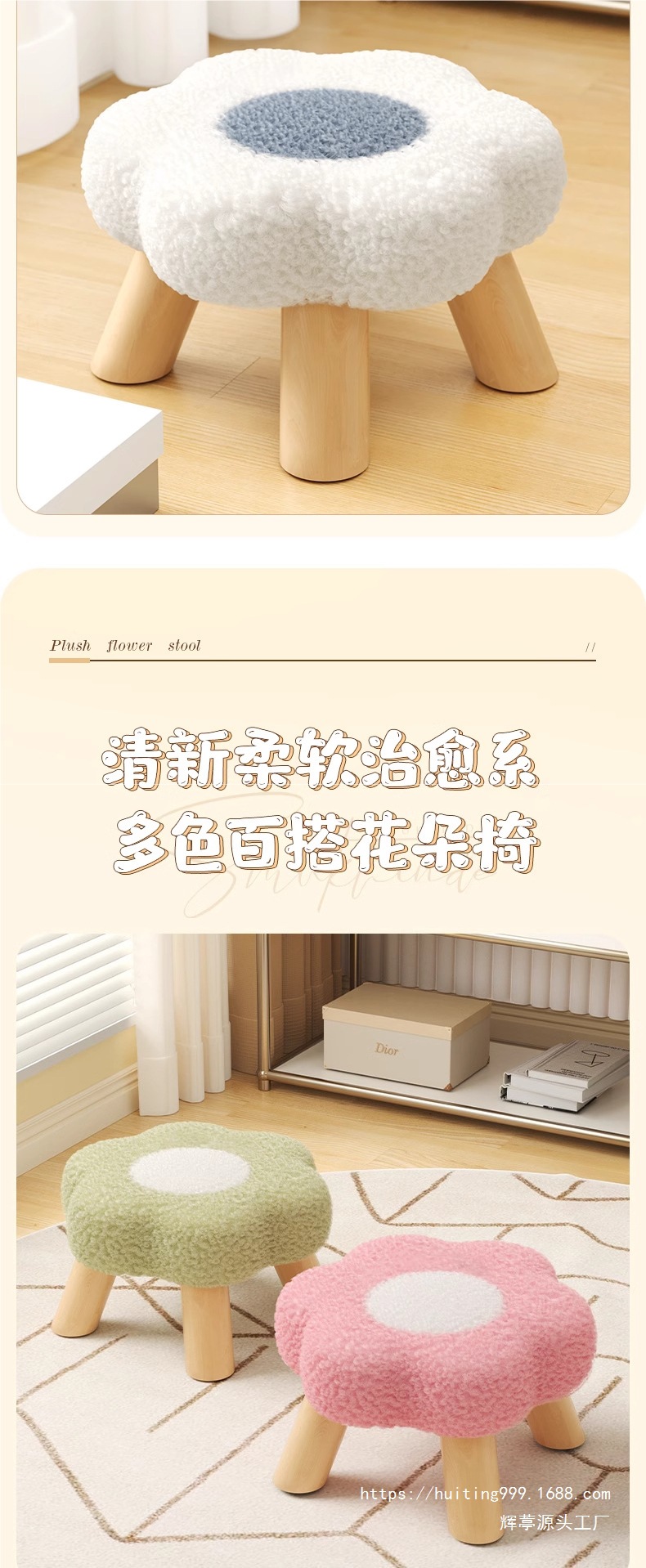 • 그린 플라워 스툴 - 피부 친화적인 램스울(탈부착 및 세탁 가능) - 높이 20cm