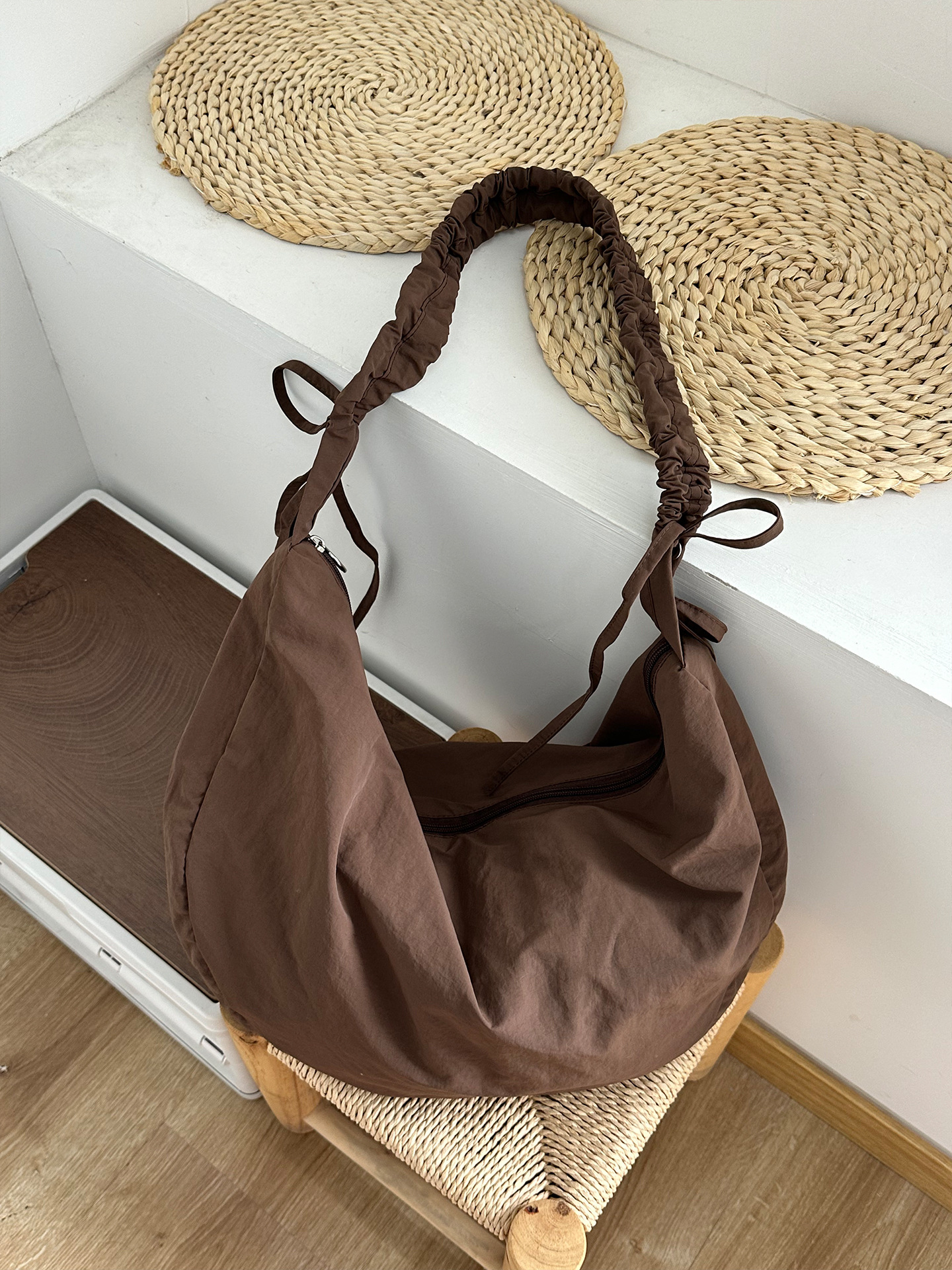 • 나일론 드로스트링 크로아상-초콜릿 브라운