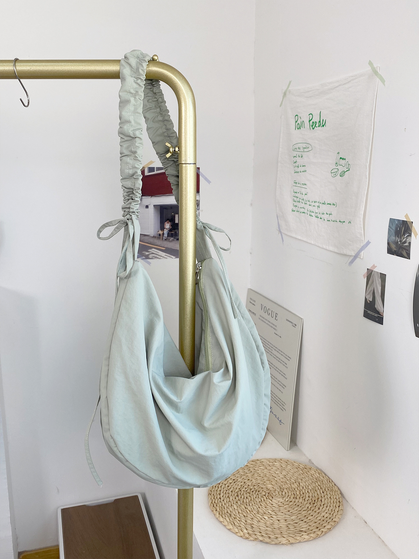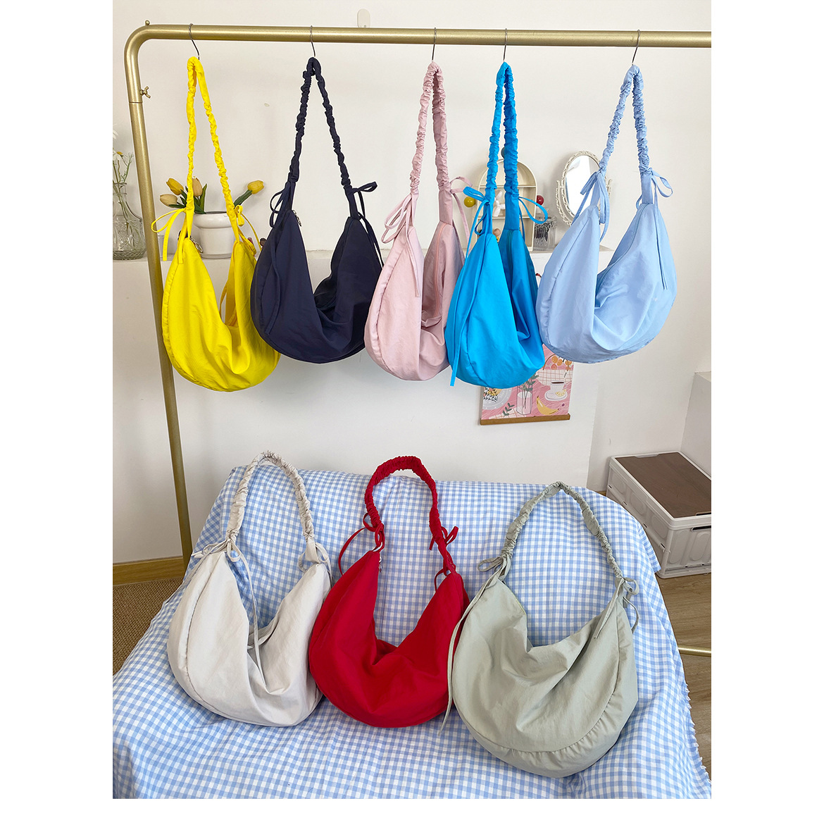 여성용 한국식 주름 조임끈 크로스바디 크로아상백, 눈길을 끄는 다용도 피트니스백, 대용량 나일론 통근가방스토어 가기
