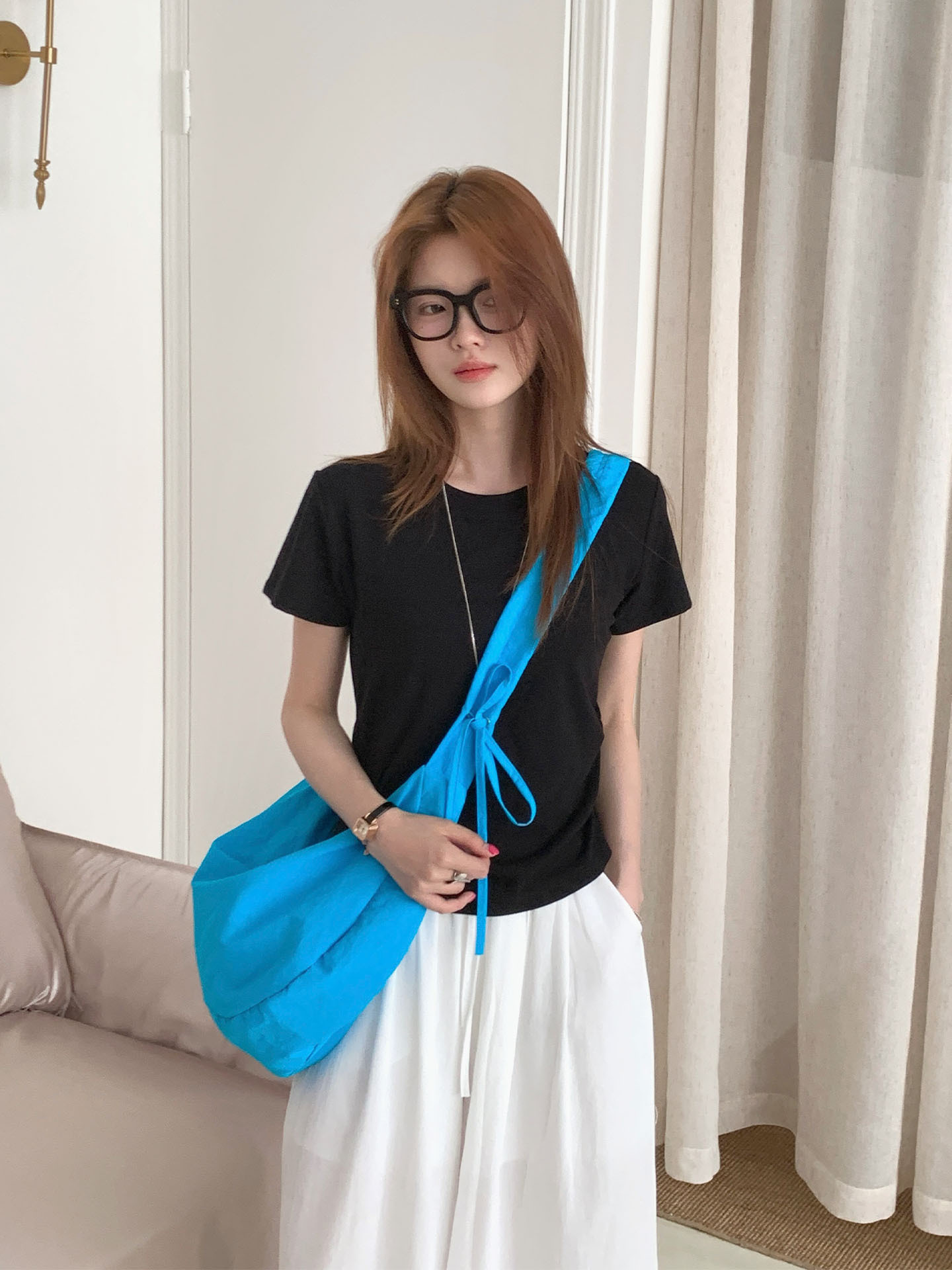 • 나일론 드로스트링 크로아상 - 라이트 블루