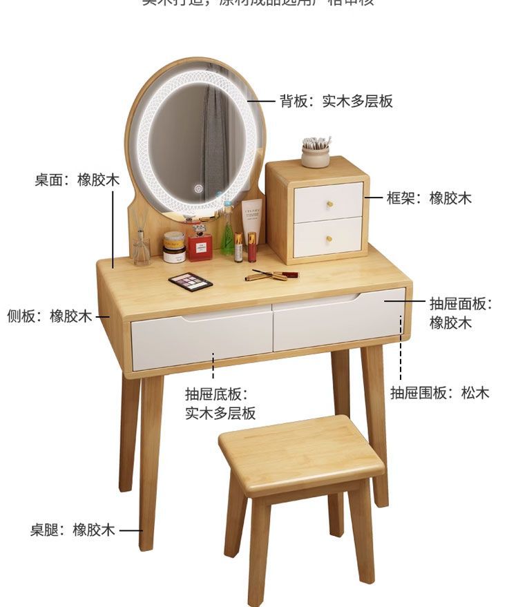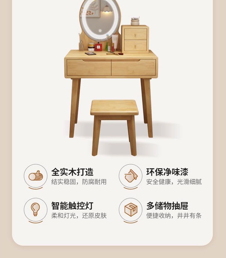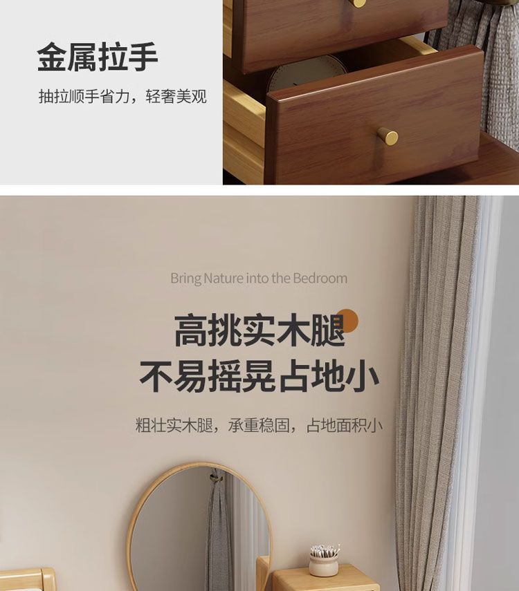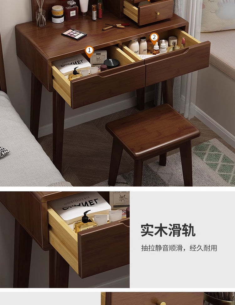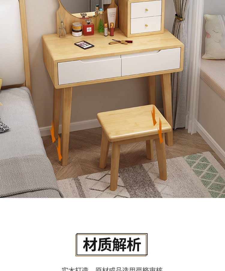 북유럽 단단한 나무 화장대 80cm 작은 아파트 침실 현대 간단한 화장대 라이트 럭셔리 화장대 수납 캐비닛 통합스토어 가기