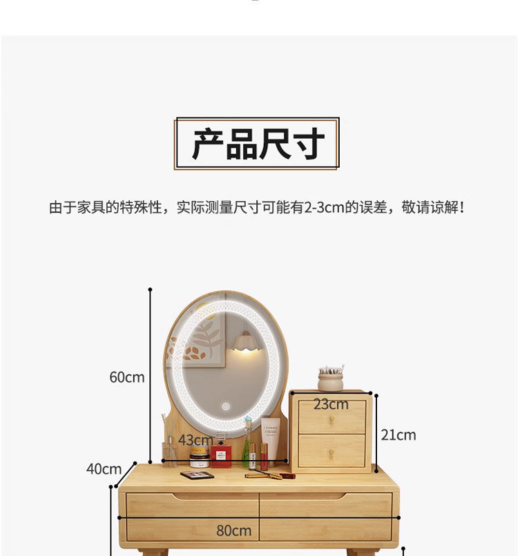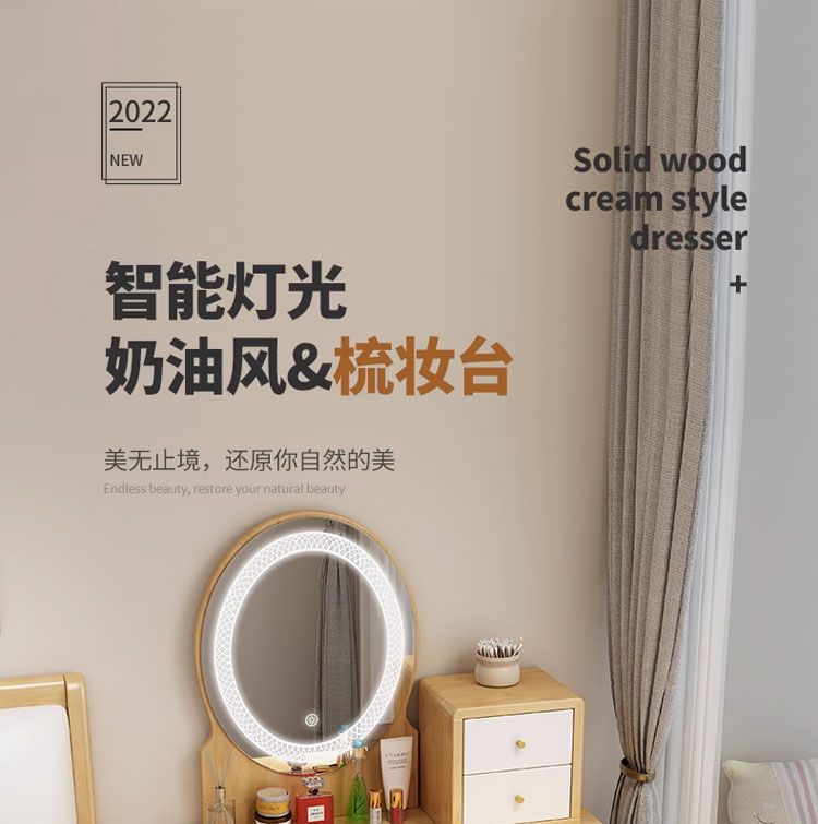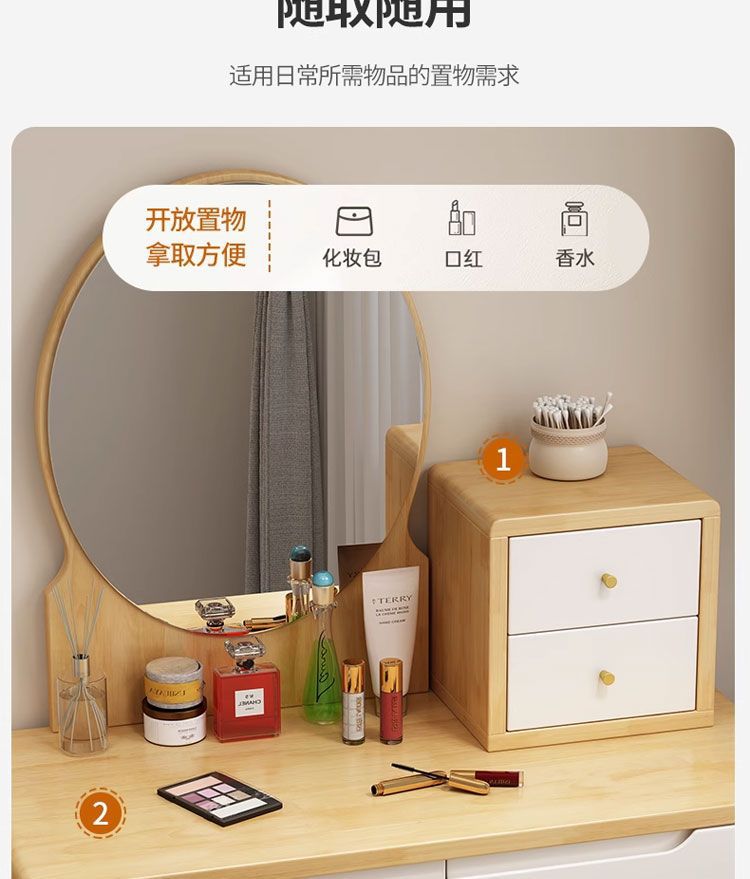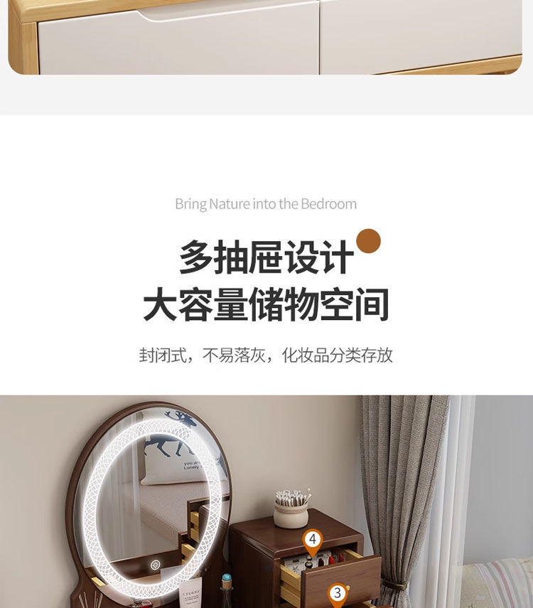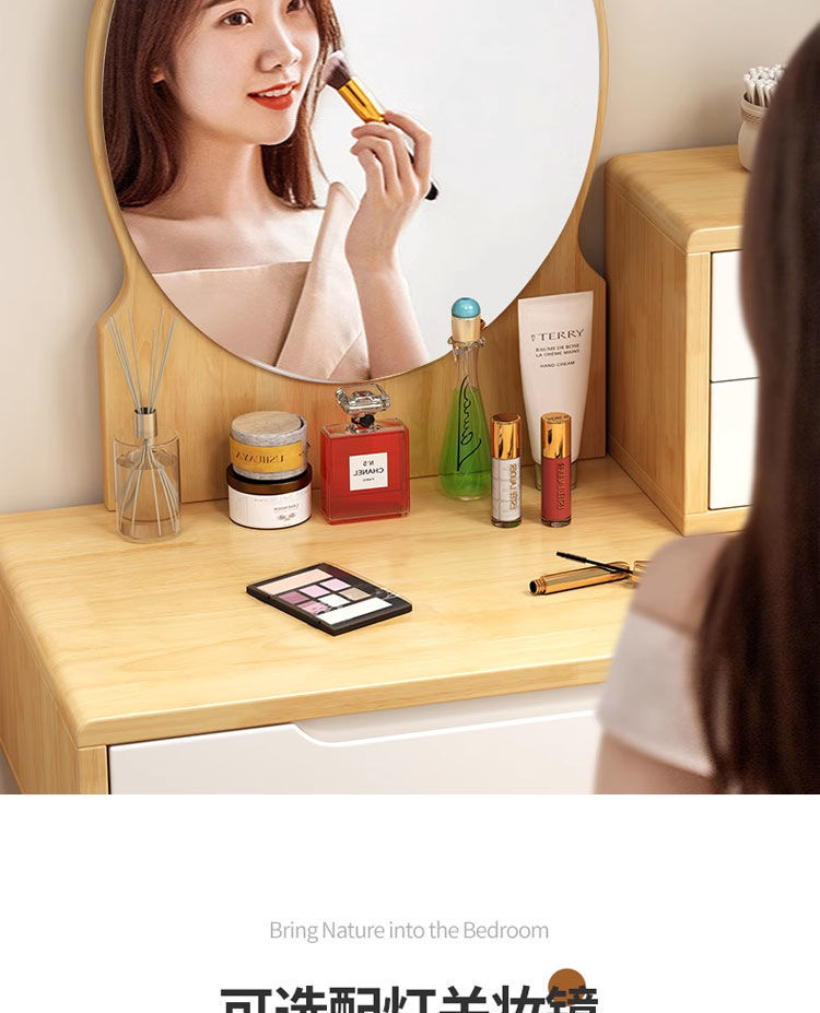 북유럽 단단한 나무 화장대 80cm 작은 아파트 침실 현대 간단한 화장대 라이트 럭셔리 화장대 수납 캐비닛 통합스토어 가기