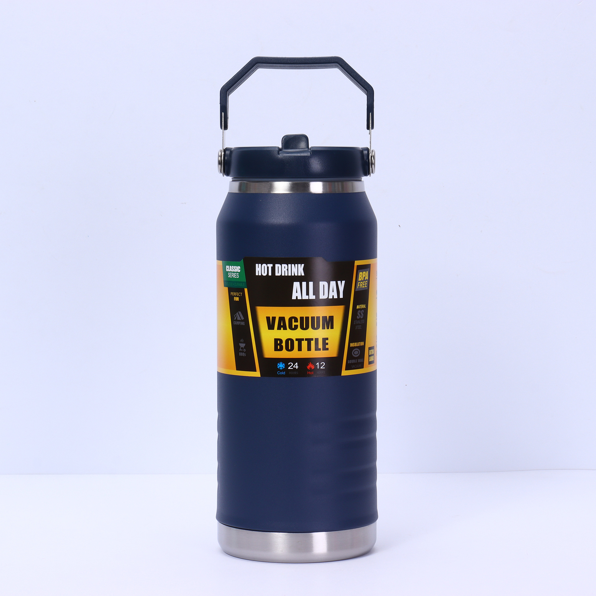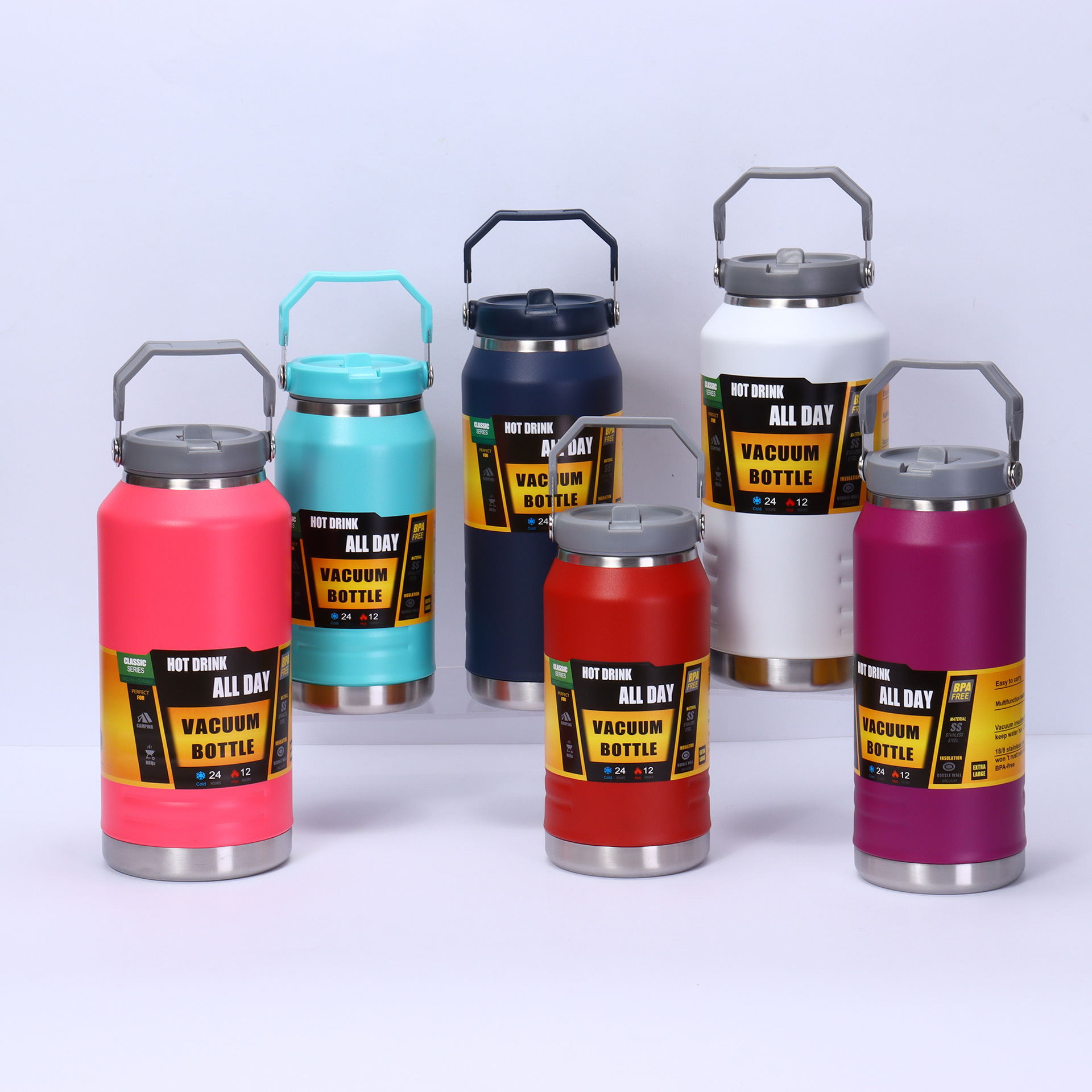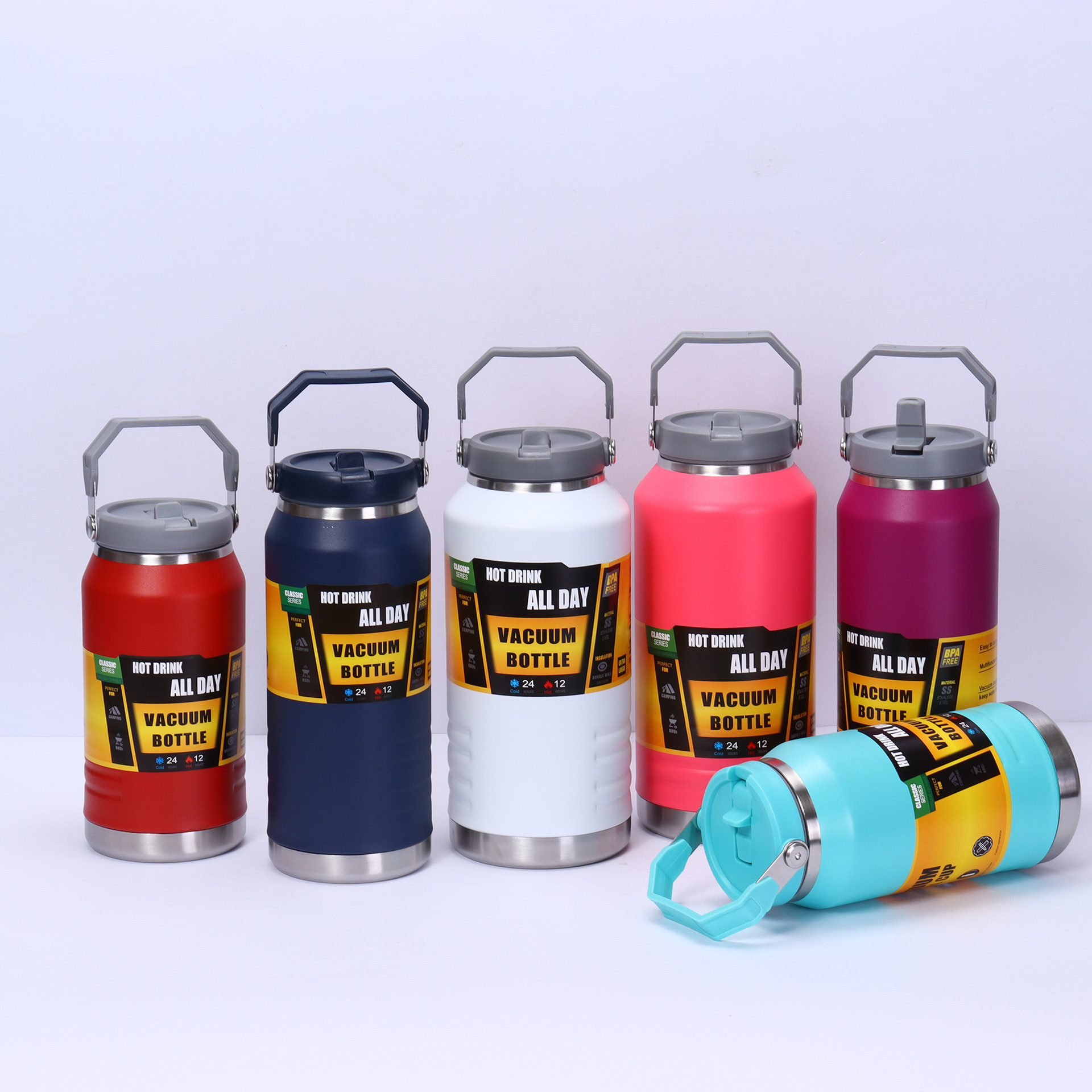 새로운 304 스테인레스 스틸 보온병 컵 밀짚 컵 대용량 휴대용 톤 버킷 야외 스포츠 물병 등산 주전자스토어 가기