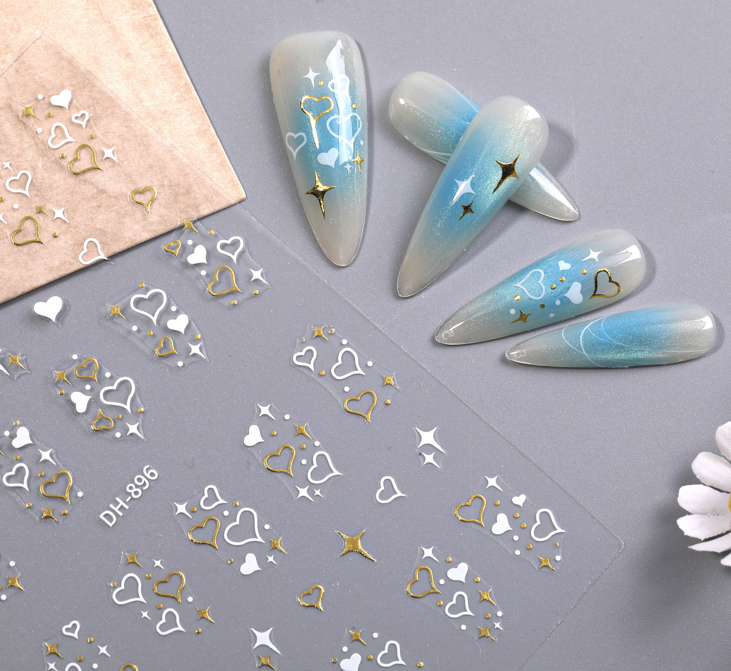 속이 빈 별 네일 아트 스티커, 핫 골드 및 실버 속이 빈 작은 사랑 스티커, 고급 네일 아트 스티커 및 액세서리