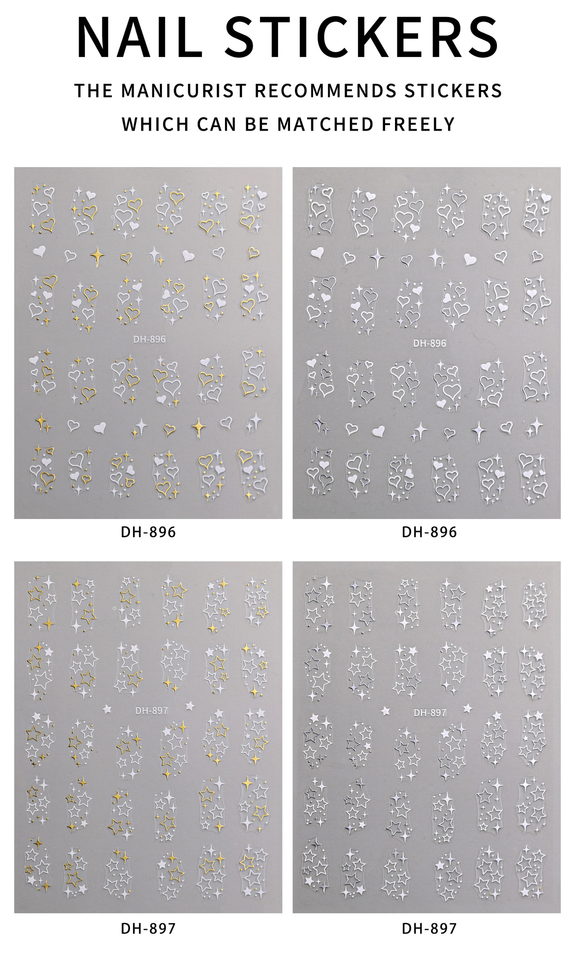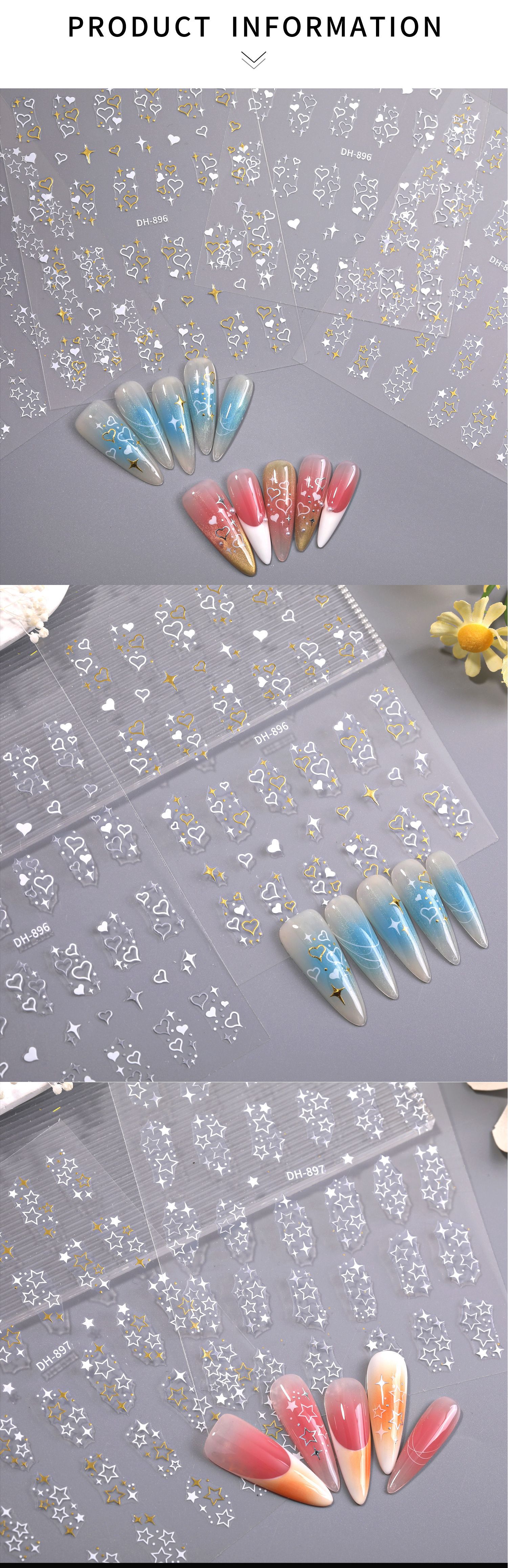 속이 빈 별 네일 아트 스티커, 핫 골드 및 실버 속이 빈 작은 사랑 스티커, 고급 네일 아트 스티커 및 액세서리스토어 가기