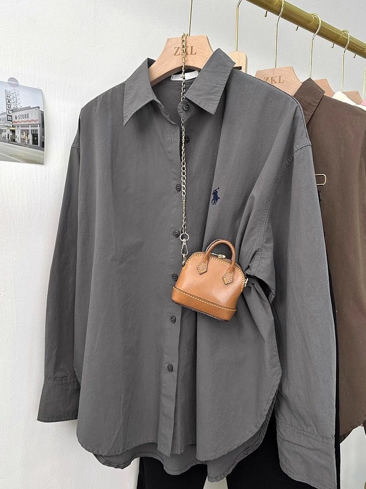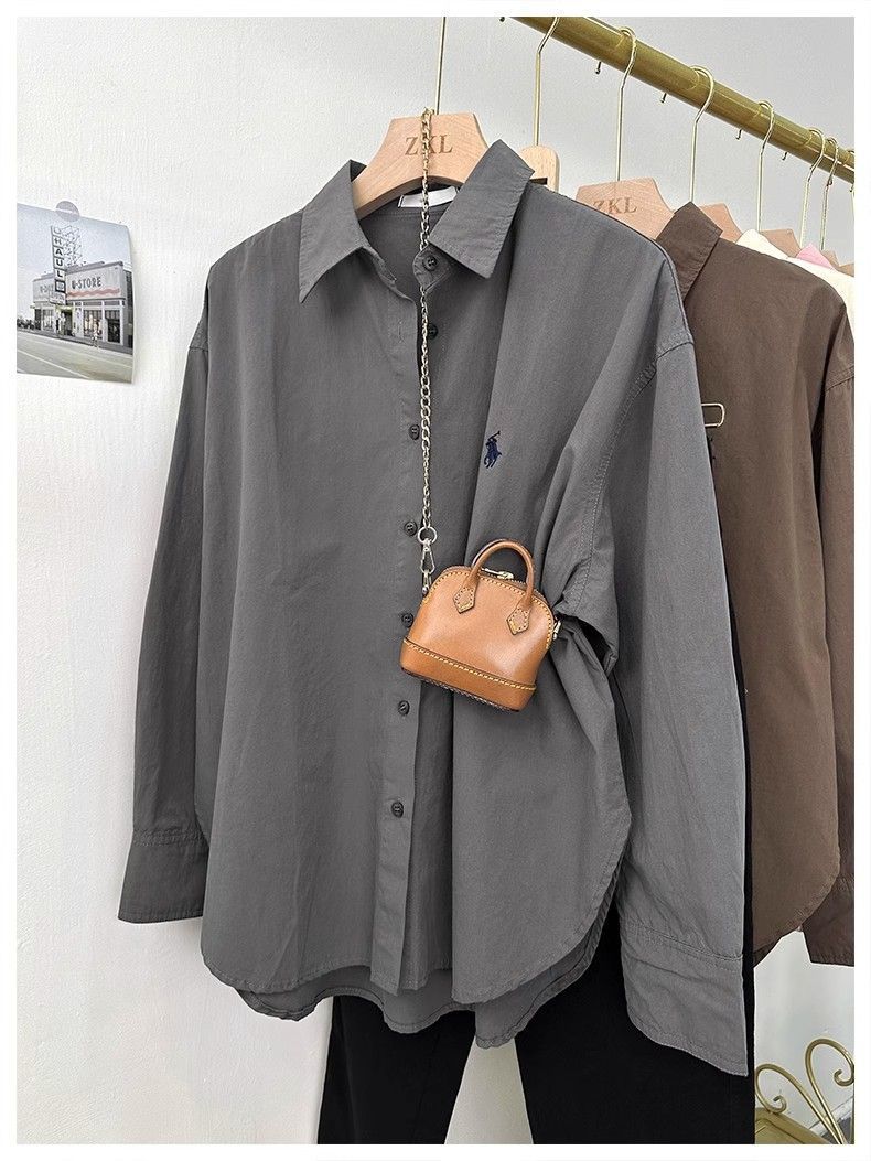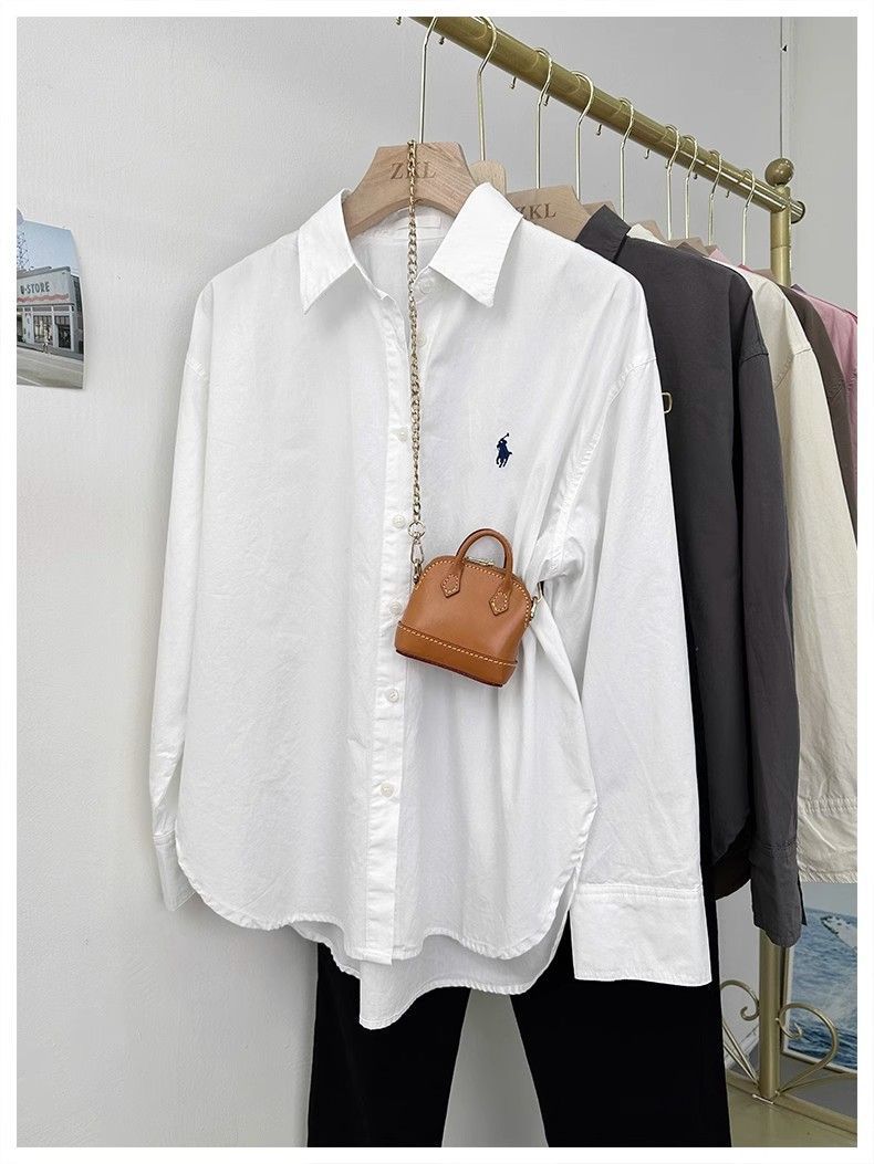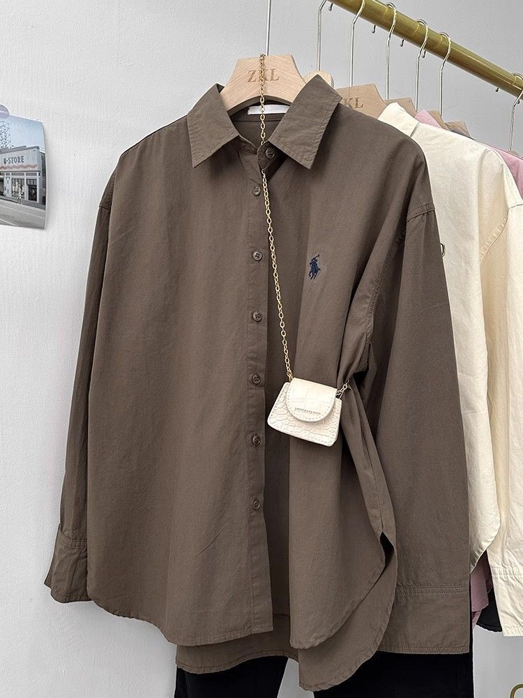 여성용 포니 자수 셔츠, 루즈한 한국식 심플한 하이엔드 디자인 통근 셔츠, 패셔너블한 캐주얼 긴팔 탑스토어 가기