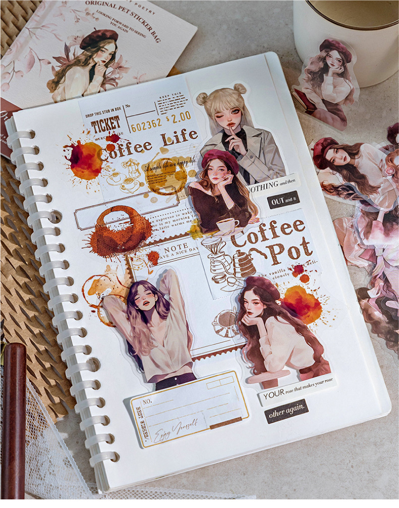 Sugar Poetry PET 스티커 팩 Beauty Era 시리즈 복고풍 캐릭터 소재 핸드북 휴대 전화 카드 DIY 조경 스티커스토어 가기