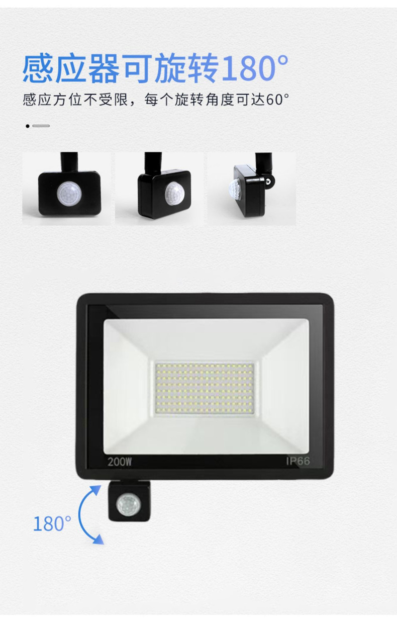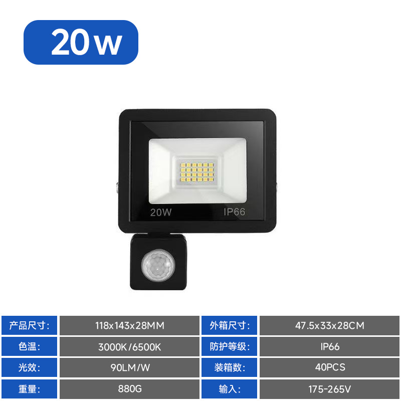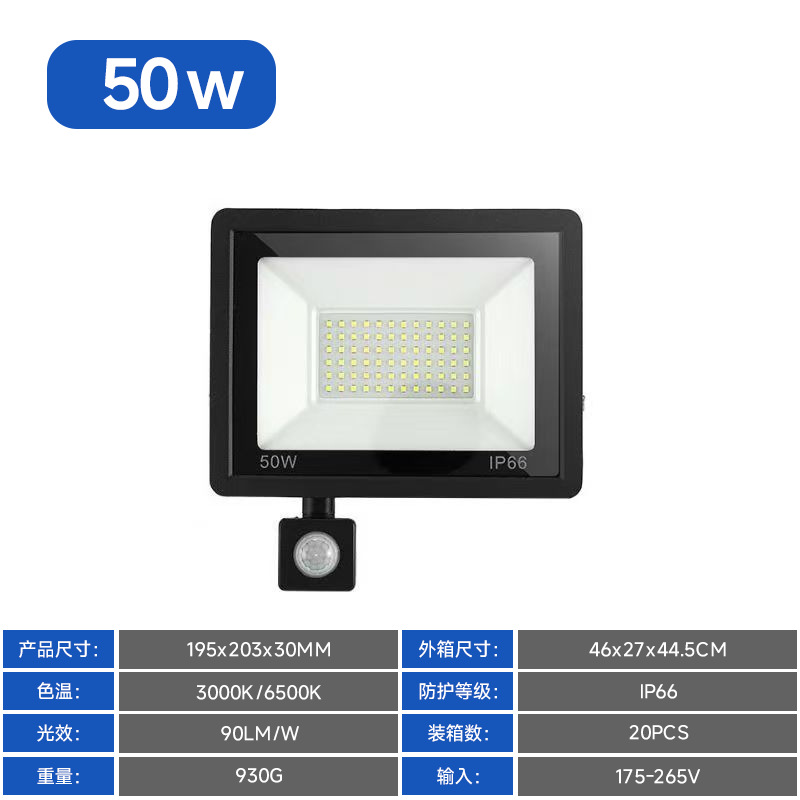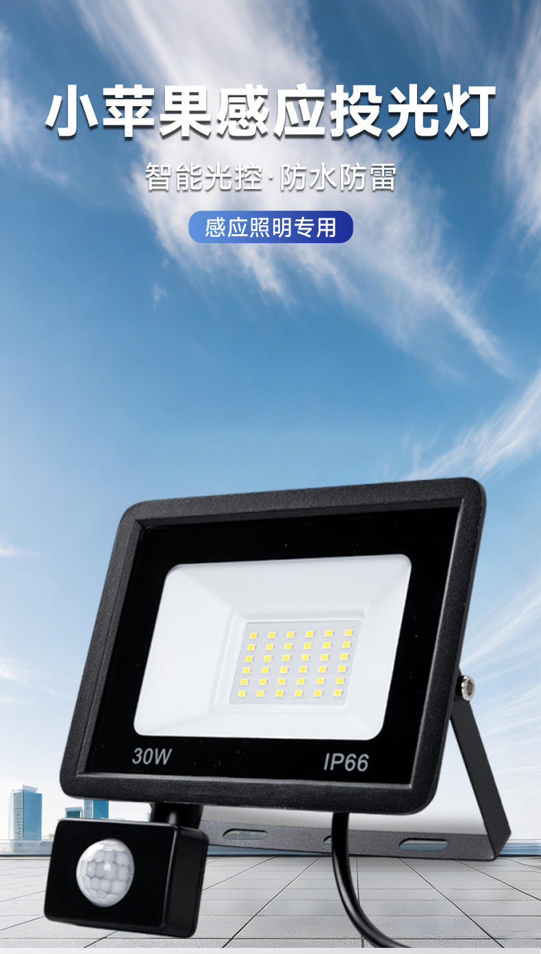 Led 투광 조명 야외 방수 안뜰 적외선 인체 유도 투광 조명 100W 작은 사과 유도 투광 조명