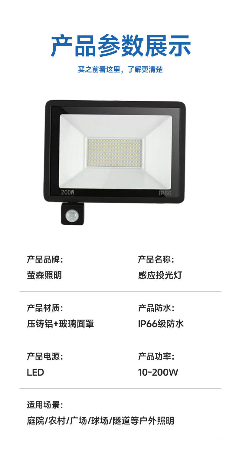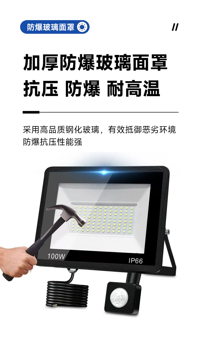 Led 투광 조명 야외 방수 안뜰 적외선 인체 유도 투광 조명 100W 작은 사과 유도 투광 조명스토어 가기