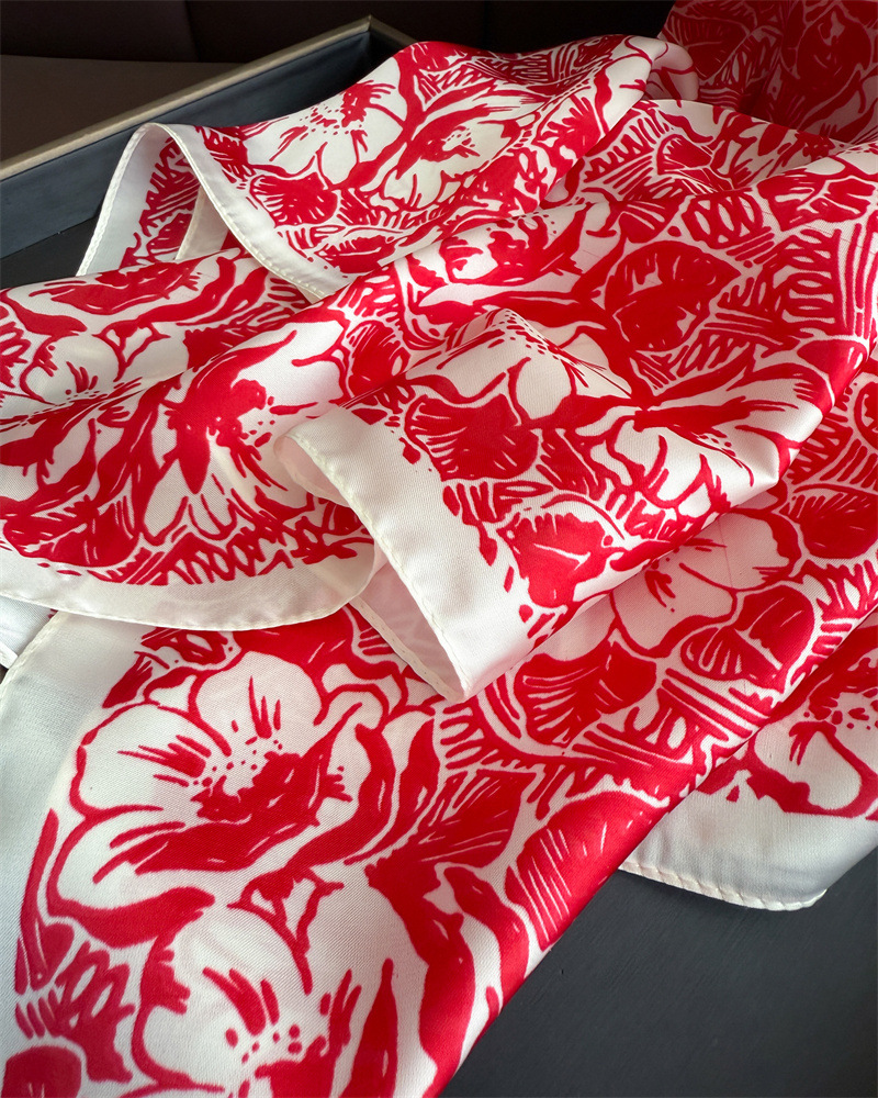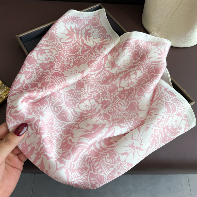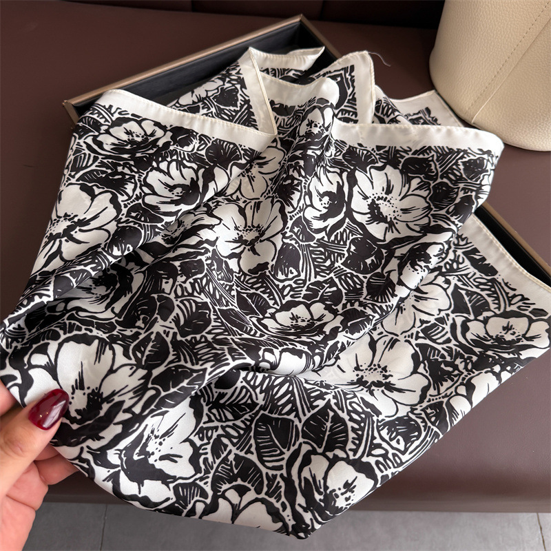 2025 한국 패션 프린트 실크 스카프, 고급 숄, 자외선 차단제, 목 스카프, 여성용 스카프