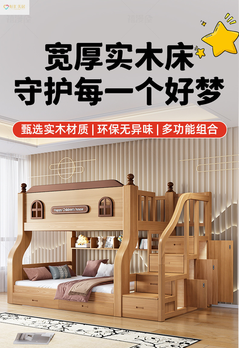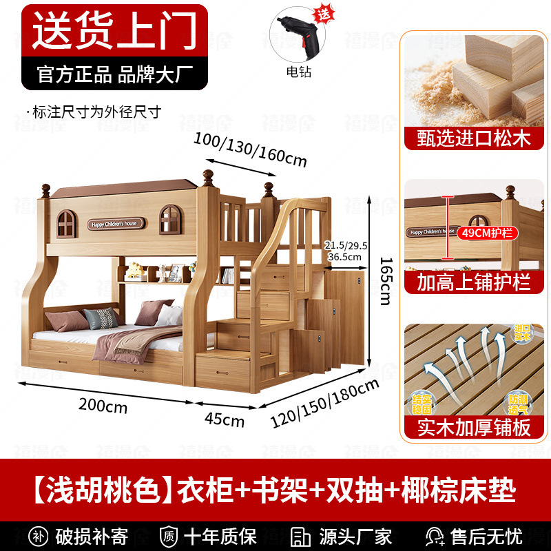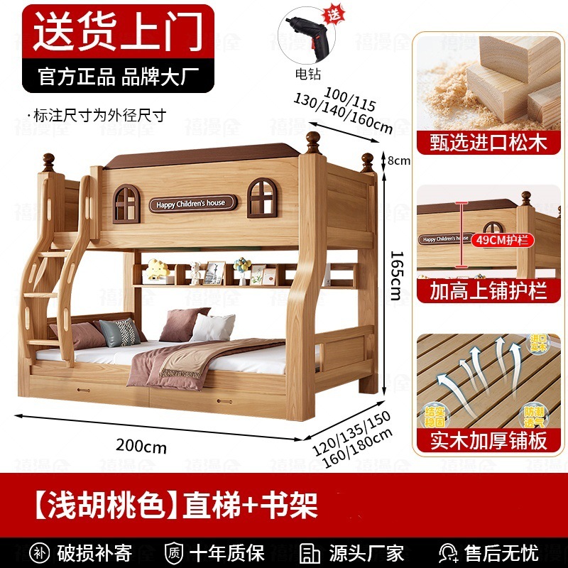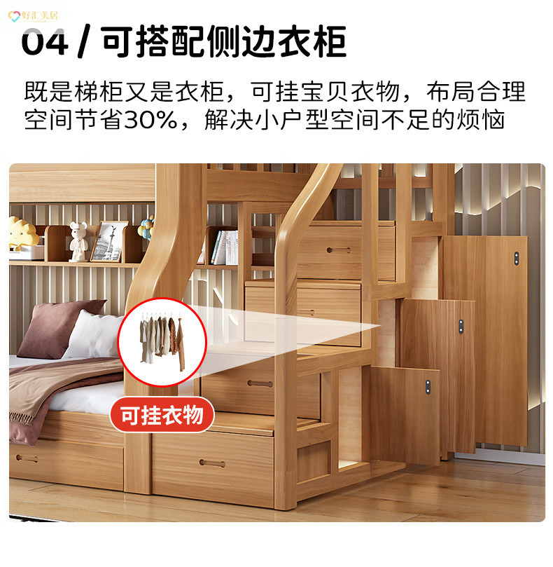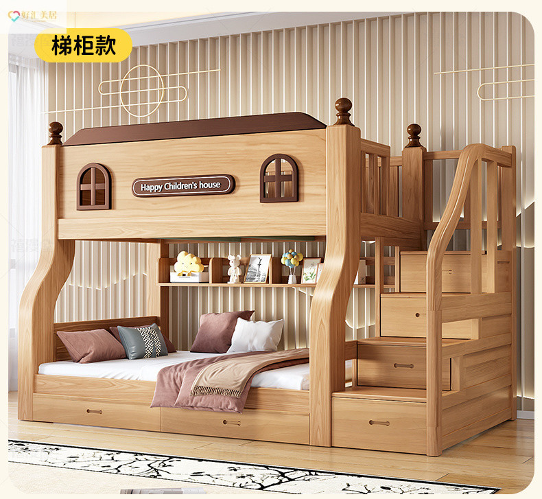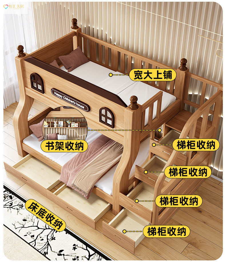 하오후이메이 원목 이층침대 두꺼운 이층 어린이 침대 높낮이 조절 가능한 이층 침대 학생용 이층 침대