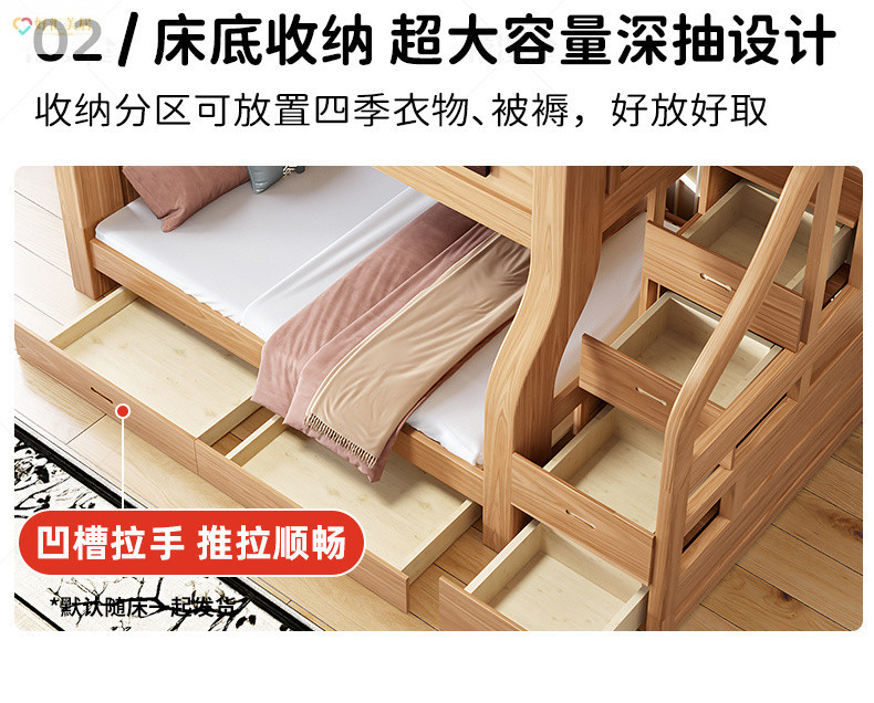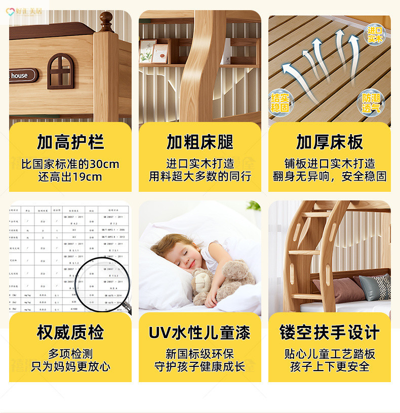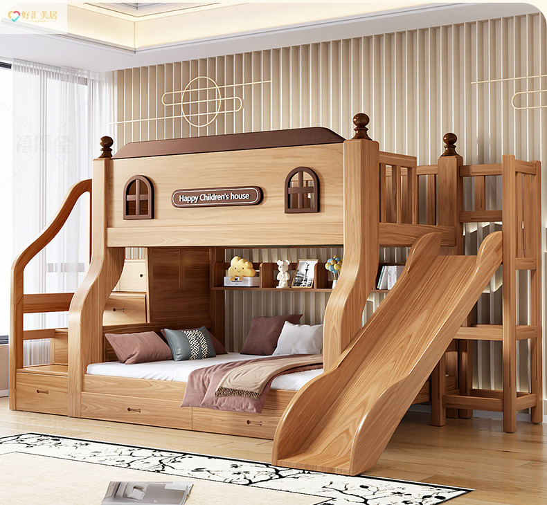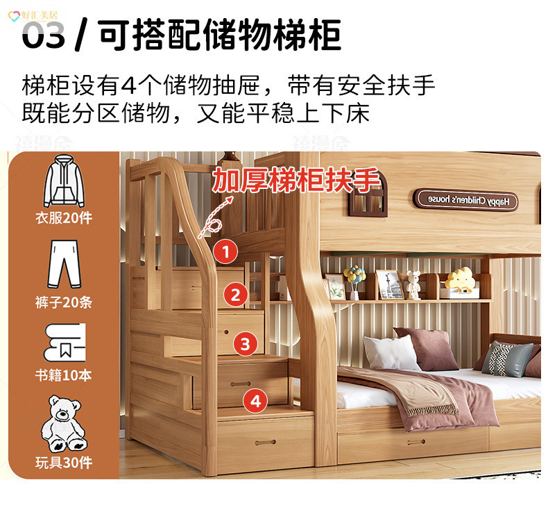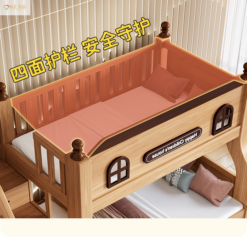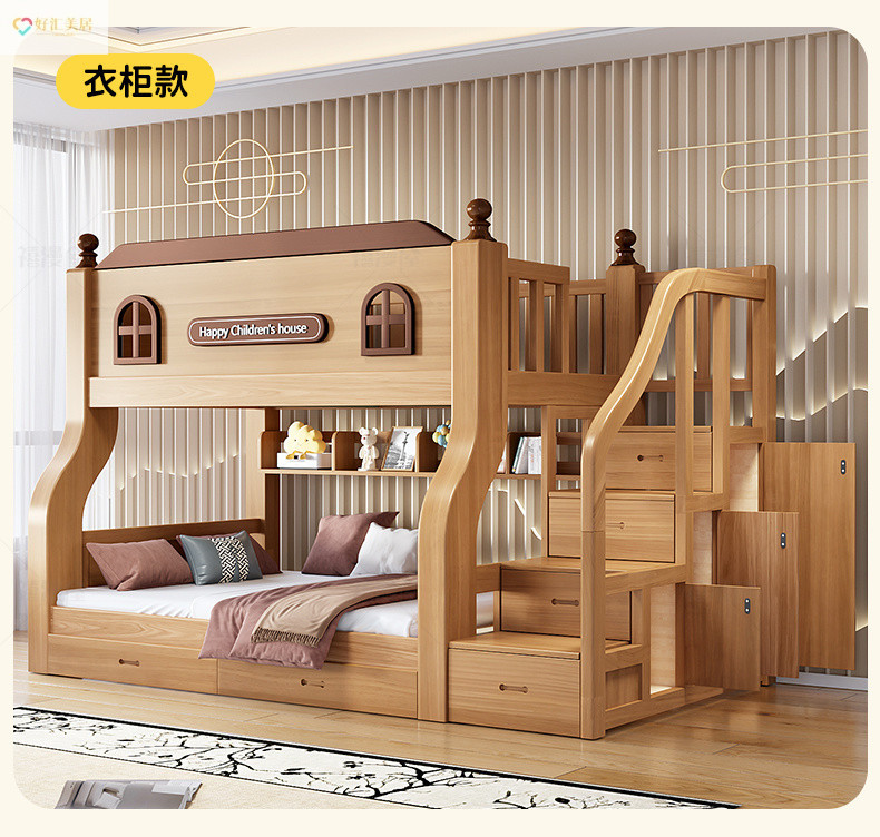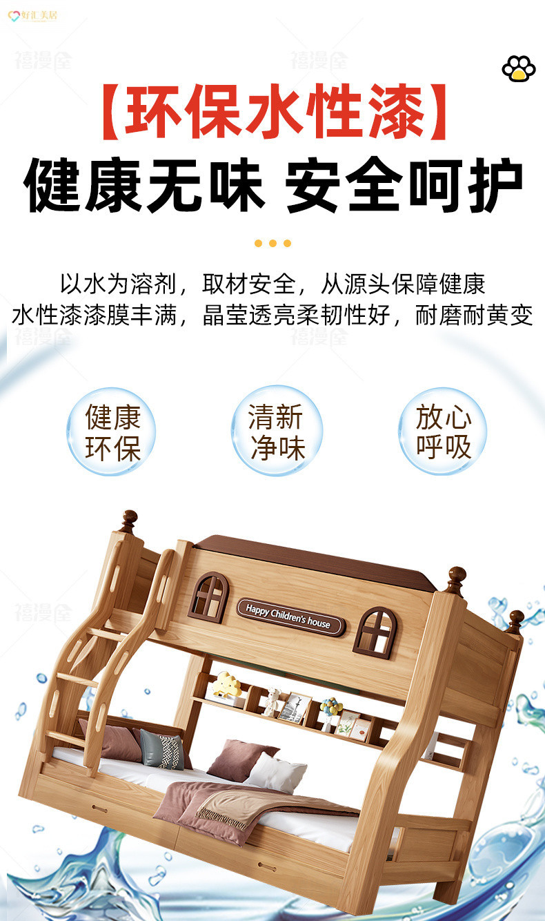 하오후이메이 원목 이층침대 두꺼운 이층 어린이 침대 높낮이 조절 가능한 이층 침대 학생용 이층 침대