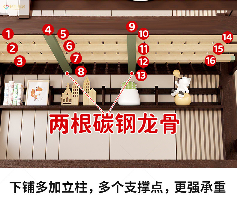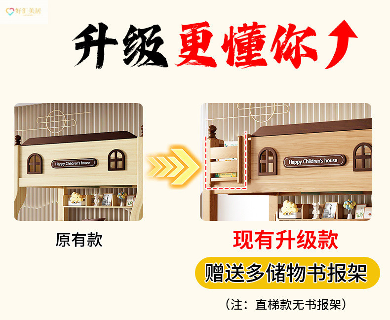 하오후이메이 원목 이층침대 두꺼운 이층 어린이 침대 높낮이 조절 가능한 이층 침대 학생용 이층 침대스토어 가기