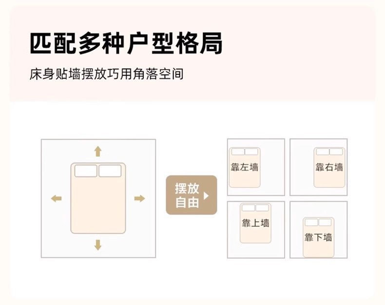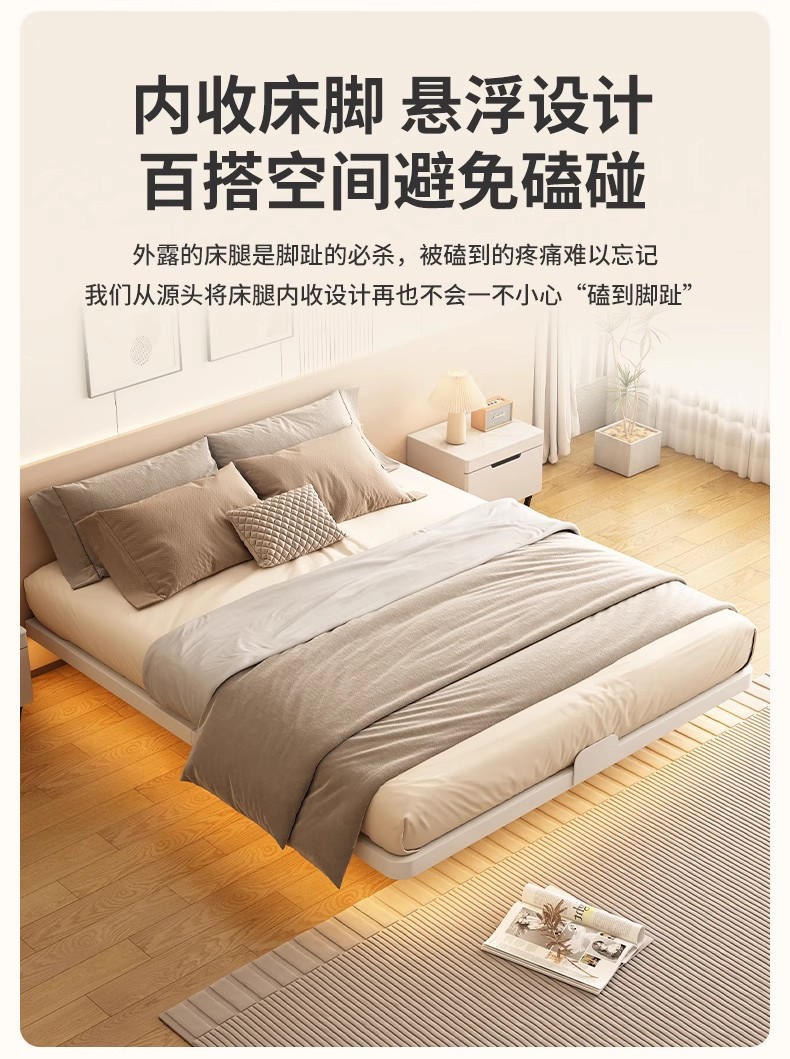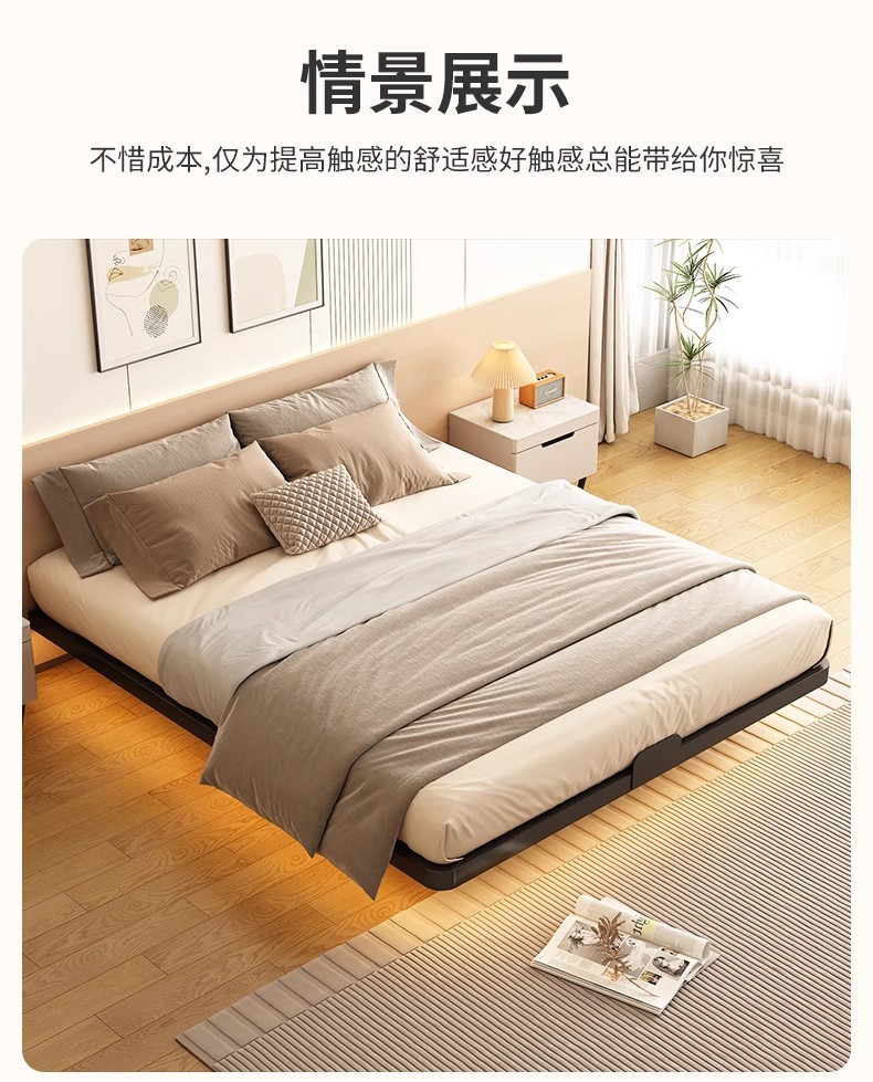 • 탄소강 침대 프레임 + 금속 지지대 + 스마트 센서 라이트 스트립 [크림 화이트]